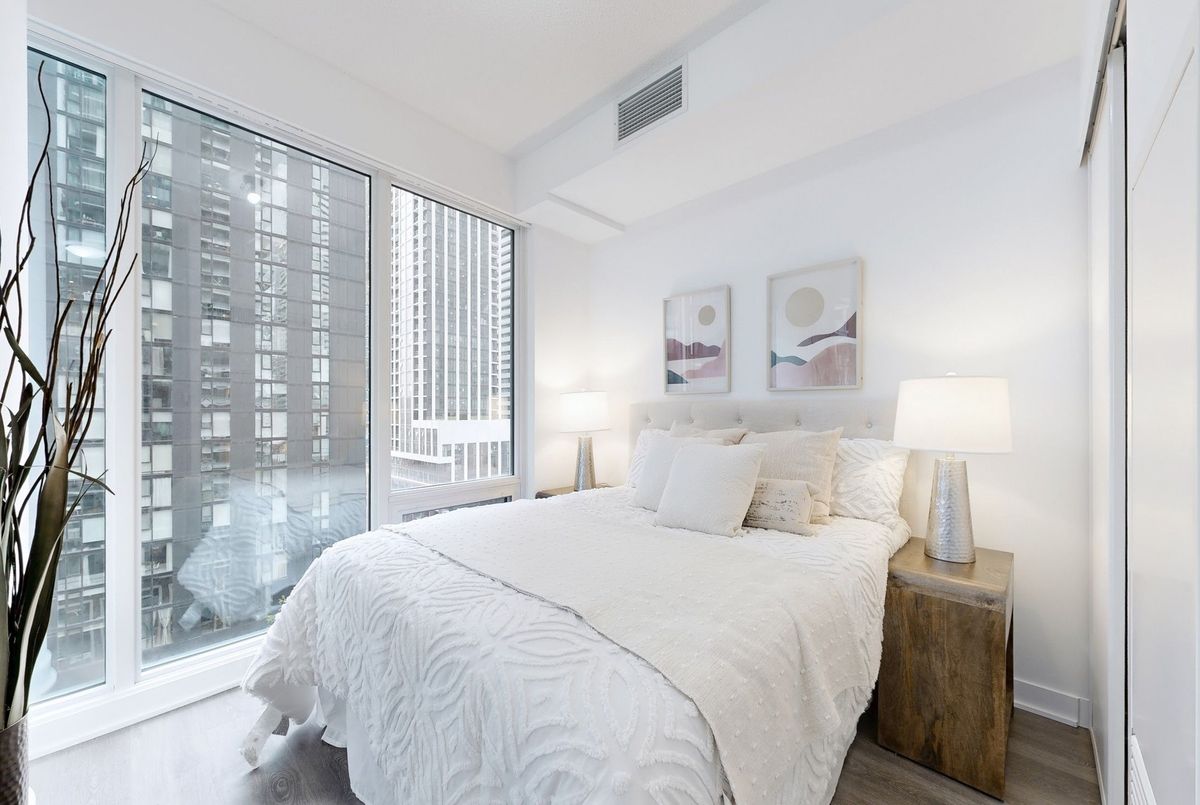 A Must See! Stunning 2 Bed + 2 Bath + Den Corner Unit in the Highly Desired King Blue Condos!Bright and spacious south-facing suite featuring 798 sq ft of interior space + an 84 sq ft balcony, offering breathtaking city views.Open-concept layout with 9 ft ceilings, floor-to-ceiling windows, and premium finishes throughout.Enjoy top-tier amenities, including an indoor pool, fully equipped gym, rooftop terrace, theatre room, game room, party room with kitchen, BBQ and 24-hour concierge.Prime downtown location in the heart of the Entertainment District - steps to TTC, PATH, CN Tower, Art Gallery of Ontario, restaurants, theatres, and shops (Bestco Fresh Foods, No Frills, and Shoppers Drug Mart, etc.), and just minutes to Bay Street and the waterfront.Previously owner-occupied and very well maintained - now vacant and move-in ready. Perfect for urban living or investment!