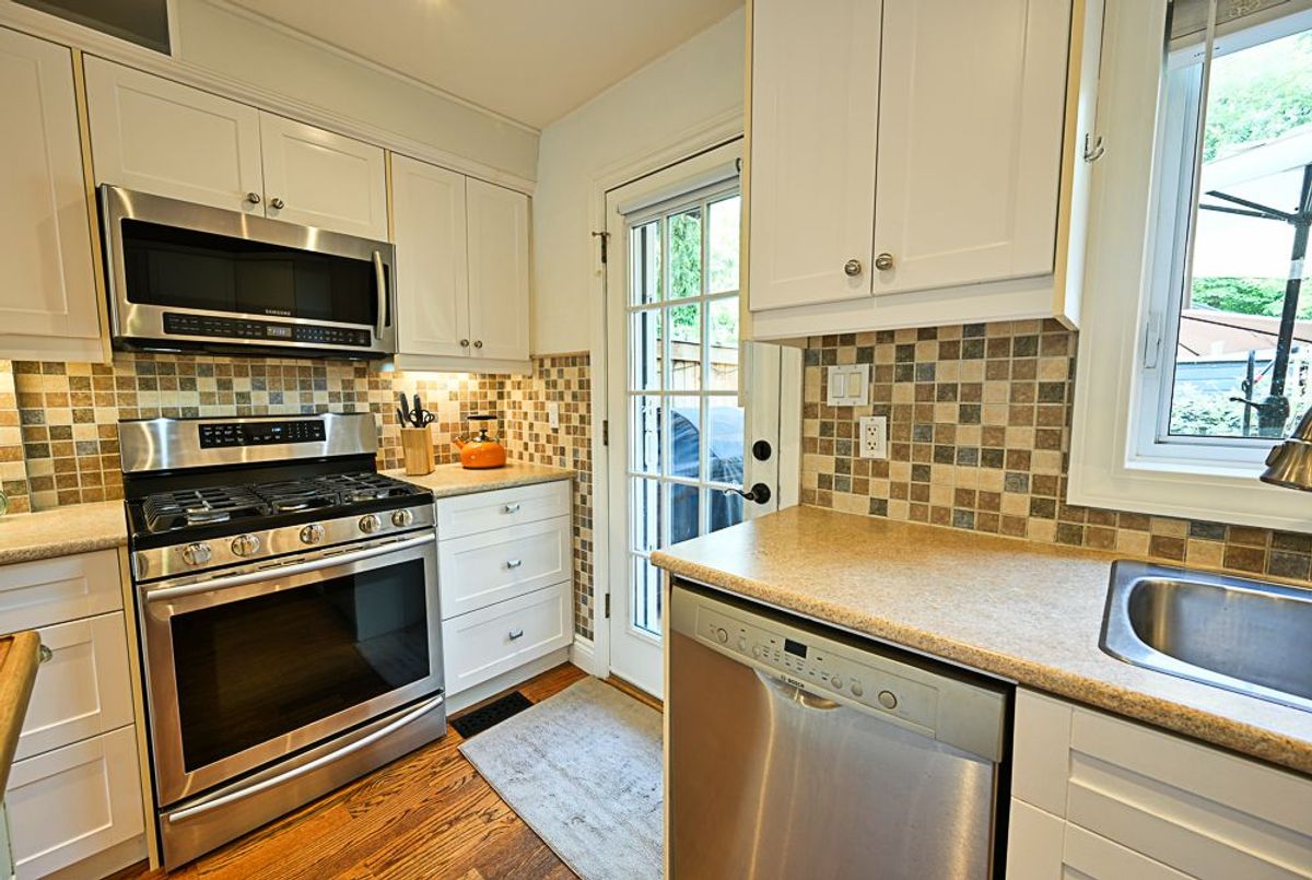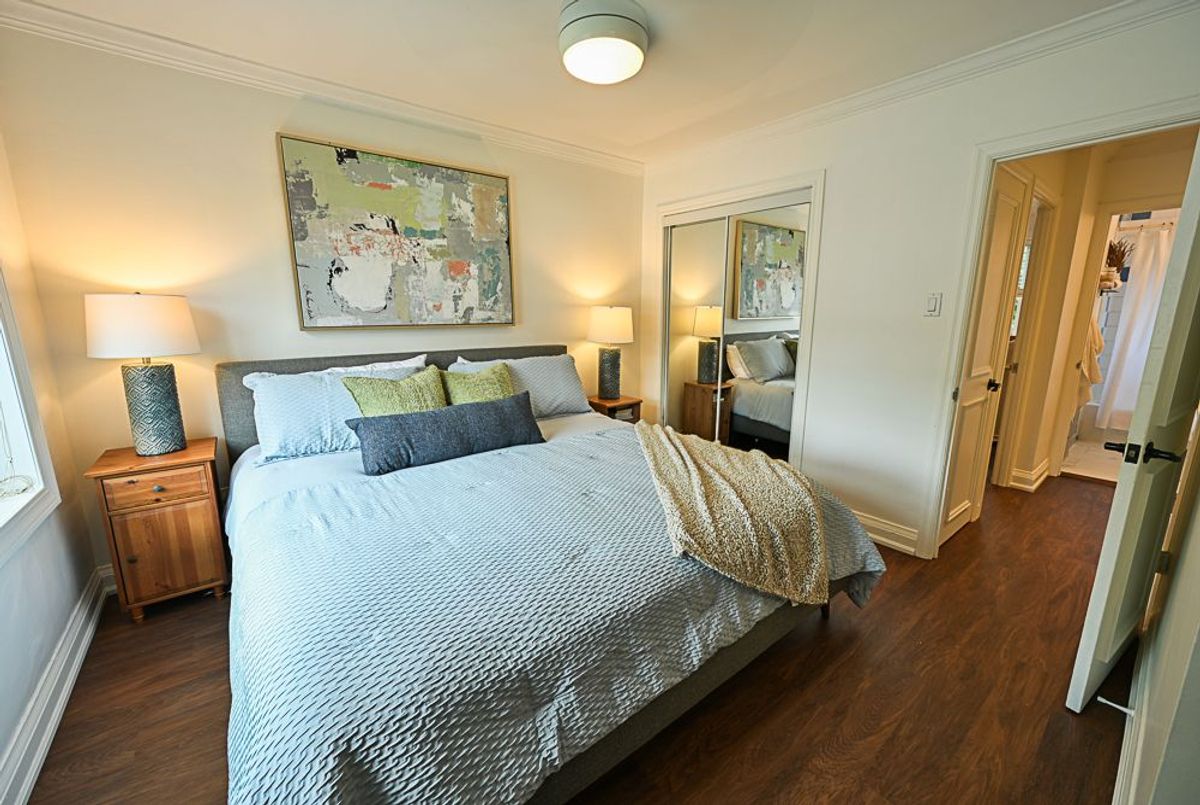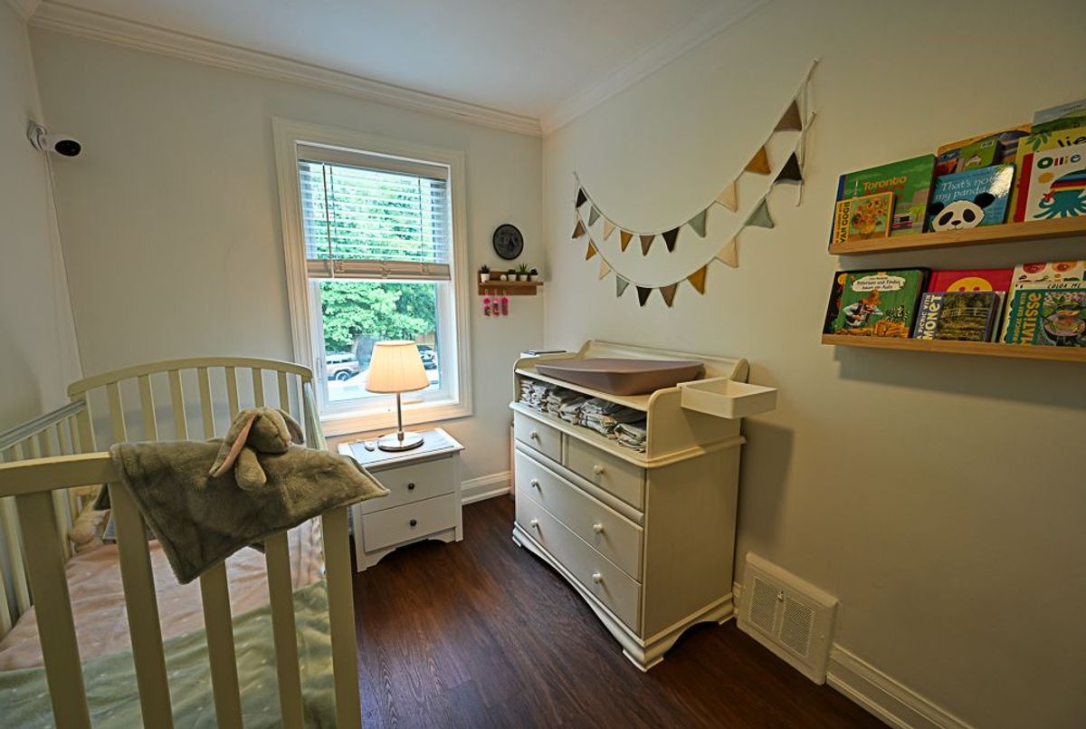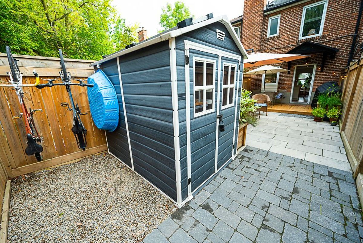 CUTE, QUIET, BRIGHT & CHARMING - This 2 bedroom, freehold, family starter with TWO PRIVATE PARKING SPOTS, perfectly situated in a highly sought-after location. THIS HOME IS IN EXCELLENT CONDITION, meticulously maintained, cared-for and UPGRADED. Steps to top-rated schools, synagogues, shops, restaurants, public transit & parks. PRIVATE BACKYARD: solar-powered, new privacy fence, a spacious deck for summer gatherings (NOTE: garden furniture included, as well as TWO garden sheds. INSIDE: stainless steel appliances, a gas stove, and premium oak HARDWOOD floors, crown mouldings, pot lights. UPSTAIRS: generous primary bedroom (easily big enough for a KING-SIZED BED) and a cozy second bedroom; NEW flooring as well as a freshly updated 4-piece bathroom. BASEMENT: custom built-in spacious laundry area, lots of storage & LOTS of upgrades. See list attached. HI-EFF gas furnace, 100 amp wiring. This is a sweet gem... Come by the OPEN HOUSE Sun 2:00 - 4:00