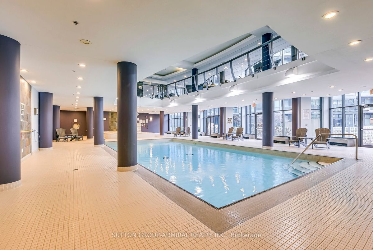 Welcome to Aquarius at Waterpark City!Discover this sun-filled, open-concept 2 Bedroom, 2 Bathroom Suite with 9' ceilings and approximately 937 sq ft of bright, functional living space - perfectly positioned just above the treetops with beautiful south and west views!Enjoy watching the seasons change through large floor-to-ceiling windows or from your private sunny balcony. Suite Highlights:Spacious Open-Concept Kitchen with stainless steel appliances, granite countertops, double sink, and ample counterspace, Primary Bedroom featuring a 4-piece ensuite and organized walk-in closet, Second Bedroom / Den with French door entry and a custom Murphy bed that converts to a convenient desk. Wide plank flooring! Elegant display/storage cabinet for extra functionality, Nook space ideal for a small, unobtrusive home office set-up. Welcoming foyer with a large double closet for extra storage. Lifestyle & Location: Enjoy resort-style living steps to the waterfront, the streetcar, and minutes from Downtown, King West, Liberty Village, and Billy Bishop Airport. Explore nearby parks, lakefront trails, shops, cafés, and top restaurants - everything you love about city living, right outside your door. Building Amenities:24-hour concierge, Visitor parking, Fully equipped fitness centre, Indoor pool, hot tub & sauna, Games room & Party room. Expansive 8th-floor terrace with BBQs and stunning lake views. This is a rare opportunity to own a bright, spacious suite in one of Toronto's most vibrant waterfront communities - combining comfort, convenience, and Lifestyle! ...