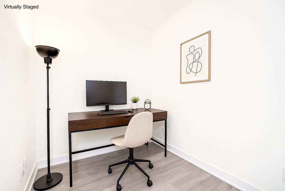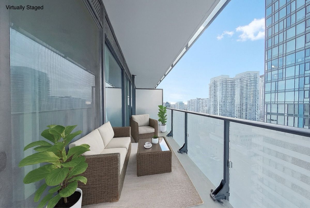 This bright and well-designed 1 bedroom + den suite offers a seamless open-concept layout that flows effortlessly from the entryway through the kitchen, dining, and living areas. Floor-to-ceiling windows span the suite's width, bringing in plenty of natural light. The bedroom features double sliding closets, providing ample storage, while the versatile den is ideal for a home office or reading nook. Step onto the balcony conveniently positioned between the bedroom and living room, to experience a well-balanced indoor-outdoor space. Take in west-facing views that stretch north and south-you can even spot the CN Tower Additional highlights include a large front hall closet, ensuite laundry and a smart Nest thermostat for personalized comfort. Residents enjoy top-tier amenities: a fully equipped Gym and Yoga Studio, a Rooftop Pool and Hot Tub, BBQ Terrace, Sauna, Billiard's lounge, spacious Party Room, Bike Storage, and 24-hour Concierge Service. All of this is located in one of Toronto's most vibrant neighbourhoods, surrounded by top restaurants, shops, and cafés, just steps from the Eglinton Subway and future LRT for easy access across the city. A stylish suite, an exceptional building, and a lifestyle that truly elevates everyday living. Welcome home.