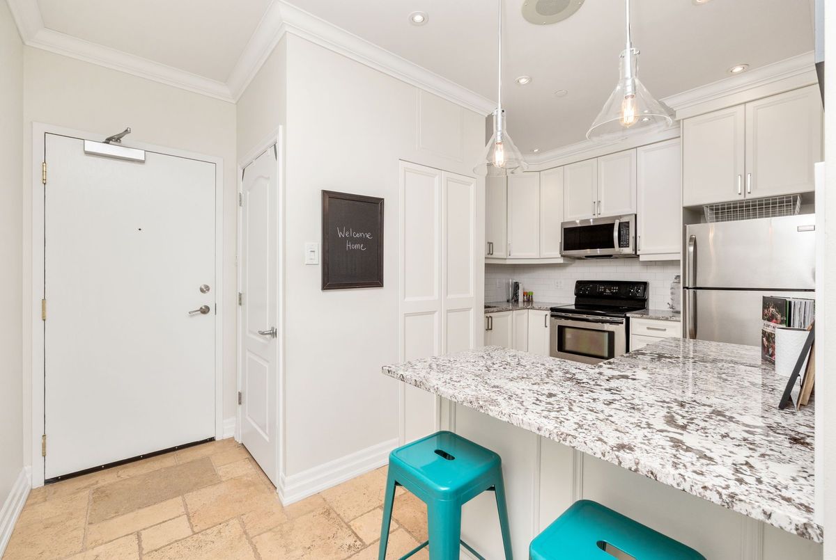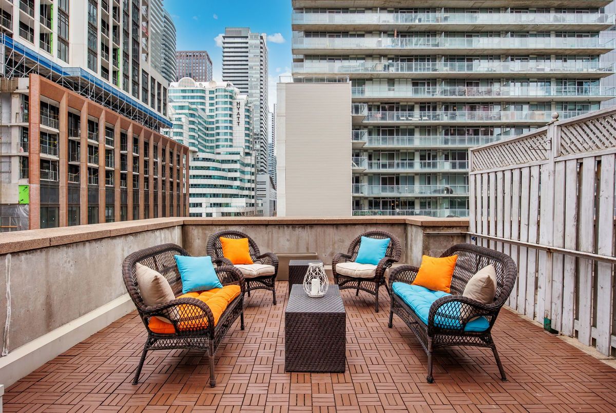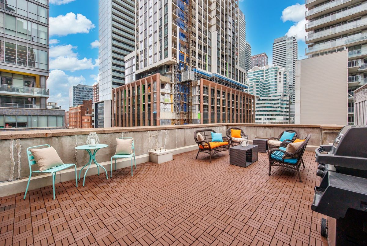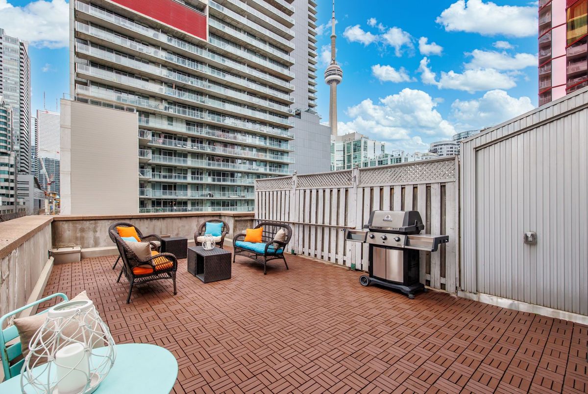Welcome to the most unique and coveted unit in the building a truly one-of-a-kind space located on the premium 4th floor with private terraces. Once an office building, this condo now boasts a stylish, industrial-chic vibe. The unit was Fully renovated in 2016, with spacious interiors this unit also has an exclusive 406 sqft terrace showcasing breathtaking CN Tower and skyline views.Unit 401 is a 2+1 bedroom, 1 bathroom corner unit offering 1,331 sqft total indoor and outdoor living space, with modern upgrades, creating a spacious, stylish, and functional home. Inside, you'll find hardwood flooring throughout the living, dining, and bedrooms, a bright and functional layout, 9 ft ceilings, a large solarium perfect for various uses, and a renovated kitchen with granite countertops, double sink, ample cupboard space, and a pantry. The ensuite laundry, custom decking on the terrace, and exclusive outdoor space add exceptional convenience and lifestyle appeal.This well maintained building offers a range of amenities, including concierge, a fitness center, a party and meeting room, and a security system for peace of mind. In 2020, the building underwent a comprehensive renovation that refreshed the common areas, including a modernized lobby and elegantly updated hallways, creating a welcoming and sophisticated atmosphere throughout. Situated at center ice in the heart of the city, your steps from The Well, King West restaurants, the Rogers Centre, and the subway, PATH, and Torontos most reliable streetcar yet surprisingly quiet, thanks to the traffic-restricted King St corridor. Enjoy a 100 walk score, direct Gardiner access, and a dog park with mature trees right behind the building. Owner Is Open To Lease Back Property At An Agreeable Rate With The Purchaser. As Per Builder The Solarium Is Considered The Den In This Layout
