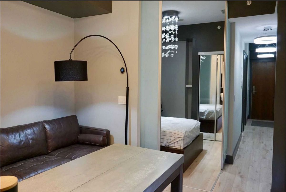 Live in the heart of Toronto's Entertainment District in this stylish 1-bedroom suite at 8 Mercer Street. Featuring an open-concept layout, sleek modern finishes, and a bright living space with a view of the iconic CN Tower. Enjoy a well-appointed kitchen with integrated appliances, stone countertops, and a breakfast bar perfect for entertaining. The primary bedroom offers ample storage and natural light. Comes with parking-a rare find in this prime downtown location. Steps to King West, the Financial District, TIFF Lightbox, world-class restaurants, and transit. The Mercer offers outstanding amenities including a fitness centre, party room, rooftop terrace with BBQs, and 24-hour concierge.