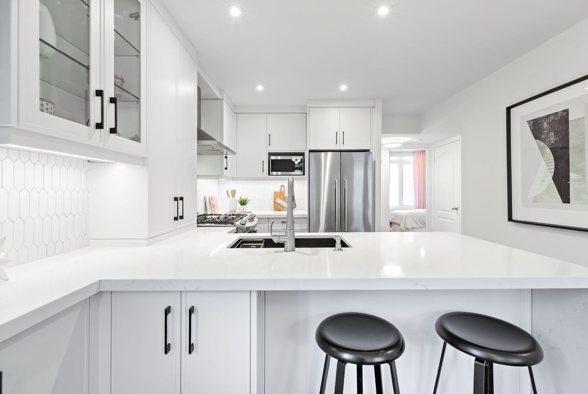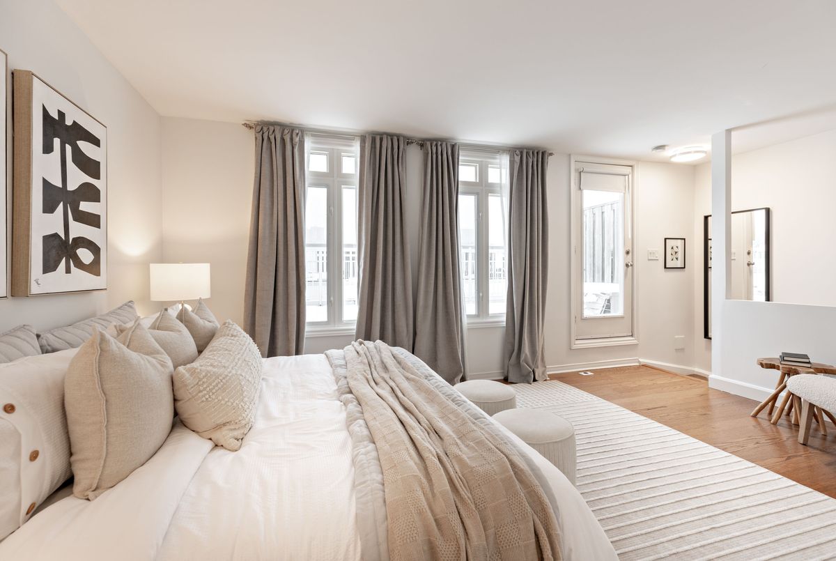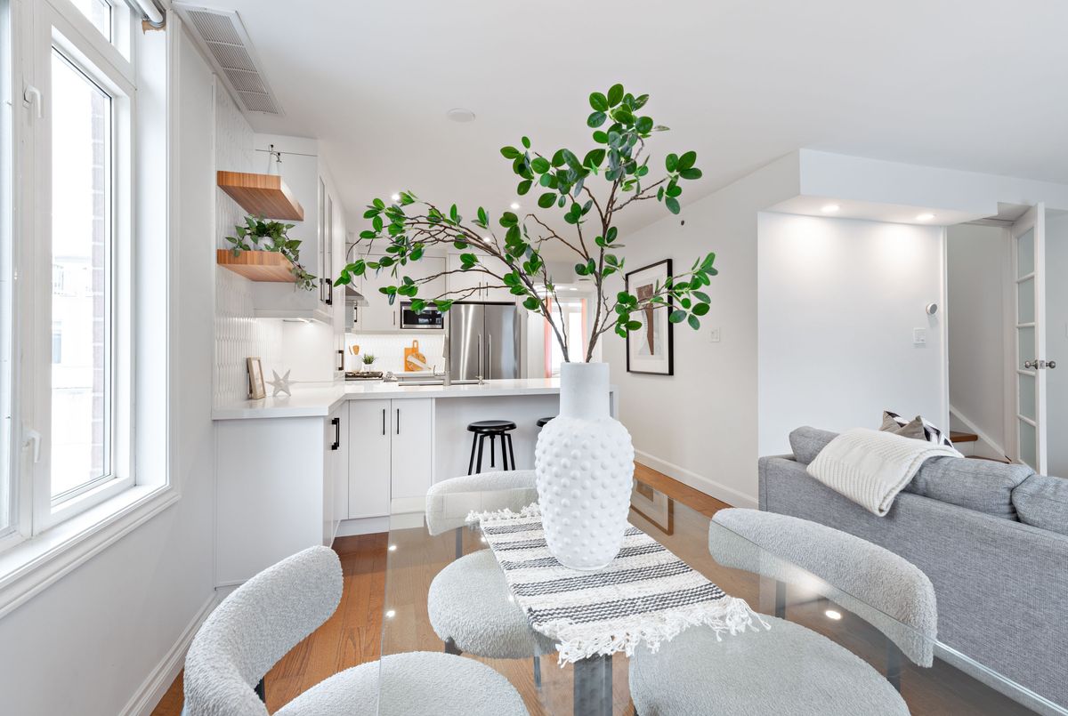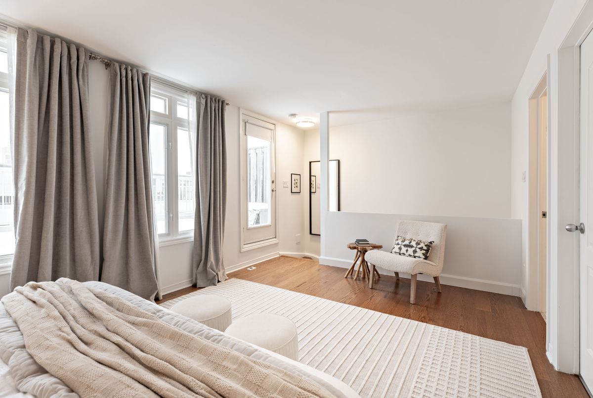 Worth the wait! Stunning, fully renovated, sun-filled corner three-bedroom townhome offering a luxurious King West lifestyle with the convenience of direct access to a large built-in garage and an expansive rooftop terrace ideal for unwinding and entertaining. The heart of the home is an open-concept living and dining space designed for both everyday comfort and hosting, featuring a gas fireplace, breakfast bar seating, and a walk-out to the front balcony-perfect for enjoying morning sun. The custom kitchen is anchored by a granite waterfall countertop, custom cabinetry built to the ceiling, a gas stove, a thoughtfully designed coffee bar extension, and ample storage including a dedicated pantry, combining style with exceptional functionality. Upstairs, the generous primary retreat impresses with a walk-in closet, spa-like ensuite, and direct walk-out to the approximately 240 sq ft west facing rooftop terrace-an exceptional private outdoor space complete with a gas BBQ hookup and water line, ideal for outdoor living and entertaining. Two additional bedrooms offer flexibility, including a main-floor bedroom with a built-in office nook, making it perfect for a multi-purpose bedroom and convenient work-from-home space. Thoughtful upgrades throughout include gorgeous hardwood floors, smooth ceilings with pot lights, high-end fixtures, and the complete professional removal of Kitec plumbing. Additional storage is found in the large under-stair storage area at the entry to the garage, along with the convenience of an EV charger rough-in. The home is further enhanced by a Google smart home system including door lock, doorbell camera, thermostat, and smoke/CO detectors. All of this is nestled in a fantastic King West location, just steps to TTC on King and Queen, minutes to Trinity Bellwoods Park, Ossington's vibrant restaurant scene, grocery stores, gyms, and easy access to the lakefront. Truly exceptional urban living.