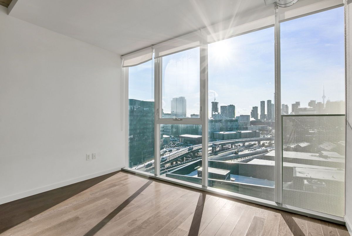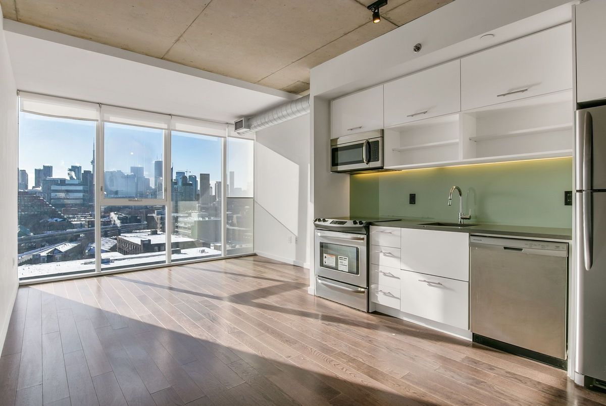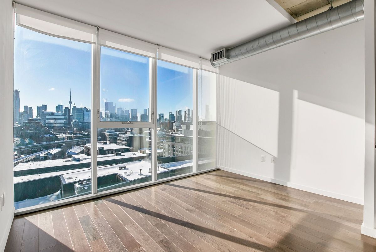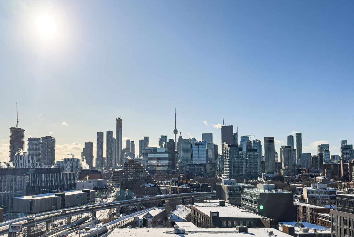 Incredible city/CN Tower views from this stylish 1 bedroom condo in trendy canary district. Enjoy an abundance of natural light in this west facing suite with concrete 9' ceilings & high-end kitchen & bathroom finishes. This unit comes with an ideal office space, plenty of storage and excellent amenities including an outdoor pool, large fully equipped gym and fantastic party room with city views. Steps to hot spots like Impact Kitchen, Gusto 501, Broadview Hotel & TTC at your door steps to get downtown in minutes. Unit has been professionally cleaned and ready for occupancy!