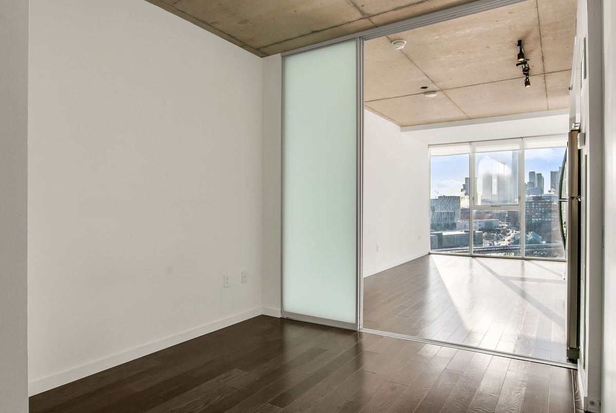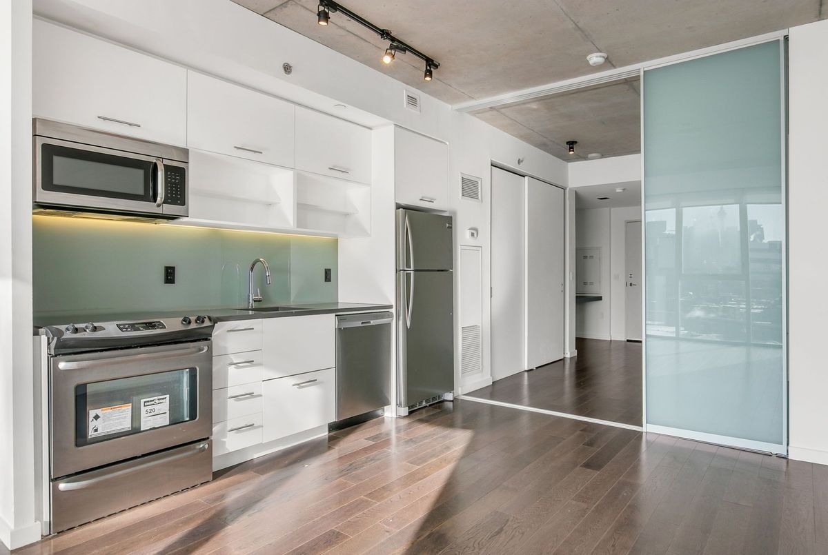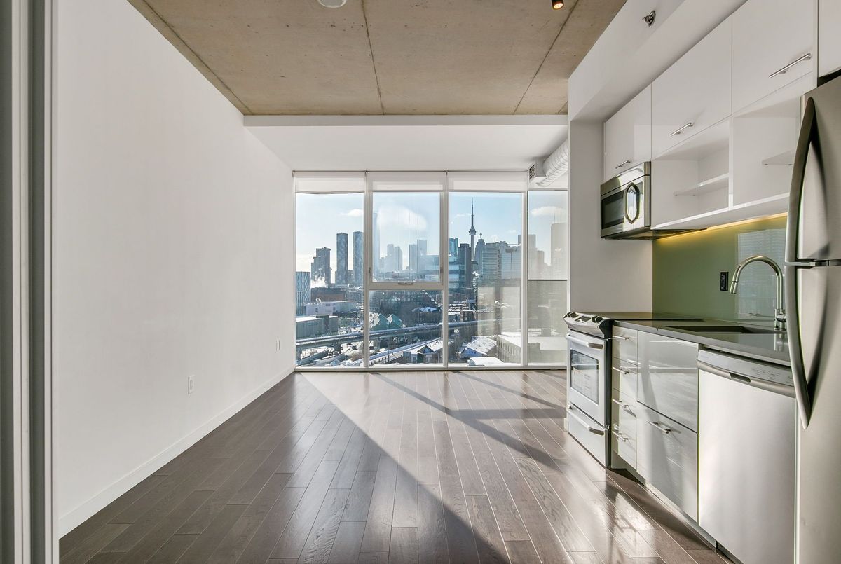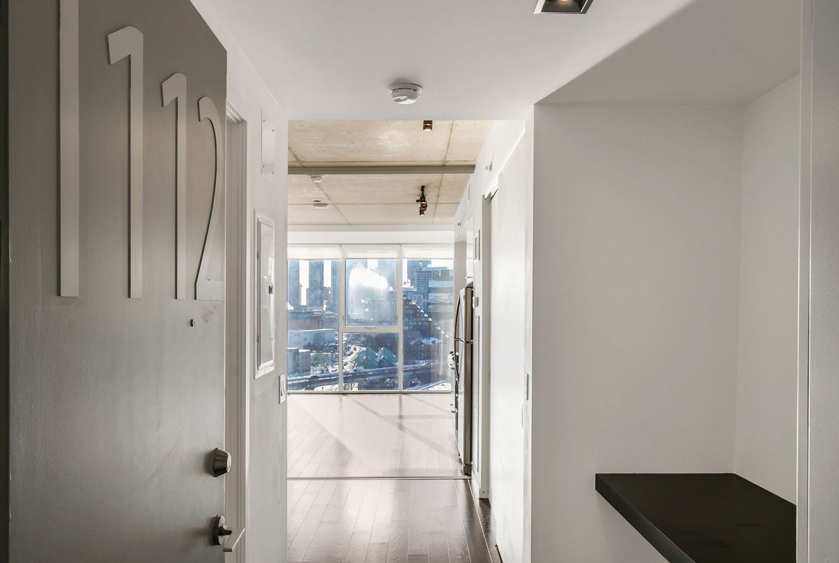 Incredible city/CN Tower views from this stylish 1 bedroom condo in trendy canary district. Enjoy an abundance of natural light in this west facing suite with concrete 9' ceilings & high-end kitchen & bathroom finishes. This unit comes with an ideal office space, plenty of storage and excellent amenities including an outdoor pool, large fully equipped gym and fantastic party room with city views. Steps to hot spots like Impact Kitchen, Gusto 501, Broadview Hotel & TTC at your door steps to get downtown in minutes. Unit has been professionally cleaned and ready for occupancy!