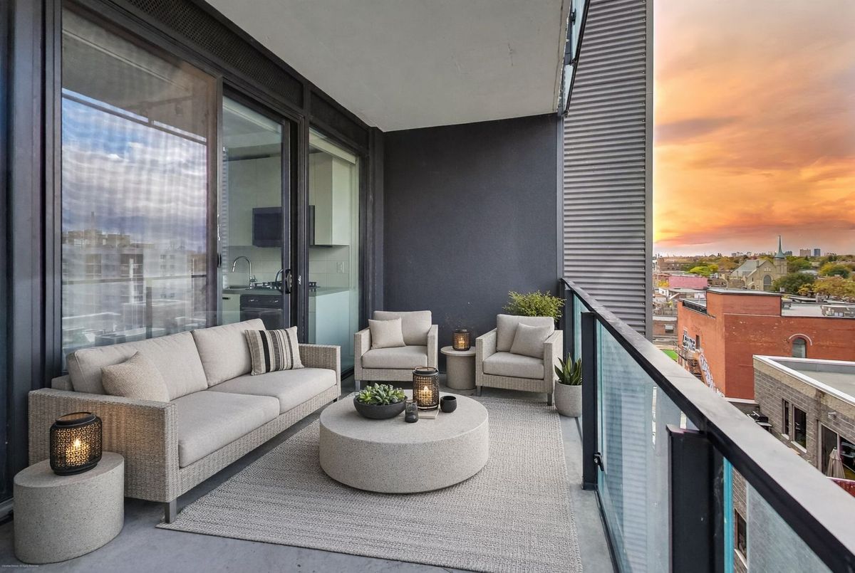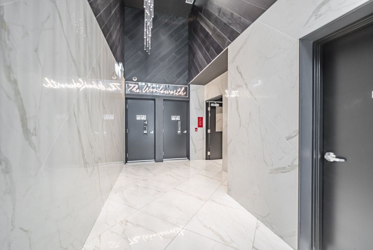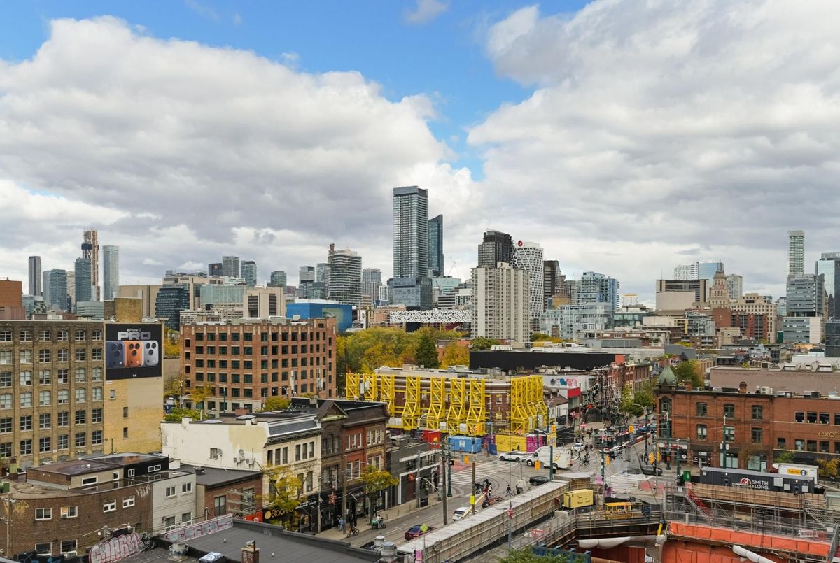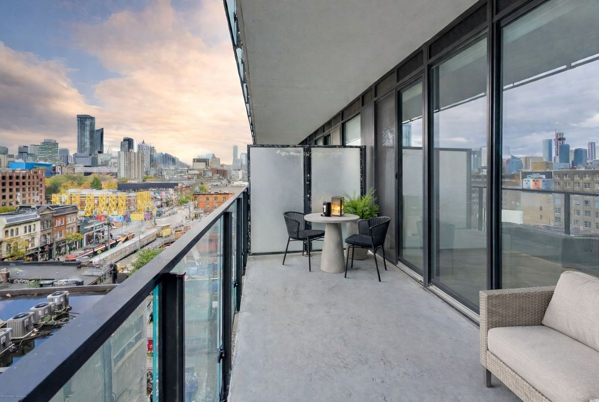 Live in Luxury at Woodsworth Condos! Sparkling clean, bright and airy - this lavish loft-style suite is located in one of downtown Toronto's most sought-after boutique addresses. A soft-loft in its truest form featuring soaring 9-ft ceilings, an exposed concrete accent wall and dramatic floor-to-ceiling windows that fill the space with natural light. Step out onto your spacious balcony - a private oasis perfect for morning coffee or evening relaxation. Sit back, relax and indulge in spectacular sunset and city views. The open-concept European-style kitchen impresses with quartz countertops, a sleek (+ super rare) gas cooktop, and modern cabinetry designed for sophisticated urban living. Retreat to the spa-inspired bath, complete with 4-pieces - a 2-in-1 soaker tub/shower waterfalled with marble-style tile, porcelain floor tiles, a quartz vanity and mirror + under-sink storage space. Ensuite laundry! Enjoy premium building amenities including a state-of-the-art fitness centre and stylish party/meeting room. Perfectly located steps from Queen West, the Financial and Entertainment Districts, and Toronto's best shops, cafes, and restaurants. Includes 1 Storage Locker!