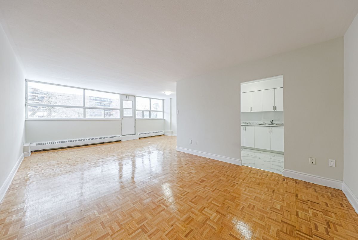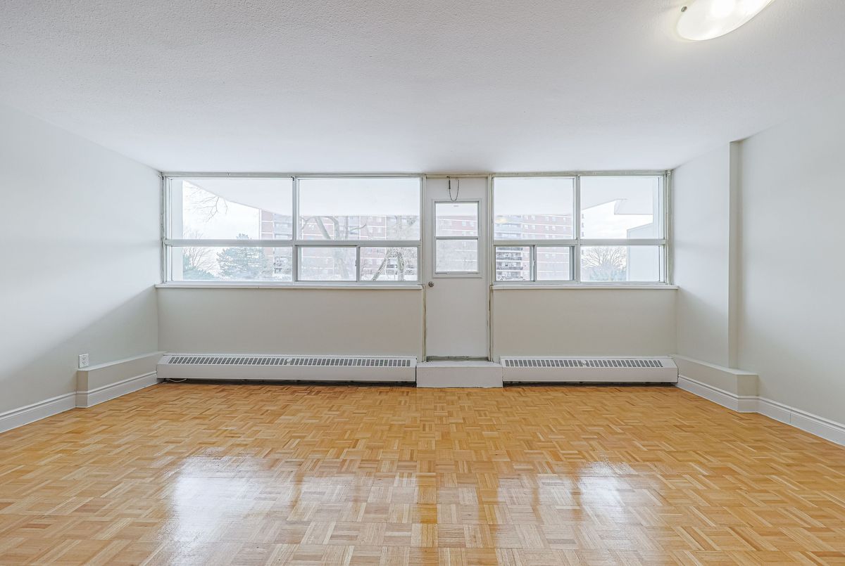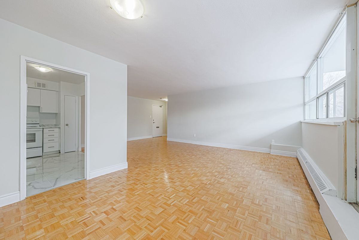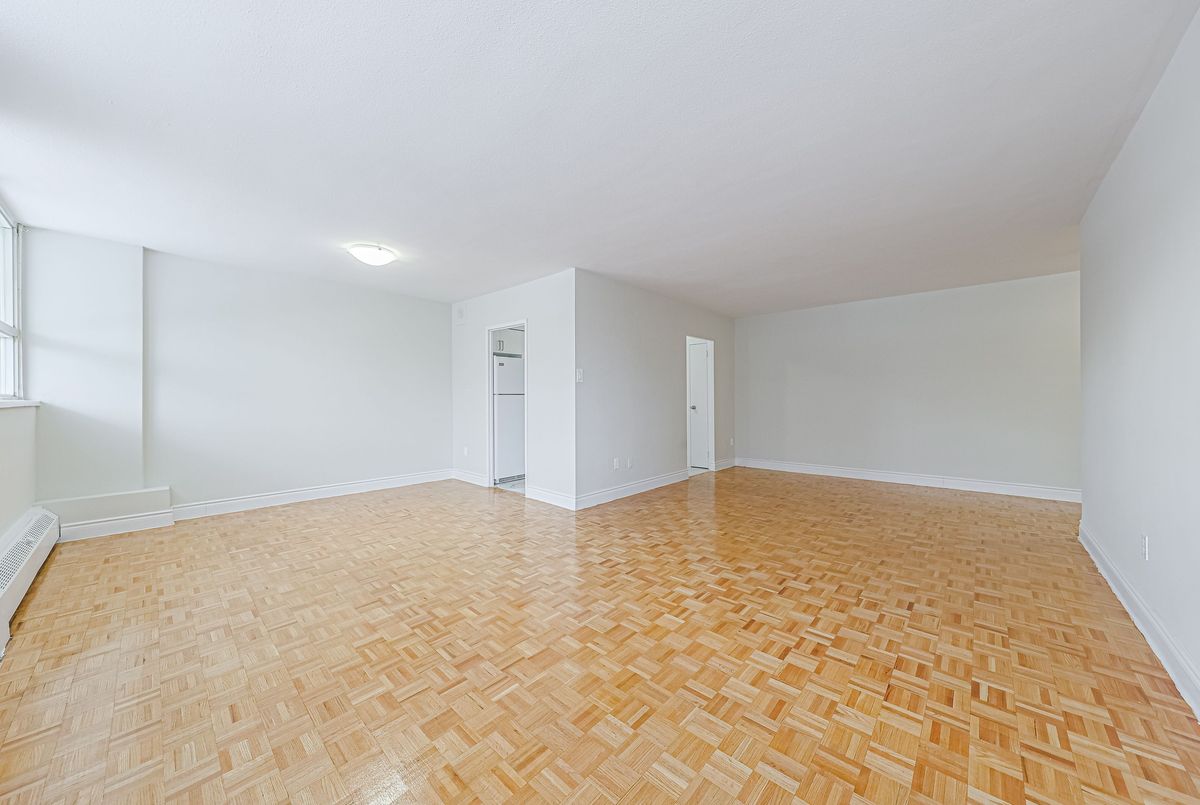 Live across the Parkway Mall. Spacious, bright, clean units with open dining area and large balconies. Newly painted in neutral colors with refinished floors. Newer counter tops and appliances in kitchen, plenty of storage and closet space. New tiles in hallways and kitchen. On site laundry. Cable and internet ready. Professionally landscaped grounds. Video controlled lobby and intercom system for added security. Property Management for added convenience. Fridge, Stove, Existing Elf's, Pet Friendly, Wall A/C allowed Close to schools, shopping and churches, library, TTC outside your door, 401 and DVP a short distances. Well Equipped Laundry Room on-site*Pictures might be of similar unit*