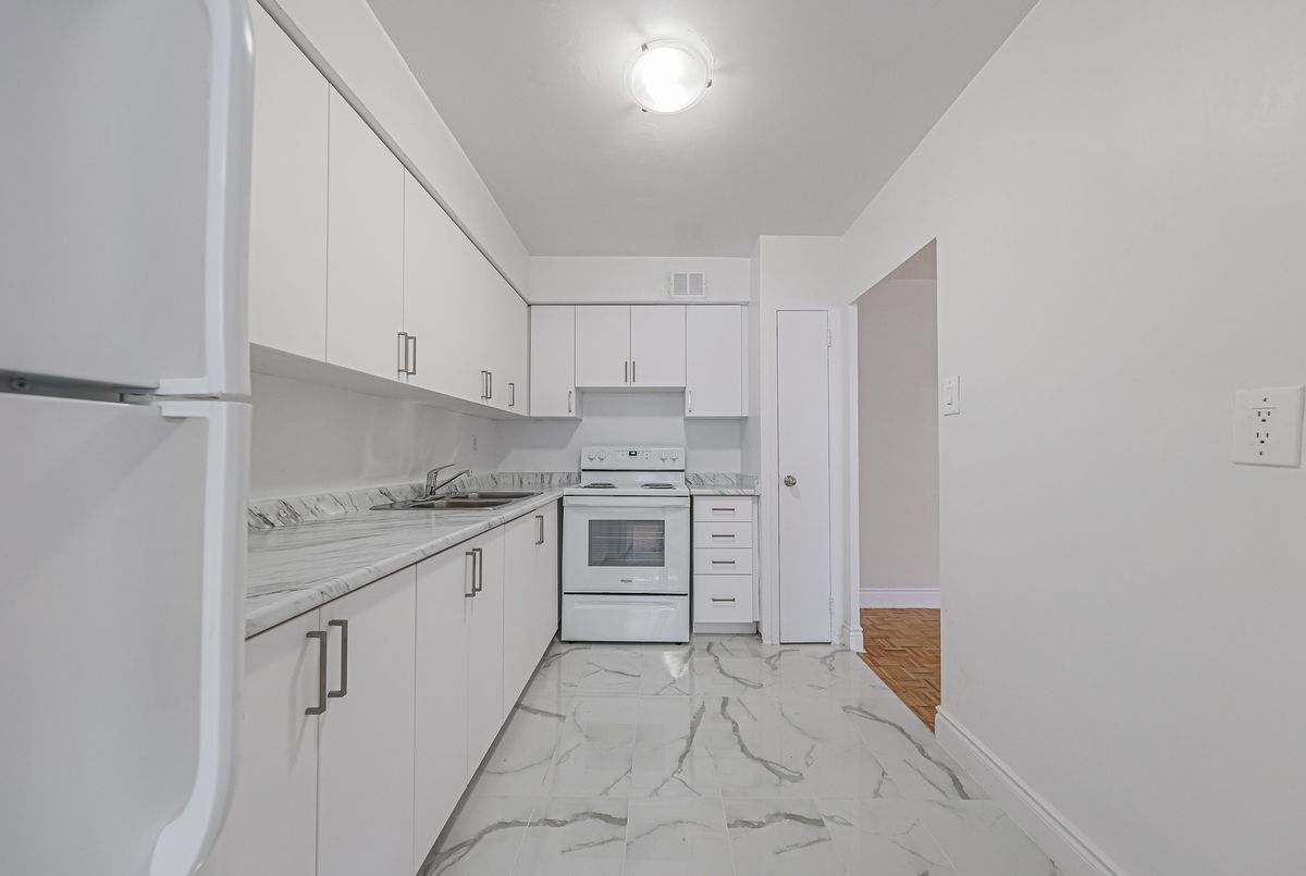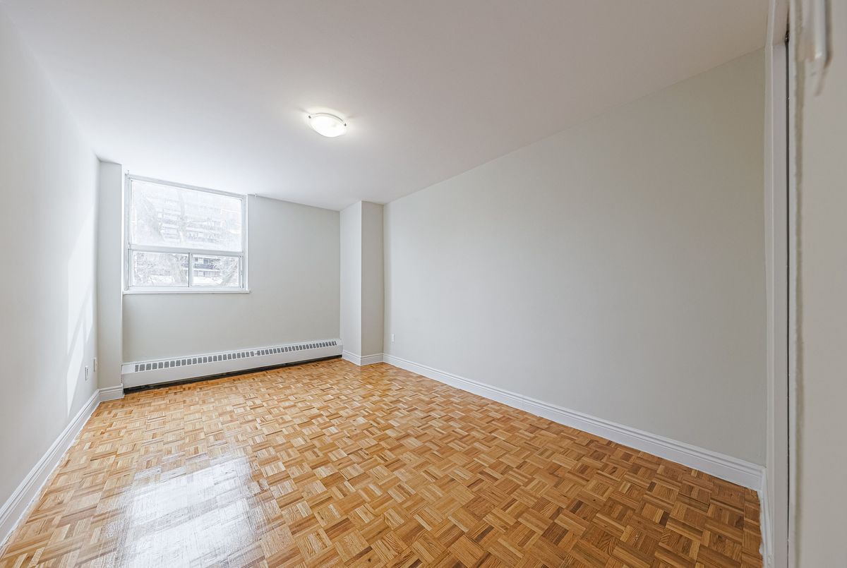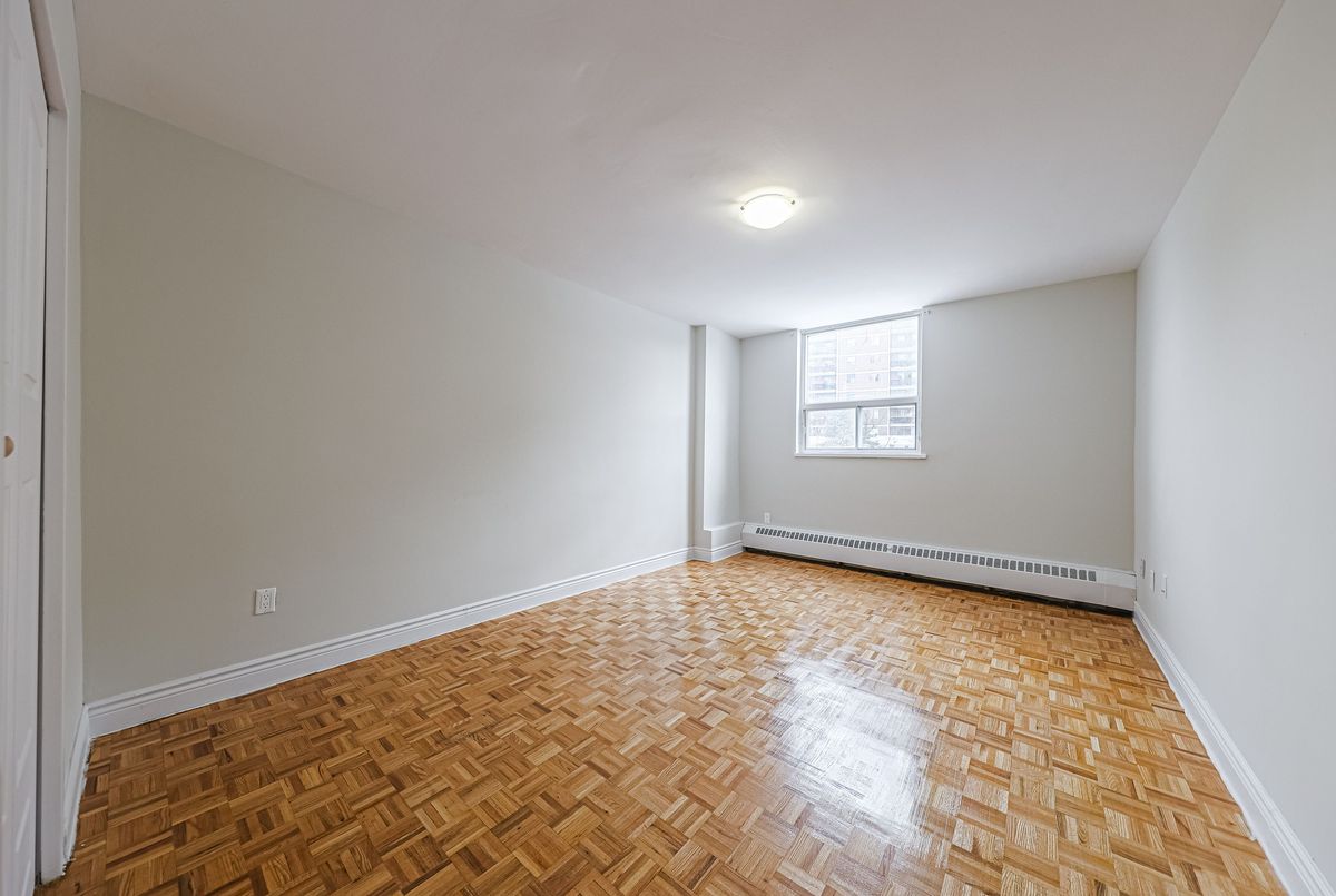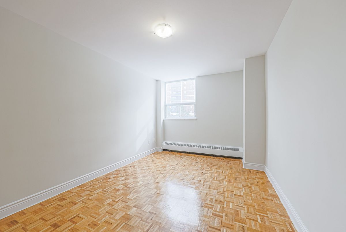 Live across the Parkway Mall. Spacious, bright, clean units with open dining area and large balconies. Newly painted in neutral colors with refinished floors. Newer counter tops and appliances in kitchen, plenty of storage and closet space. New tiles in hallways and kitchen. On site laundry. Cable and internet ready. Professionally landscaped grounds. Video controlled lobby and intercom system for added security. Property Management for added convenience. Fridge, Stove, Existing Elf's, Pet Friendly, Wall A/C allowed Close to schools, shopping and churches, library, TTC outside your door, 401 and DVP a short distances. Well Equipped Laundry Room on-site*Pictures might be of similar unit*