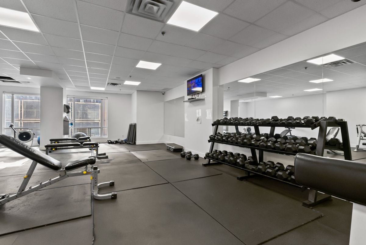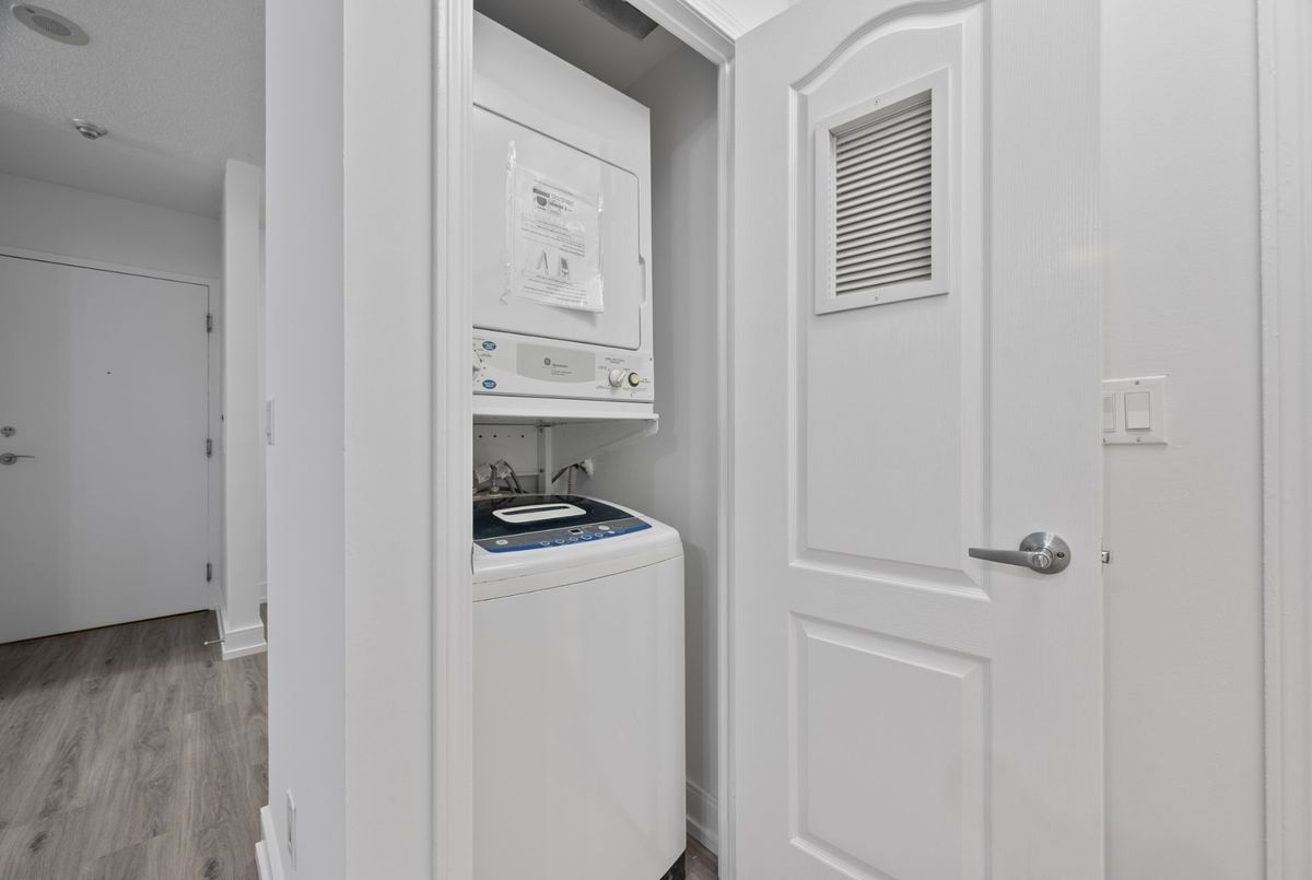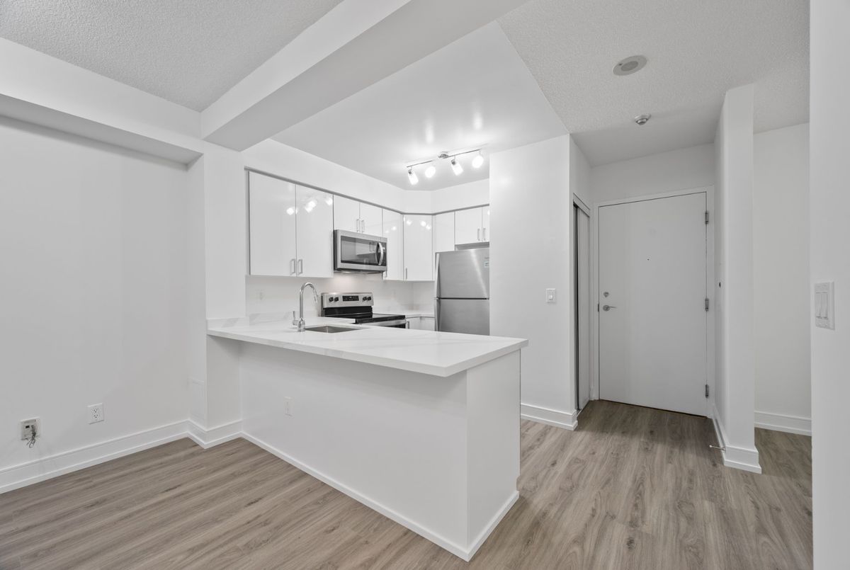 This spacious one-bedroom + den offers 715 square feet of thoughtfully designed living space. The modern, open-concept kitchen features a breakfast bar that seamlessly connects to the living and dining areas and vinyl flooring throughout. Residents can enjoy a variety of amenities, including a concierge, gym, and a rooftop terrace with BBQs, along with a party room and lounge, movie theatre, and golf simulator for added entertainment. Situated in the heart of the city, this property offers unmatched proximity to the subway, financial district, entertainment district, and the lively neighbourhoods of King and Queen West, with easy access to the Gardiner Expressway. Experience Toronto's finest restaurants, theatre, shopping, and vibrant city life right at your doorstep!
