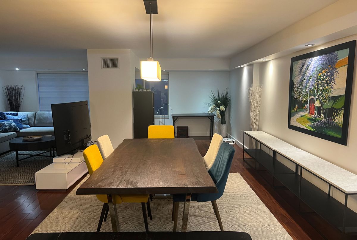 Welcome to Empire Plaza, where downtown living meets comfort and convenience in this amazing suite in great shape and great location*About 1500 S.F. suite W/bright and spacious living space & floor-to-ceiling windows with stunning city views, two washrooms, in-suite laundry, and individually controlled heating and cooling for year-round comfort*Very Cozy open-concept Living and Dining area*Open Concept very modern kitchen W/Stainless Steel Appliances, Centre Island & Ceramic Backsplash*The Large Primary Bedroom features Very Big Attached Closets and a Private 4 Piece ensuite, 2nd Bedroom W/Plenty of Closest Space*A Open Den/Study/Office W/Plenty of Natural Light*Residents enjoy access to 24-hour security, on-site management, a well-equipped fitness centre, a rooftop terrace with panoramic 360-degree city views, and a beautifully designed party room with a media centre, wet bar, and library. Rent includes Utilities, 1 Parking, and Building Insurance. Located at the corner of University and Wellington, steps from Union Station, the PATH, world-class restaurants, entertainment, and Toronto's financial and sports districts, this is the ideal place to call home in the heart of the city.