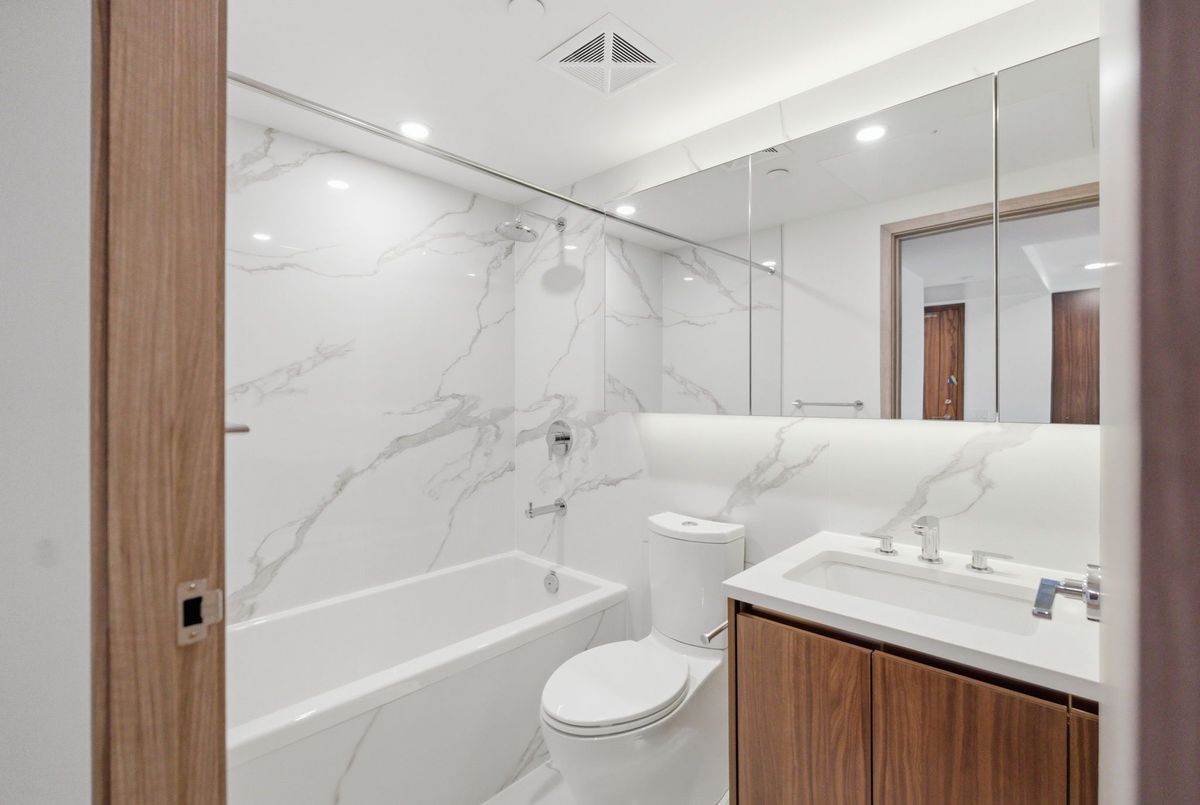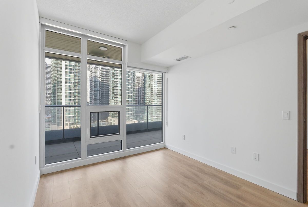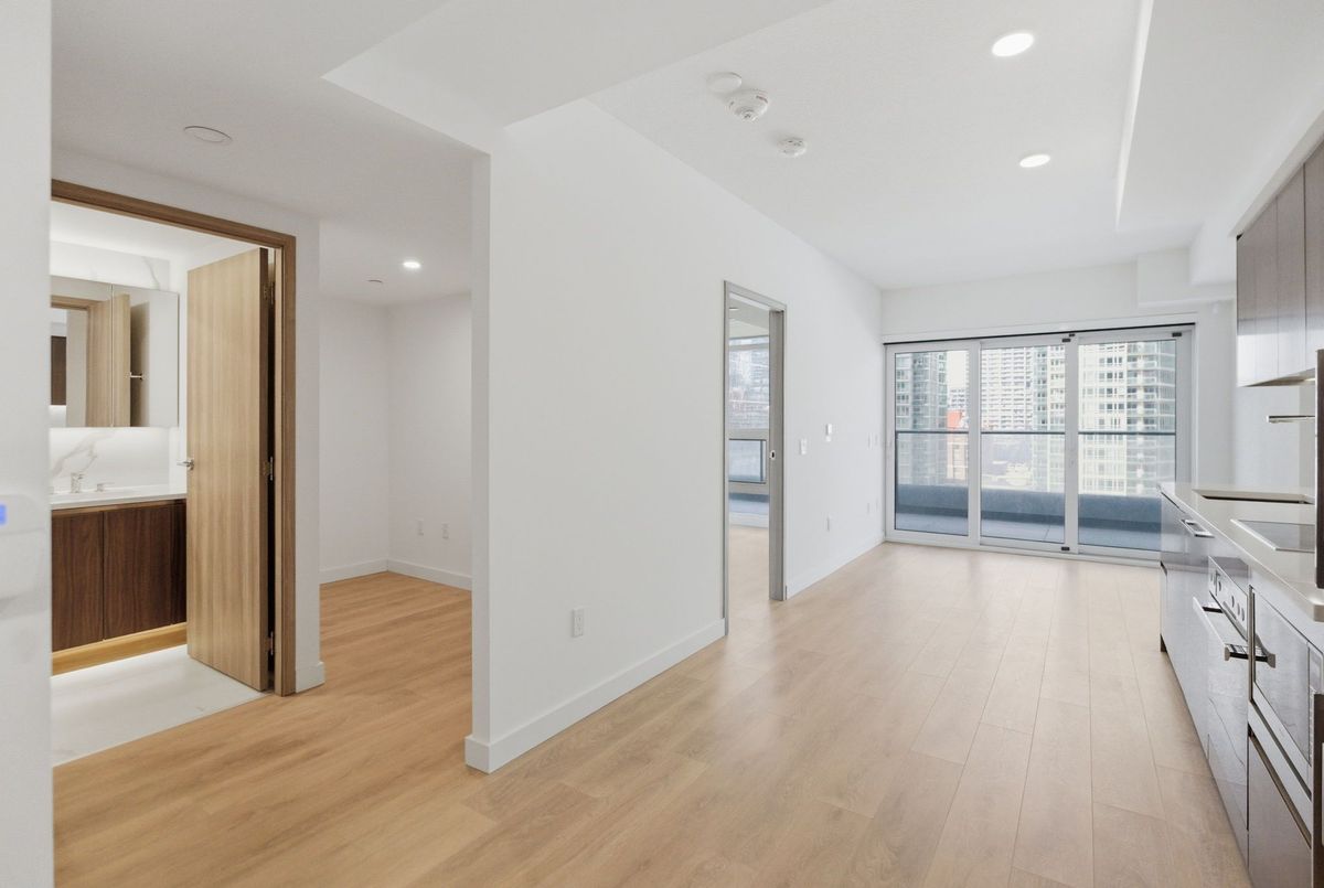 Brand new 1 bedroom plus den suite with clear city views at Concord Canada House. Located inthe heart of downtown, this well-designed unit offers approximately 550 sq ft of interior spaceplus a spacious 133 sq ft balcony, totaling 683 sq ft. The smart layout is ideal for a workingprofessional or anyone seeking a convenient downtown retreat. Floor-to-ceiling windows provideabundant natural light by day and beautiful city views at night. Features include premium Mieleappliances, built-in organizers, and a modern bathroom with an oversized medicine cabinet forextra storage. The balcony is finished with composite wood decking and built-in lighting,creating a comfortable outdoor space to relax and unwind. Unbeatable location just steps to theSpadina streetcar with direct access to Union and Spadina Station. Walk to The Well, CanoeLanding Park, Rogers Centre, and the Waterfront. Minutes to Sobeys, Farm Boy, Sweat and Tonic,Metro Toronto Convention Centre, King West, the Financial District, Union Station, ScotiabankArena, and Billy Bishop Airport. Professionally managed and available for immediate occupancy.