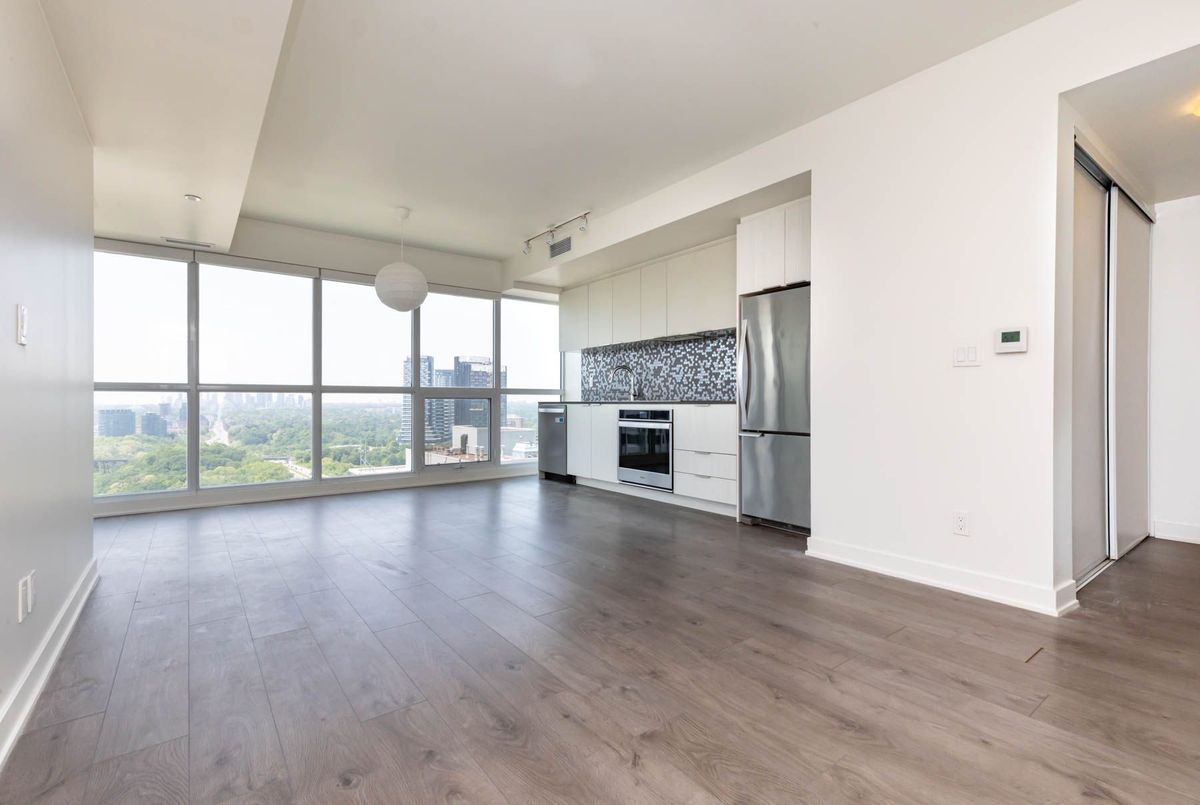 Experience elevated living in this stunning 2-bedroom, 2-bathroom condo perched on the 27th floor of Sonic Condos. Boasting 773 sq ft of thoughtfully designed interior space, this sun-filled suite features breathtaking southwest views through floor-to-ceiling windows, bathing the home in natural light and offering spectacular sunset vistas. Recently professionally painted, the unit showcases modern finishes throughout, including smooth ceilings, a stylish mosaic backsplash, and durable quartz countertops. The chef-inspired kitchen is equipped with full-sized appliances, highlighted by a premium Bosch stovetop, perfect for culinary enthusiasts. Enjoy the convenience of 1 parking spot and 1 locker, providing ample storage and ease of living. Residents have access to world-class amenities, including a state-of-the-art gym, yoga studio, party room, and 24-hour concierge service. Located steps from the Real Canadian Superstore, Ontario Science Centre, and the Aga Khan Museum, with effortless access to the DVP and TTC, this vibrant neighborhood offers unparalleled connectivity and lifestyle options.