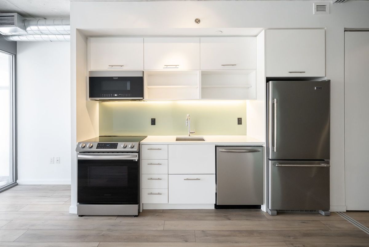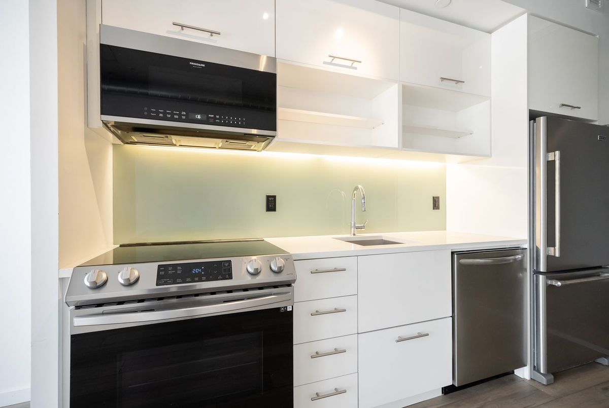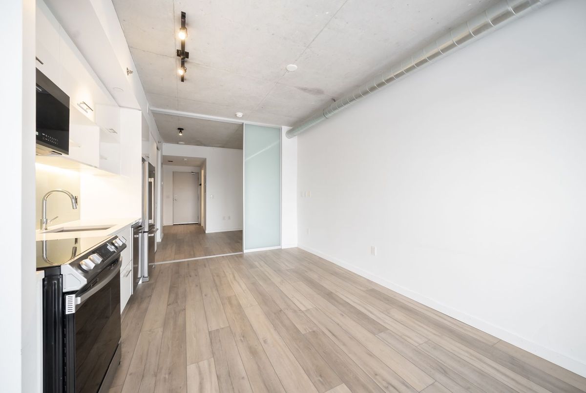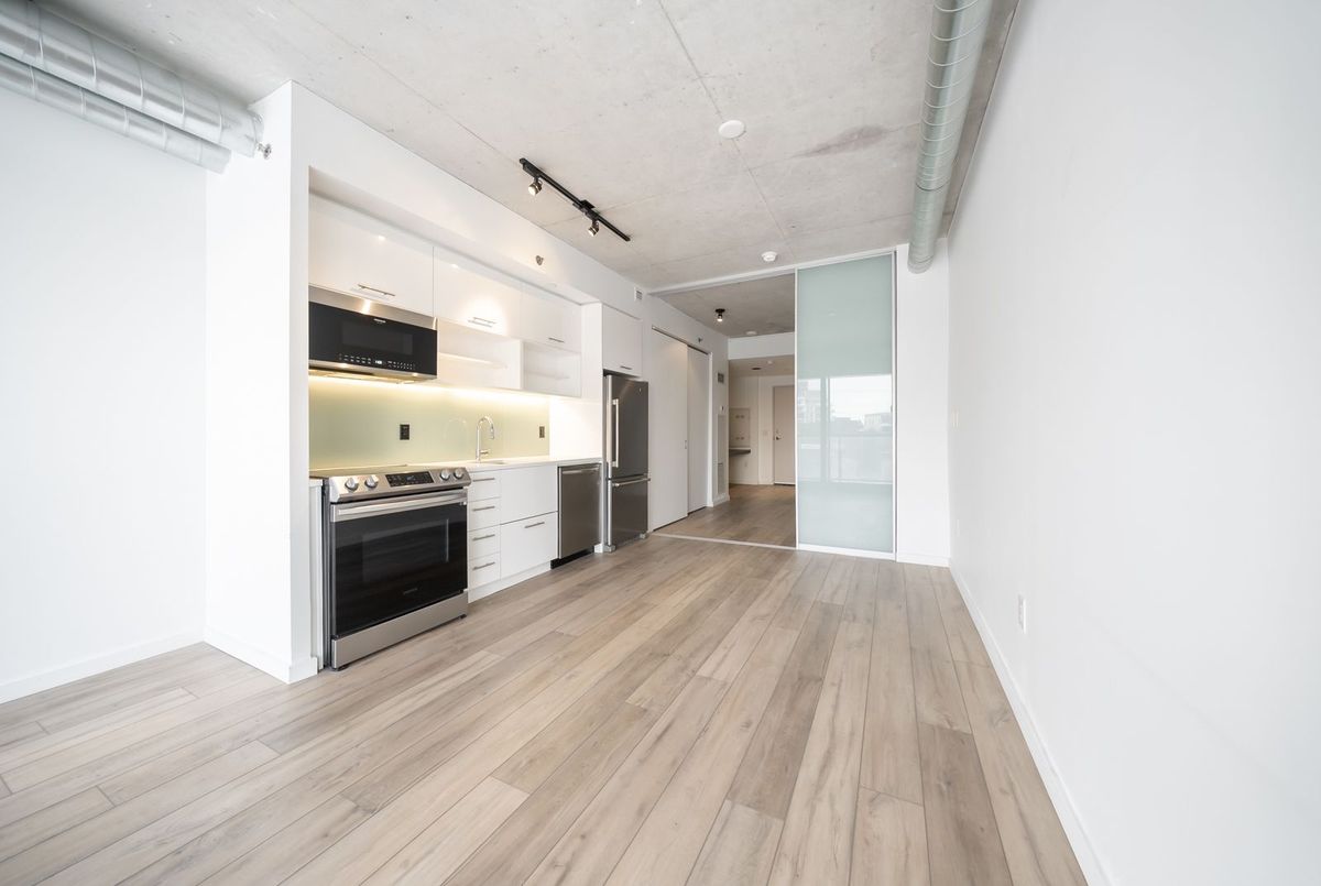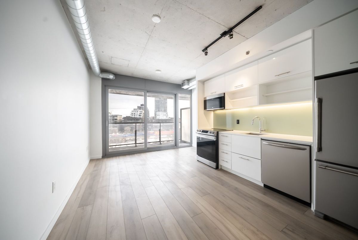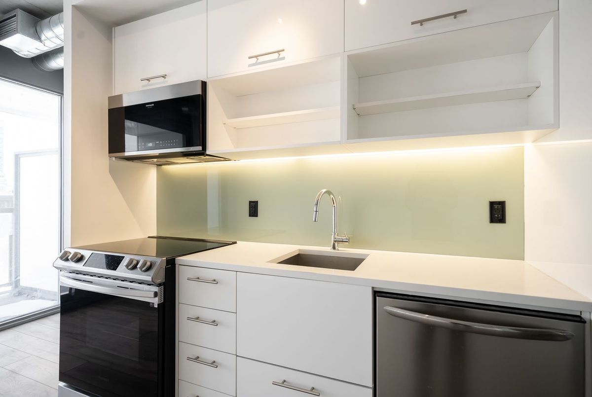 Gorgeous, bright, and spacious condo featuring a modern open-concept layout and high ceilings. Fully upgraded with brand-new flooring throughout and a modern kitchen complete with quartz countertops and all new stainless steel appliances, including a new fridge, dishwasher, stove, and microwave range. Sun-filled living space opens to a private balcony with unobstructed views. Steps to shopping, the Distillery District, St. Lawrence Market, George Brown College, TTC, and quick access to the Gardiner & DVP.