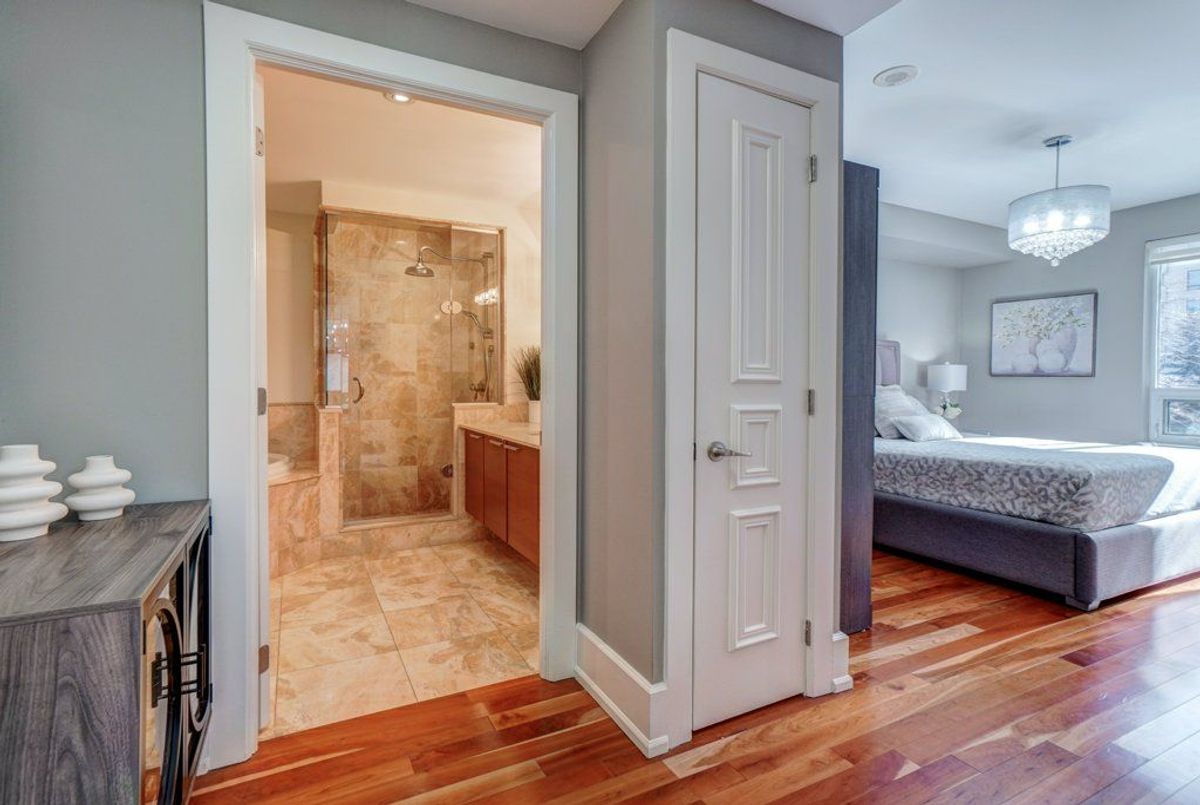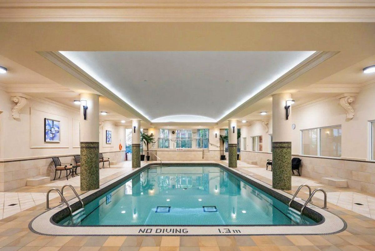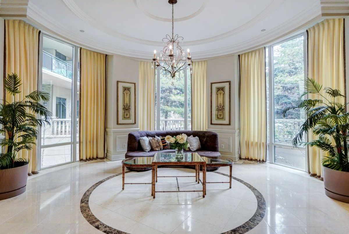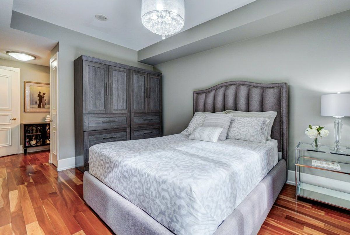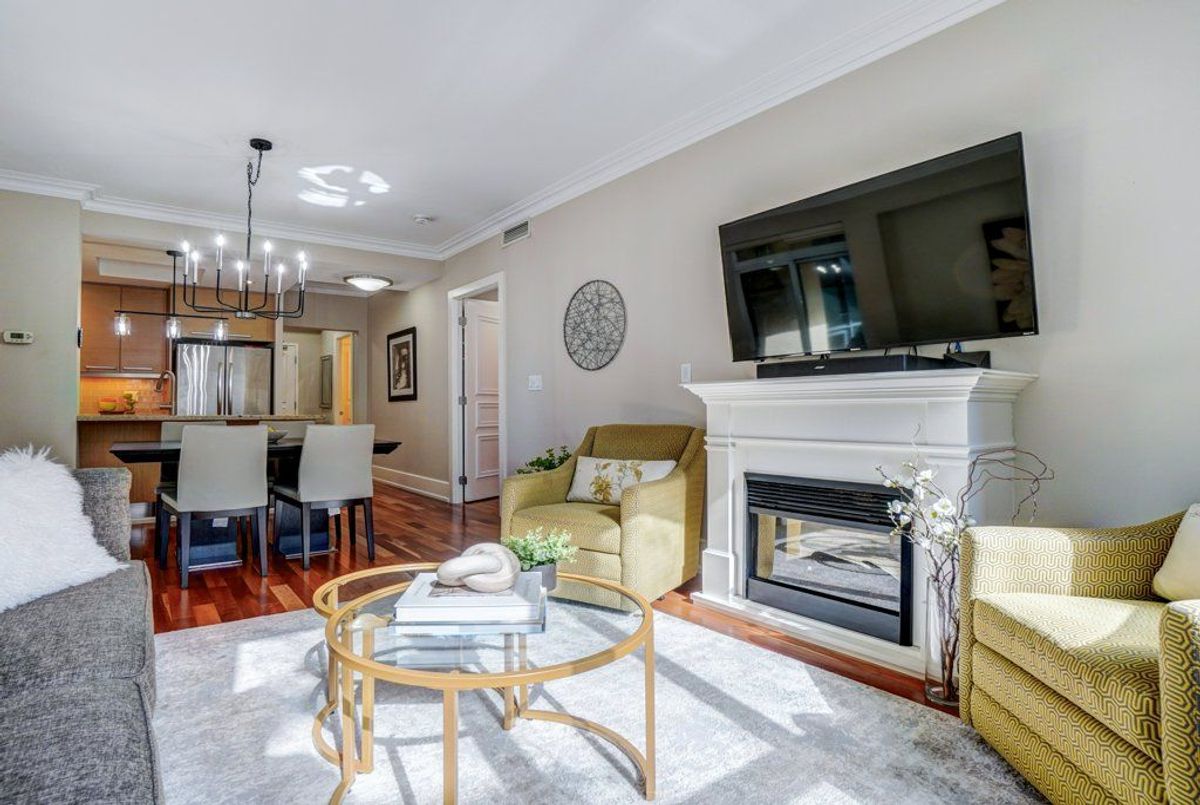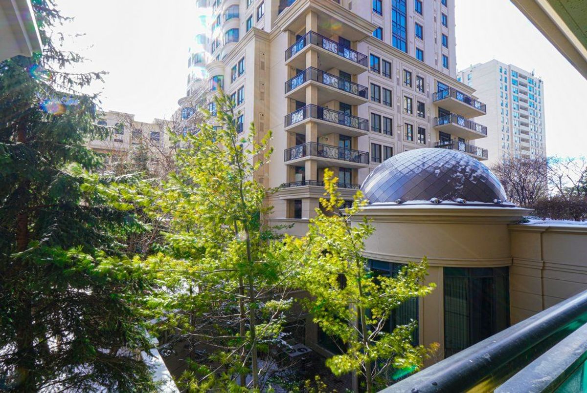 Welcome to an exceptional offering in the iconic St. Gabriel Village by renowned builder Shane Baghai, nestled in the prestigious Bayview Village community. This gorgeous, immaculate 2-bed, 2-bath residence offers 1,090 sf of refined living and represents one of the most attractive entry points into this exclusive, 2-tower enclave. This offering is uniquely positioned for discerning buyers seeking luxury, value and prestige. Thoughtfully designed and arguably the best 2-bedrm layout in the building, the suite features 9' smooth ceilings, a welcoming gas fireplace, and an ideal split-bedroom plan for privacy. South-facing exposure floods the space with natural light, while the 2nd floor setting offers tranquil, tree-filled views and exceptional privacy. Rich hardwood and marble flooring, solid interior doors, and quality finishes reflect Baghai's signature craftsmanship. The spacious primary retreat keeps you organized with closet organizers and a linen closet, and a large ensuite with lux features: a large jetted tub, separate shower with rain shower head and body jets, and a Toto Washlet. A modern LG WashTower (June 2025) enhances everyday convenience. The balcony includes a gas BBQ line for effortless outdoor cooking and entertaining. Inspired by French and Italian design principles with contemporary elegance, St. Gabriel Village offers superb management and 5-star hotel-like services: 24/7 concierge & security, valet parking and porter service (prompt deliveries to suites). Residents enjoy resort-style amenities including an indoor pool & hot tub, wet and dry saunas, fitness centre, games room, library, party room, visitor parking, beautifully landscaped gardens and a charming Village Square with a fountain. Steps to Bayview Village Shopping Centre, subway access and minutes to Hwy 401,404/DVP. This is sophisticated living at its finest. (See floor plan included with photos.)