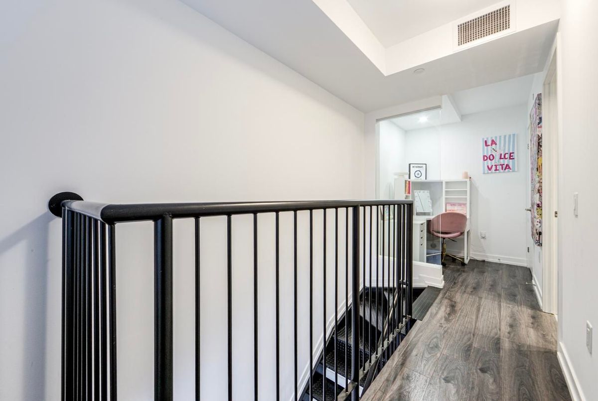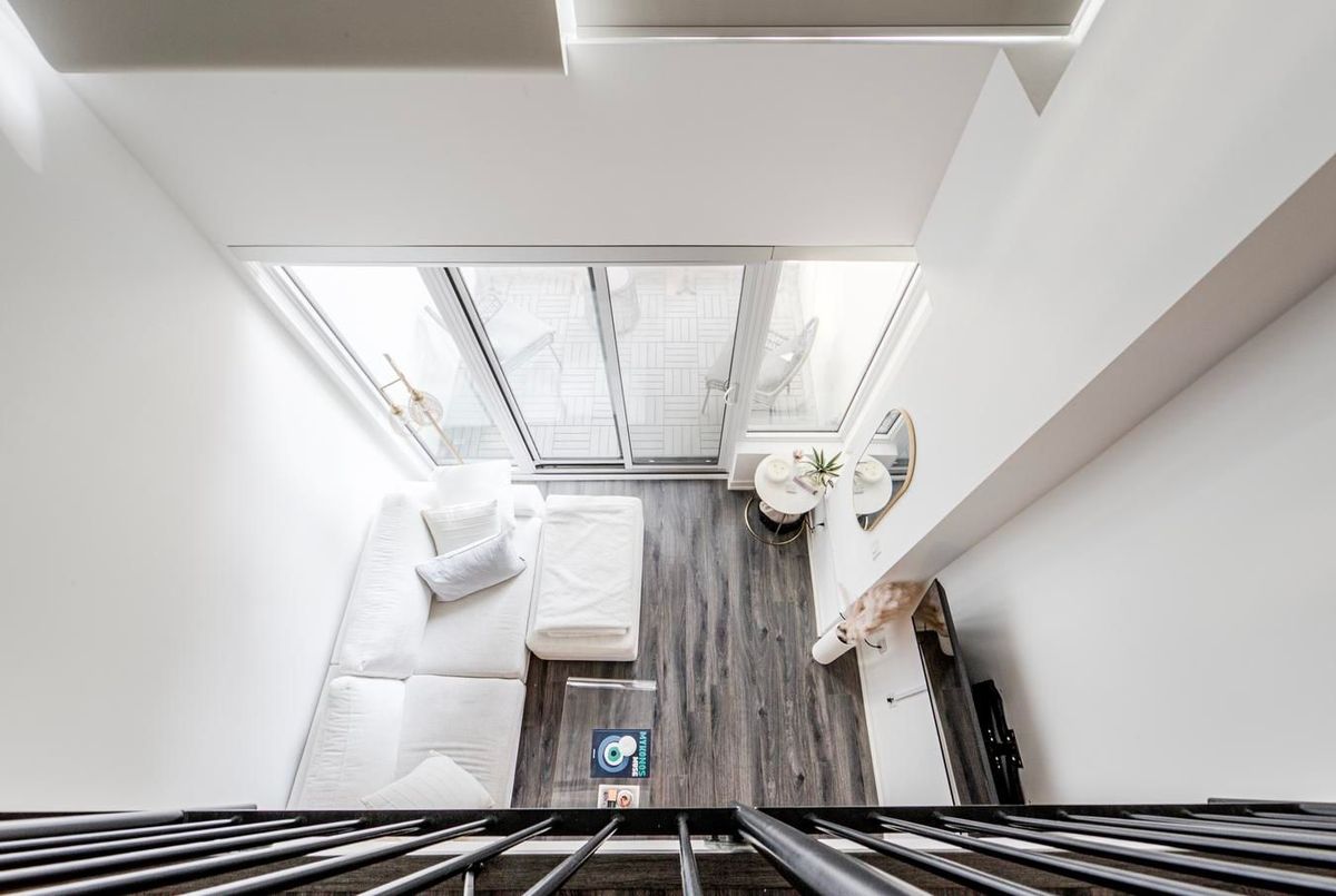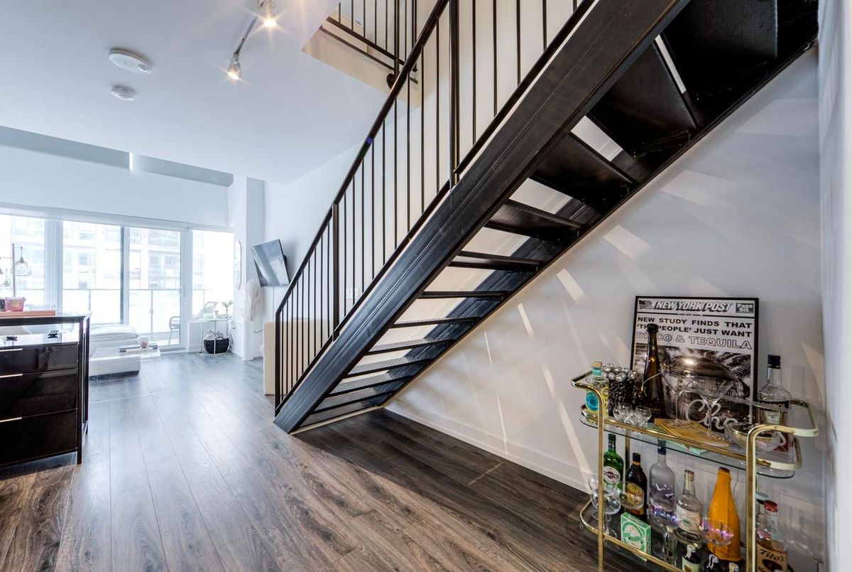 Beautiful St Thomas Dev Condo features 2-Storeys, 1 Bedroom + Den w 2 Baths! Centrally Located: Close to Universities, Transit, Financial District, Eaton Centre & Restaurants, Entertainment & Hwys. The Unit Is On Two Levels with High Ceilings, Large Windows & a Spacious Terrace. Includes a Locker & a Parking Spot