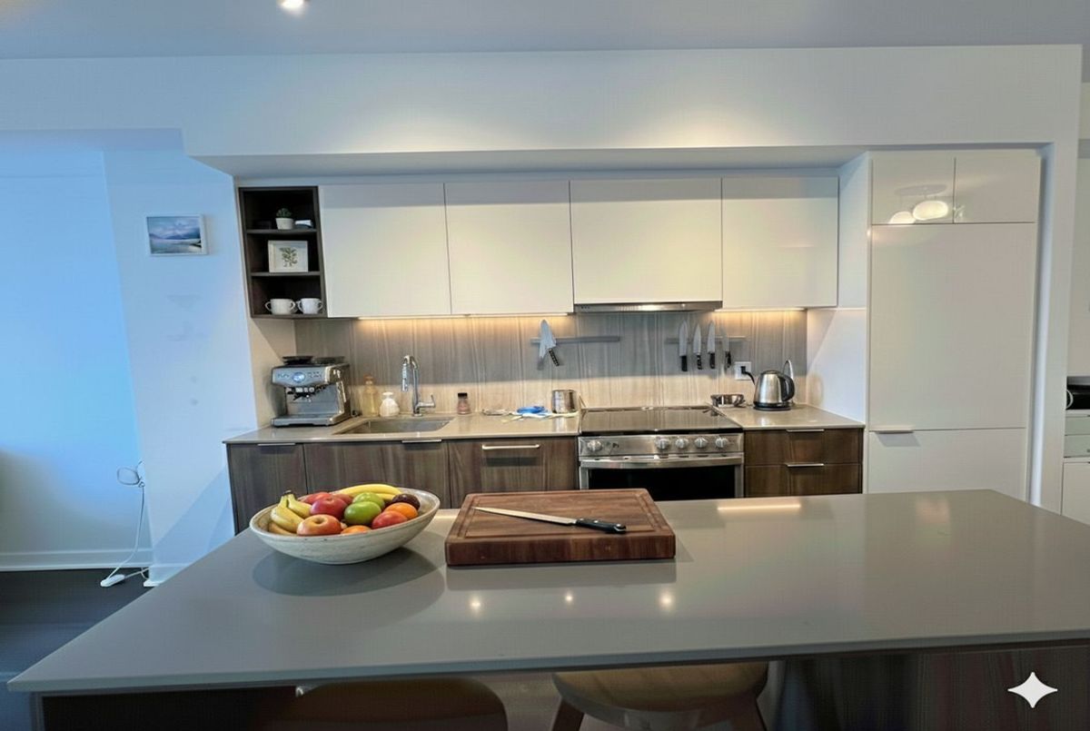 Located at Wilson & William R Allen, this modern 1-bedroom plus den Southside Condo offers the perfect blend of convenience and style. The unit features around 587 sq. ft. of interior space, including an unfurnished living area with a pre-installed TV mount, a chic kitchen island, and a relaxing bathtub.The highlight of the home is the 132 sq. ft. terrace-an extra-large, special outdoor area designed for true patio enjoyment and lounging while taking in stunning unobstructed views. Residents enjoy unparalleled access to a huge equipped gym and a rooftop pool, along with the convenience of nearby storage and a prime location just 4 minutes from the subway, 8 minutes from Costco, minutes from Yorkdale Mall, and seconds from the 401 highway.