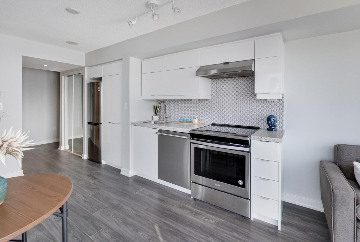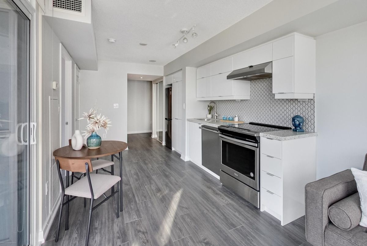 Stylish 1-bedroom condo in the heart of City Place featuring parking and a locker - a rare and valuable find in the area. Freshly painted and move-in ready, this suite offers a modern updated kitchen with quartz countertops, a sleek contemporary backsplash and stainless steel appliances. Floor-to-ceiling windows flood the space with natural light and lead to a private balcony showcasing stunning city and sunset views. Enjoy full access to the luxurious Parade Club with resort-style amenities including a 24-hour concierge, indoor pool, fully equipped gym, yoga studio, squash courts, ping-pong & billiards, theatre room, party room, rooftop terrace with BBQs, guest suites, kids' play area, and ample visitor parking. Unbeatable downtown location steps to the TTC, Sobeys, the Toronto Waterfront, Rogers Centre, CN Tower, Union Station, and PATH. Surrounded by some of downtown Toronto's best restaurants, cafés, and shops, with easy access to the Gardiner and nearby waterfront trails. Perfect for end users or investors seeking comfort, convenience, and vibrant urban living.