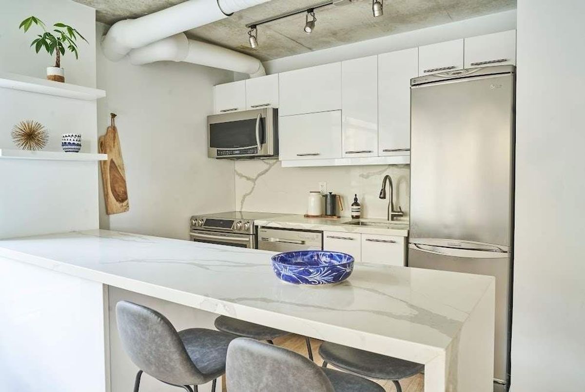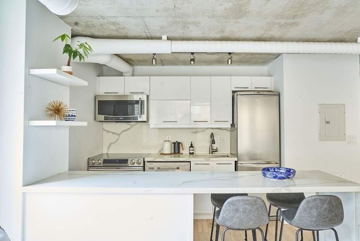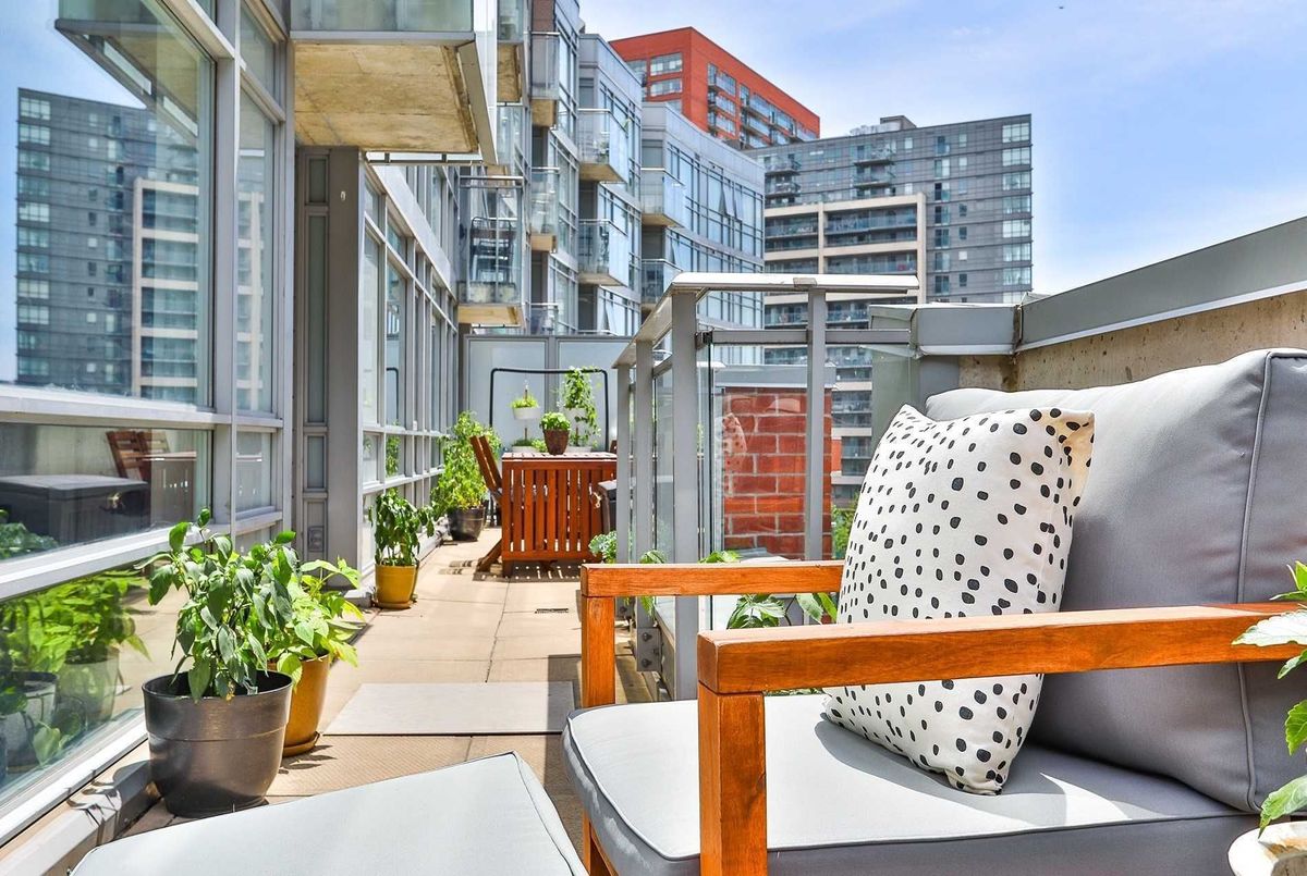 Welcome to 170 Sudbury St #505 - a beautifully renovated residence in the heart of Toronto's vibrant West Queen West neighbourhood. This exceptional corner suite is highlighted by a stunning wraparound sun drenched terrace, offering an incredible extension of your living space and the perfect setting for outdoor entertaining. Rarely offered and highly coveted, this expansive terrace truly sets the home apart. Inside, no detail has been overlooked. The unit has been carefully renovated with a brand-new kitchen featuring top-of-the-line Samsung stainless steel appliances, sleek quartz countertops and backsplash, a dramatic waterfall island, and a seamless built-in dinette - thoughtfully designed for both everyday living and stylish hosting. Beautiful white oak flooring flows throughout, creating a warm and cohesive aesthetic. The generous primary bedroom offers a peaceful retreat complete with a private ensuite bath and custom built-in closets, delivering both comfort and exceptional storage. This turnkey suite also includes parking, an oversized locker for added convenience, bike storage & gym. Located just steps to Queen West's renowned shops and restaurants, the Ossington strip, Trinity Bellwoods Park, and with quick transit access to the city's core, 170 Sudbury St #505 delivers the ultimate blend of lifestyle, luxury, and location. A rare opportunity to own a thoughtfully designed home with extraordinary outdoor space in one of Toronto's most sought-after neighbourhoods.