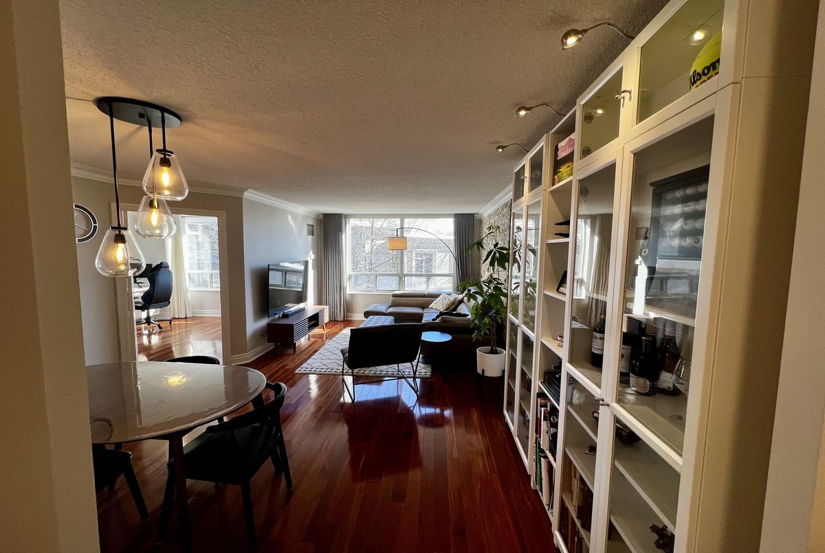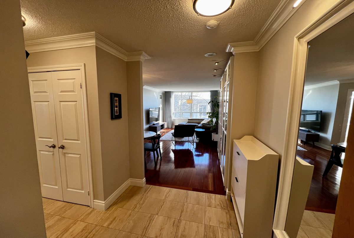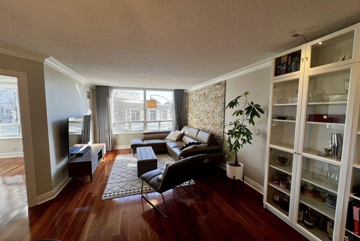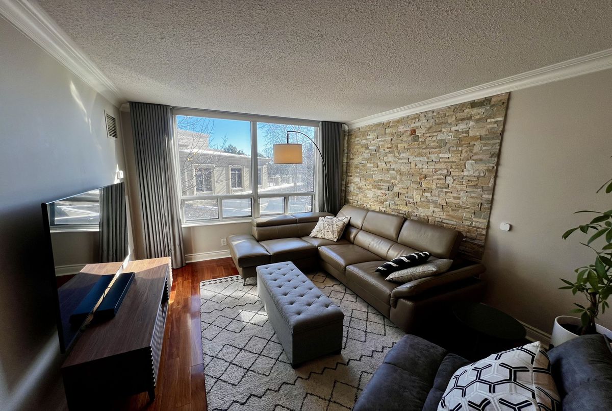 Welcome to Suite 303 at 78 Harrison Garden Blvd - a meticulously renovated residence in the prestigious Skymark Centre at Avondale where no detail has been spared. Rich hardwood floors, soaring crown moulding, and a striking stone accent wall set the tone for a home that is as sophisticated as it is inviting.The chef's kitchen has been fully reimagined with quartz countertops, custom shaker cabinetry, subway tile backsplash, and premium stainless steel appliances. Two generously sized bedrooms offer flexibility for couples, remote workers, or young families alike. The primary ensuite is a true spa retreat - double vessel sinks, brushed gold fixtures, quartz counters, and a glass-enclosed soaker tub with rain shower.Oversized windows flood every room with natural light throughout the day, while the custom built-in shelving wall adds both function and architectural elegance to the living space.Beyond your front door, Skymark Centre delivers resort-style living: a grand two-storey lobby, fully equipped gym, indoor pool, library, bowling alley, golf simulator, and more. All of this, steps from transit, parks, and everyday conveniences.Truly turnkey. Simply unforgettable.