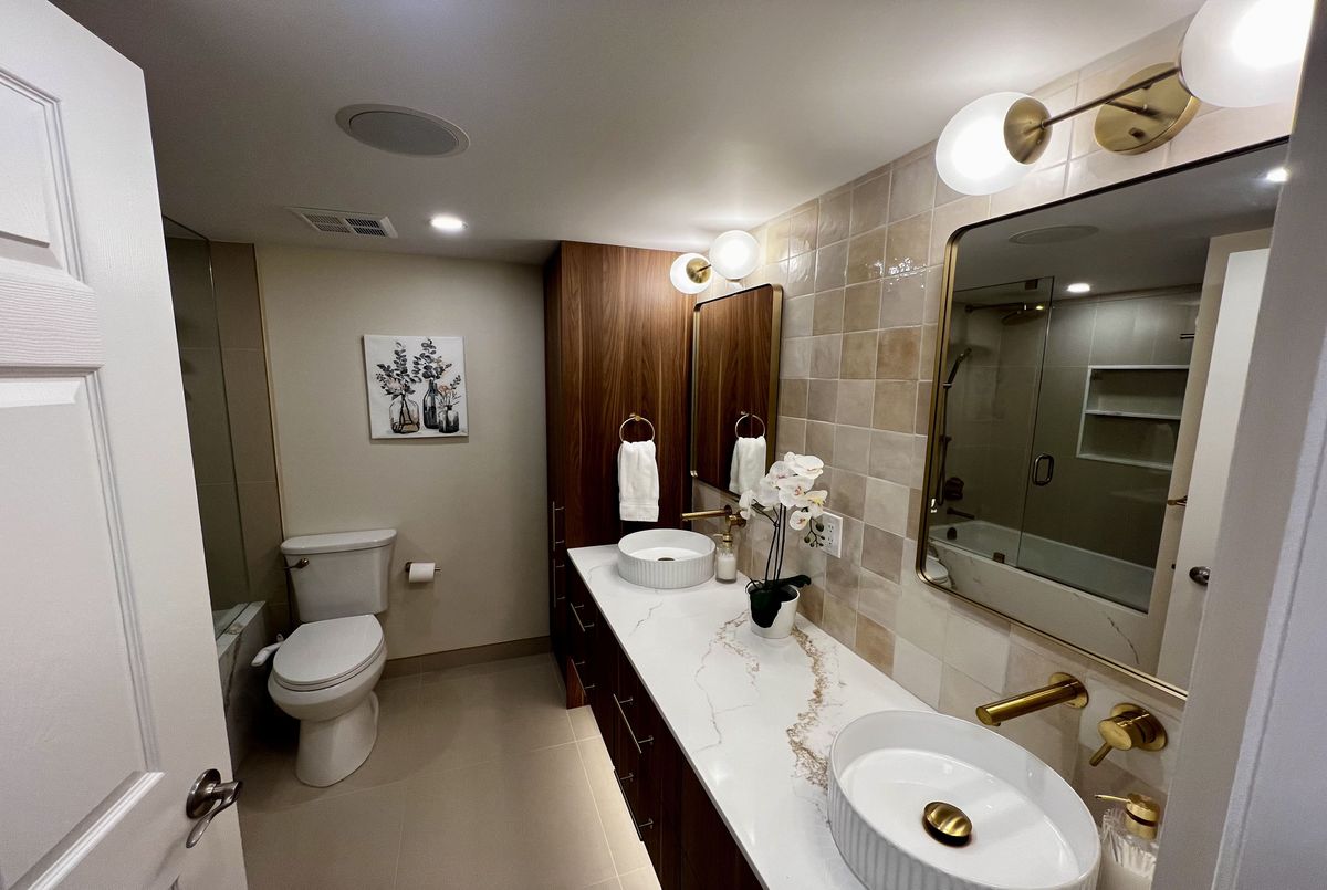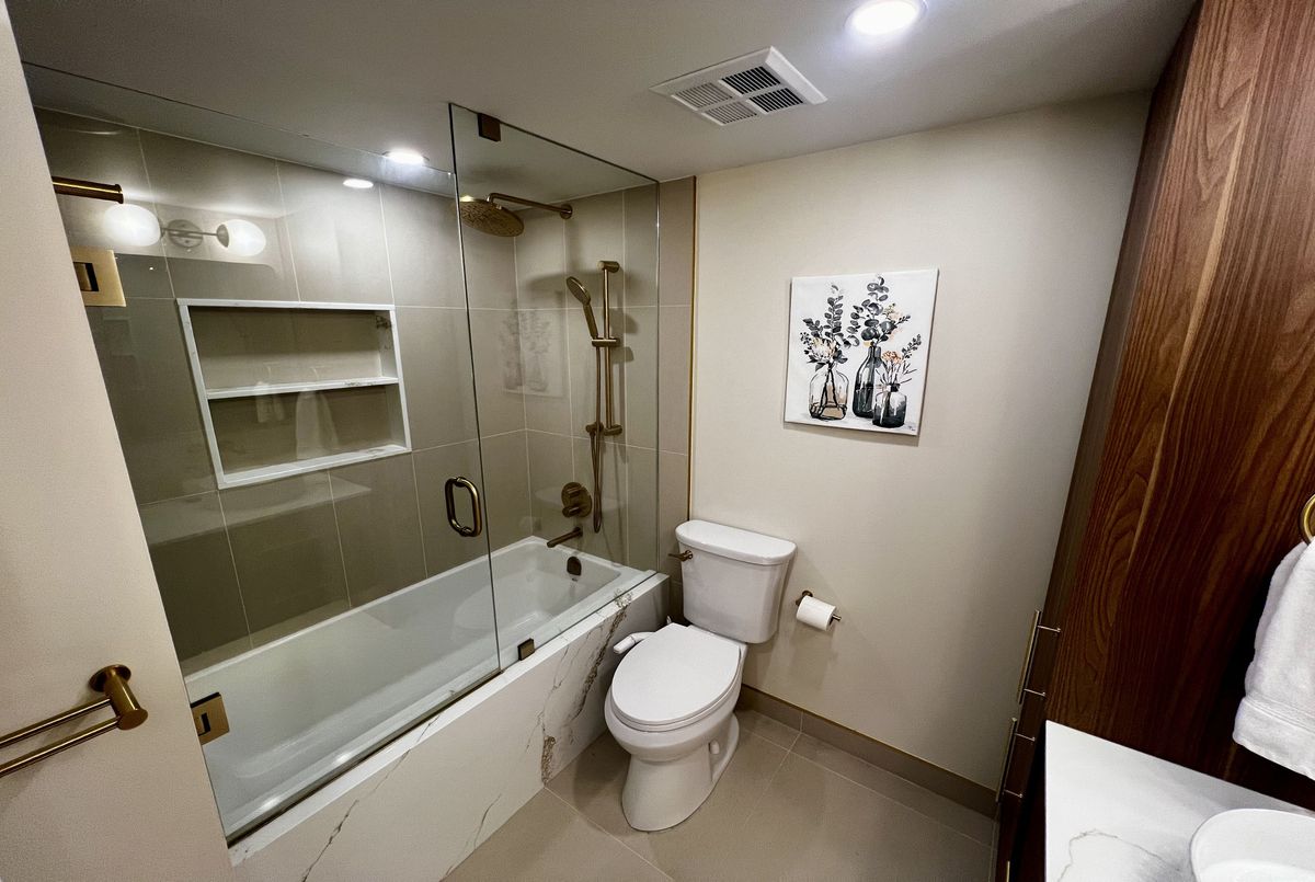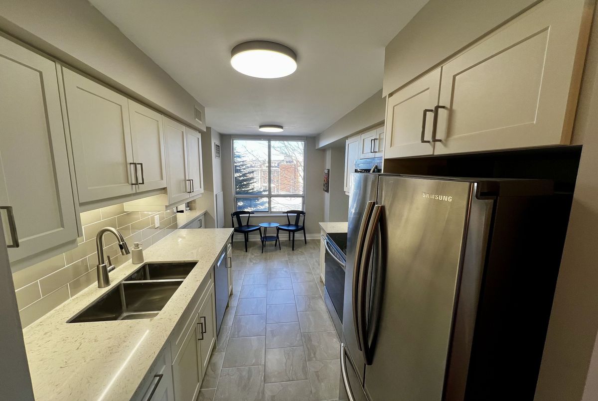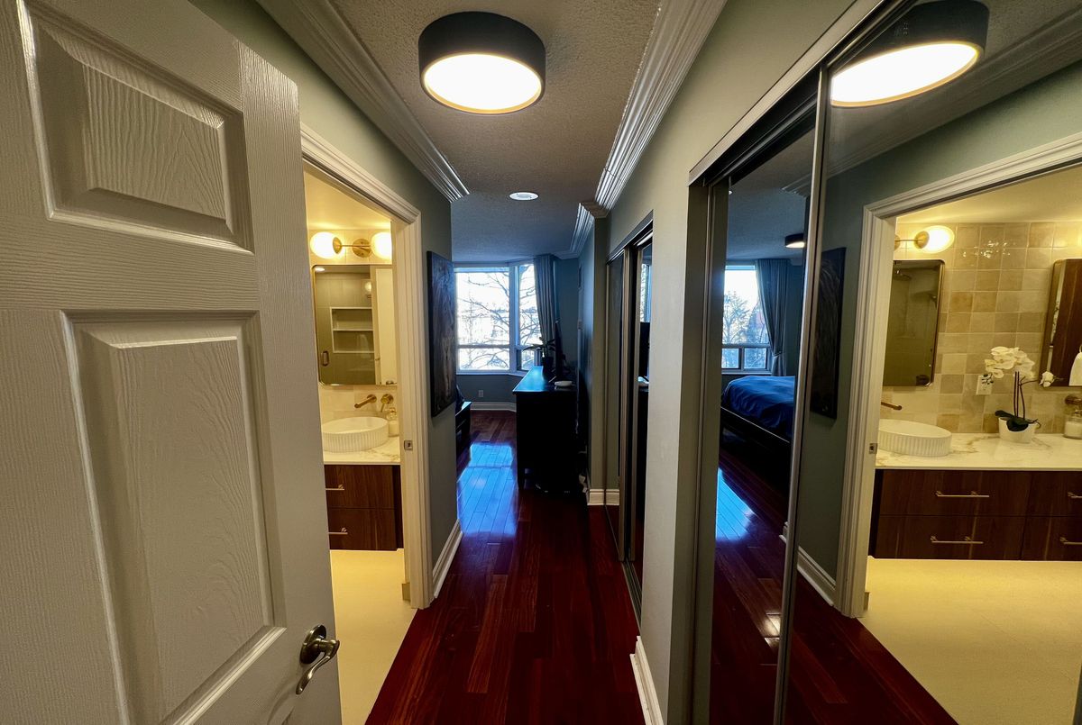 Welcome to Suite 303 at 78 Harrison Garden Blvd - a meticulously renovated residence in the prestigious Skymark Centre at Avondale where no detail has been spared. Rich hardwood floors, soaring crown moulding, and a striking stone accent wall set the tone for a home that is as sophisticated as it is inviting.The chef's kitchen has been fully reimagined with quartz countertops, custom shaker cabinetry, subway tile backsplash, and premium stainless steel appliances. Two generously sized bedrooms offer flexibility for couples, remote workers, or young families alike. The primary ensuite is a true spa retreat - double vessel sinks, brushed gold fixtures, quartz counters, and a glass-enclosed soaker tub with rain shower.Oversized windows flood every room with natural light throughout the day, while the custom built-in shelving wall adds both function and architectural elegance to the living space.Beyond your front door, Skymark Centre delivers resort-style living: a grand two-storey lobby, fully equipped gym, indoor pool, library, bowling alley, golf simulator, and more. All of this, steps from transit, parks, and everyday conveniences.Truly turnkey. Simply unforgettable.