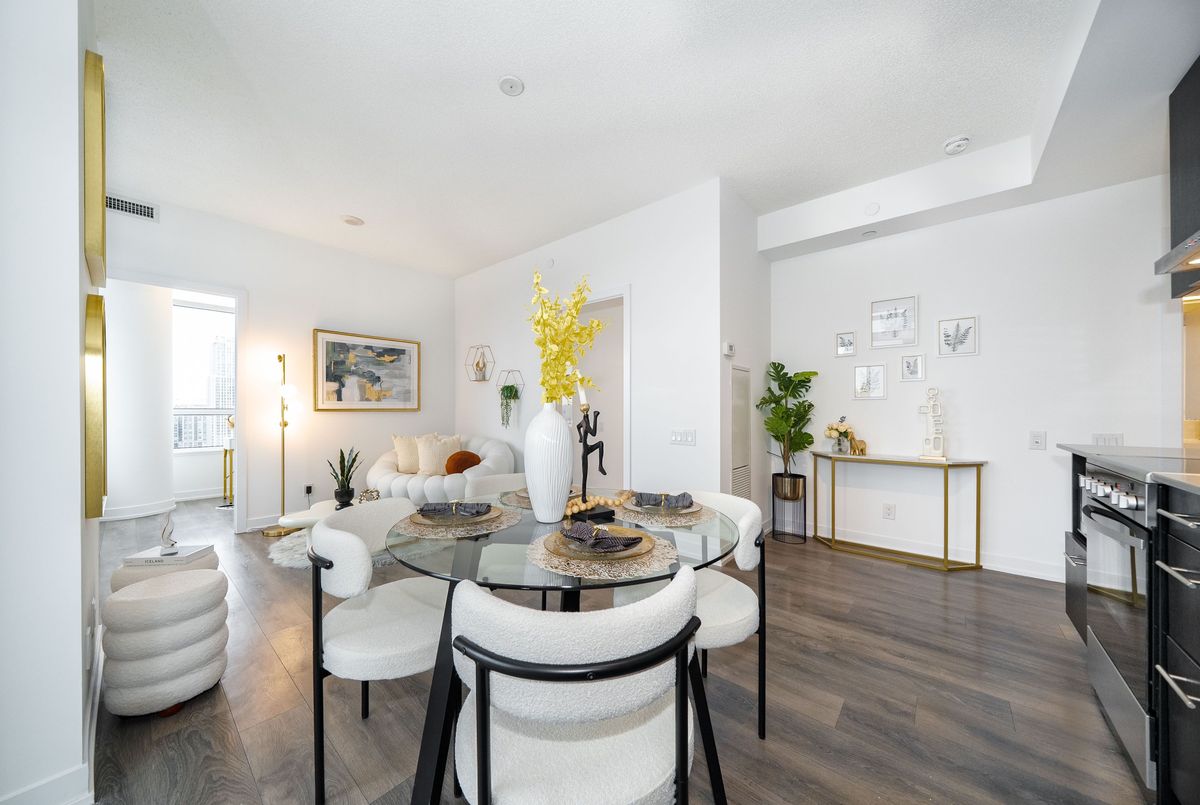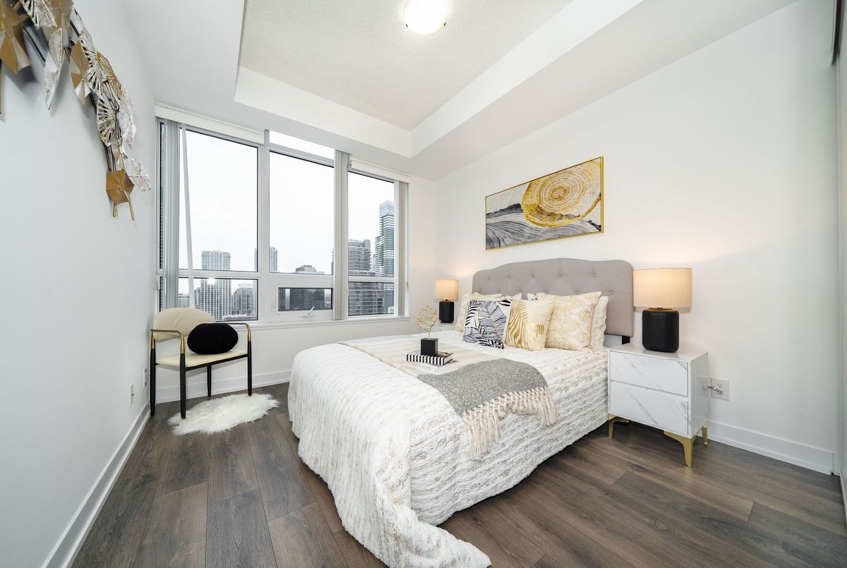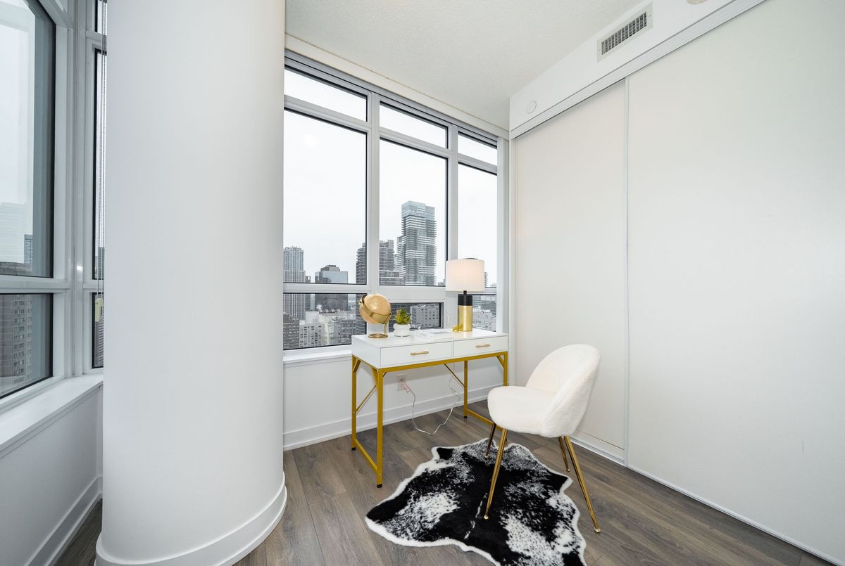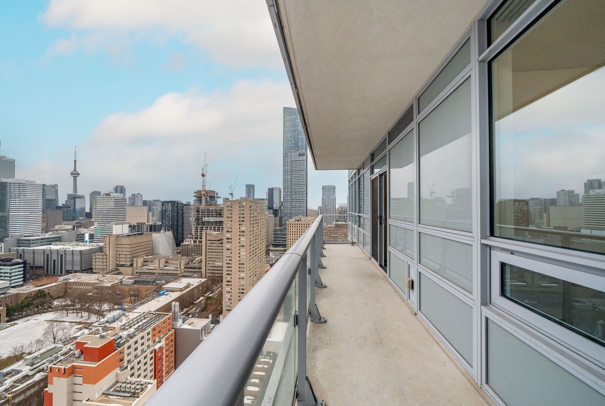 Bright 2 + 1 Corner Unit with Panoramic Southwest & CN Tower Views! This like-new, freshly painted unit boasts a very efficient layout with 2+1 bedrooms, 2 baths, and a DEN CAN BE 3RD BEDROOM or OFFICE with LARGE WINDOWS, door & closet-a huge upgrade from the builder. Every room has windows, filling the home with natural light. Enjoy panoramic skyline views from the large balcony, and hardwood floors throughout complete this stunning space. Locker included. Amenities: rooftop BBQ, rooftop lounge, party room, theatre, yoga & TV rooms, gym, study, guest suites, pet wash, 24-hr concierge. Steps from Yonge & Dundas, TTC (College Subway & Carlton), restaurants, shops, Loblaws, LCBO, Toronto Metropolitan U, University of Toronto. A must-see unit perfect for owners or investors seeking style, convenience, and spectacular city views.