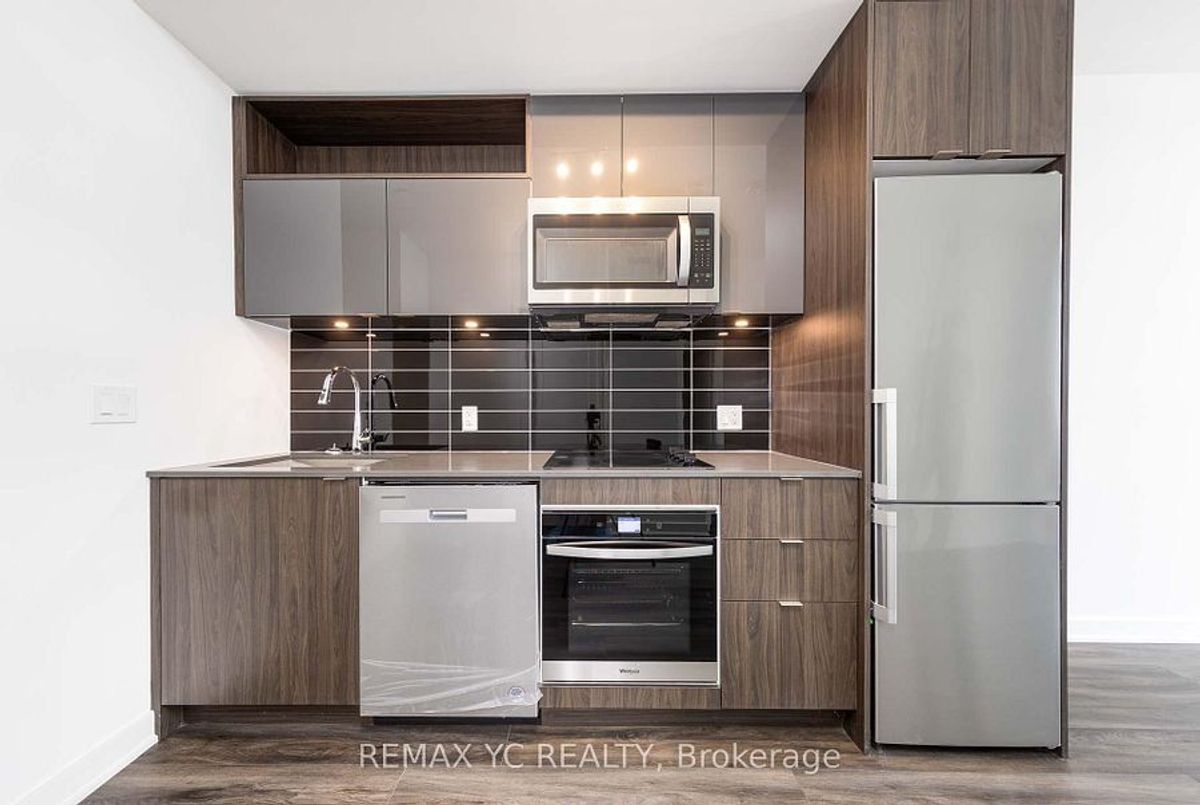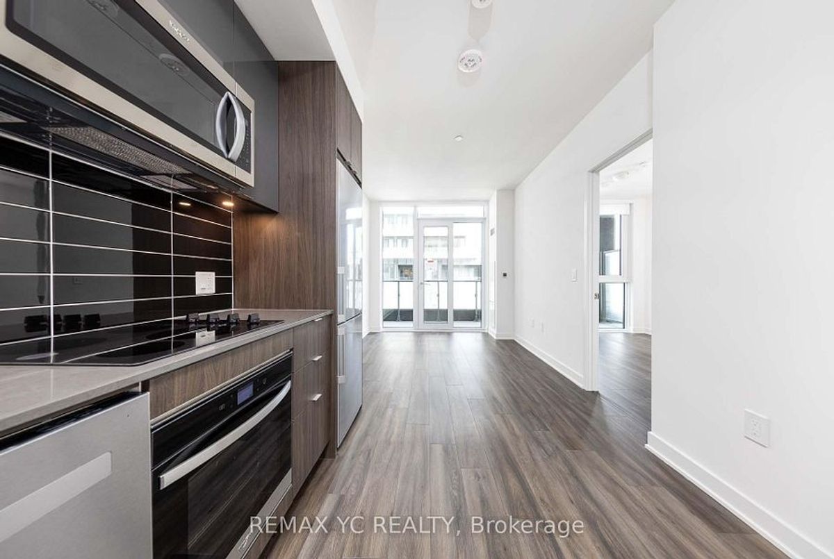 Presenting a suite located in one of Toronto's desirable, locally built neighborhoods. This contemporary suite features 9-foot ceilings and sleek laminate flooring throughout, creating an open and airy atmosphere. The well-designed layout includes a separate kitchen and living area, with the living room offering a walk-out to a private balcony, perfect for outdoor relaxation. The kitchen is equipped with built-in appliances and a stylish granite countertop, ideal for modern living. The spacious primary bedroom is highlighted by a large window and a generously sized closet. A versatile den, enclosed with a door, offers the flexibility to be used as a second bedroom or a home office. Every inch of this unit has been thoughtfully designed to maximize space, with no wasted corners or unused areas. Situated in a charming neighborhood, you're just steps away from St. Lawrence Market (with Phase 2 opening soon), grocery stores (No Frills), shops, restaurants, and the Distillery District. With quick access to the Downtown Core, DVP, and TTC, convenience is at your doorstep. This unit is truly move-in ready, offering an ideal blend of modern design and a prime location.
