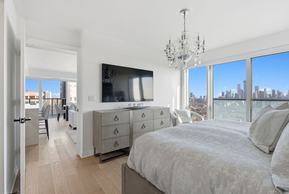 Experience an unparalleled standard of urban living in this meticulously upgraded 1,190 sq. ft. corner suite, featuring highly coveted 2-car underground parking. Positioned to capture breathtaking, unobstructed South-East views of the Toronto skyline and Lake Ontario. The expansive open-concept floor plan is anchored by a chef's kitchen featuring a 10.5-foot waterfall island in premium quartz, integrated Bosch appliances and a dedicated wine fridge-perfect for the urban entertainer. The primary bedroom with juliette balcony boasts a spacious walk-in closet and a spa-inspired ensuite finished with quartz tiling and a European-style shower. The second bedroom/office has a built-in double desk with a walk-out to the 153 sq ft. balcony. You will come home to a well-maintained and managed building with a hotel-like lobby and lounge area, and enjoy over 20,000 sq. ft. of world-class amenities at Imperial Club via underground access (indoor pool, fully-equipped gym, steam room, jacuzzi, media room, games room, basketball/squash court, etc.) and to Longo's, LCBO, and Starbucks- luxury convenience at its finest. Public transit, restaurants, coffee shops and boutiques at Yonge/St. Clair, Summerhill and Yorkville are a short walk away. Whether you are a busy executive seeking a seamless pied-à-terre or a downsizer transitioning from Forest Hill, Rosedale, Lawrence Park or Hoggs Hollow, this residence offers the security, style, and "lock-and-leave" convenience you need. **Storage locker and 2 parking spots side by side close to the elevator**