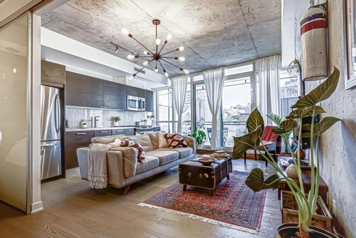 Welcome to boutique urban living in one of Toronto's most vibrant east-end neighbourhoods. This stylish 1-bedroom residence offers the perfect blend of modern comfort, character, and convenience, all within walking distance of the Distillery District, St. Lawrence Market, and some of the city's best restaurants, cafés, and shops. Inside, you'll find a bright and airy open-concept layout featuring sleek flooring, soaring concrete ceilings, and expansive floor-to-ceiling windows that fill the space with natural light throughout the day. The contemporary kitchen is equipped with full-sized stainless steel appliances, including a gas stove, stone countertops, and ample cabinet space-perfect for both everyday living and entertaining. The spacious bedroom features custom wood accent wall detailing and unique statement lighting, creating a warm and stylish retreat. It also includes a large closet offering excellent storage space and generous windows that allow natural light to flow through the room. The modern bathroom features clean finishes and thoughtful design, while additional conveniences include in-suite laundry and functional storage throughout the unit. Located in a highly desirable boutique building, residents enjoy easy access to transit, the King streetcar at your doorstep, and the future Ontario Line station just steps away, making commuting across the city effortless.