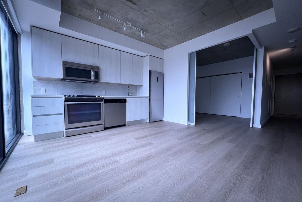 Live in the Heart of King West OneEleven Condos | 111 Bathurst St. Step into modern urban living with this stylish 1-bedroom suite at the sought-after OneEleven Condos. Featuring 9-foot exposed concrete ceilings, floor-to-ceiling windows with a breathtaking city view, and a sleek open-concept layout, this freshly renovated unit offers a perfect blend of contemporary design and comfort. Modern kitchen is equipped with quartz countertops and premium appliances. Top-tier building amenities include rooftop terrace, 24-hour concierge, party room...Located in one of Toronto's most desired neighbourhoods - just steps to King & Queen West. Walk to The Well, Stackt Market, University of Toronto, and some of the city's best dining, nightlife, and shopping. Walk Score: 100 | Transit Score: 100 - everything you need is at your doorstep.