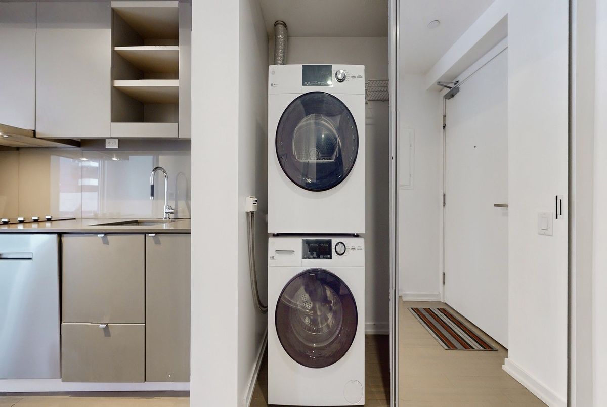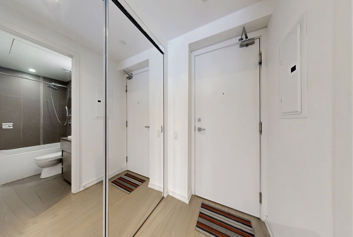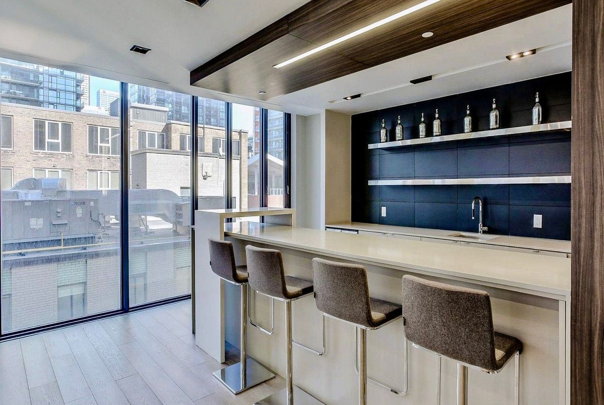 Stunning 1-bedroom, 1-bathroom suite at the elegant 101 Peter Street Condos, offering the perfect blend of modern design, comfort, and unbeatable downtown convenience. Enjoy bright eastern city views, 9-foot ceilings, and floor-to-ceiling windows with contemporary roller blinds for both privacy and style. The open-concept layout is complemented by a sleek kitchen featuring integrated stainless steel appliances, stone countertops, and minimalist cabinetry that balances form and function.The spa-inspired 4-piece bathroom showcases a deep soaker tub with shower, built-in vanity with ceramic sink and designer faucet, backlit mirror, and integrated medicine cabinet.Residents enjoy premium building amenities such as 24-hour concierge, state-of-the-art fitness centre, private theatre, elegant party lounge, and a guest suite for visitors. Ideally located, just steps from Toronto's most iconic destinations, including world-class restaurants, theatres, Queen West shopping, TIFF Bell Lightbox, Rogers Centre, the Financial District, and the Waterfront. TTC transit, grocery stores, and lush city parks are all nearby, making this vibrant neighbourhood ideal for professionals, investors, and lifestyle seekers alike. This Suite 1005 offers the definitive downtown lifestyle; luxurious, connected, and effortlessly stylish.