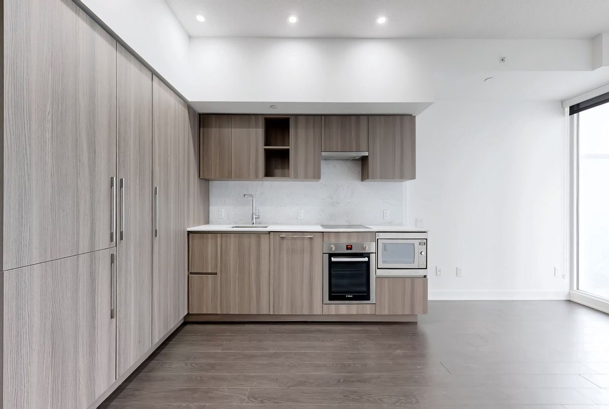 Welcome to Lakeshore luxury living at its finest. This bright and elevated 1 bedroom plus den suite offers stunning east-facing views of Lake Ontario and a clear sightline to the CN Tower. Functional open-concept layout with a modern kitchen featuring integrated high-end appliances, sleek cabinetry, and quartz countertops. Spacious den ideal for a home office. Elegant 4-piece bathroom with upgraded finishes.Enjoy access to premium amenities including 24-hour concierge, indoor pool, fully equipped gym, yoga studio, pet spa, outdoor lounge, playground, and visitor parking.Unmatched waterfront location just steps to the lake, parks, transit, and everyday essentials including Loblaws, Shoppers Drug Mart, LCBO, restaurants, and cafes. Ideal for professionals seeking convenience and lifestyle in one of Toronto's most desirable communities.
