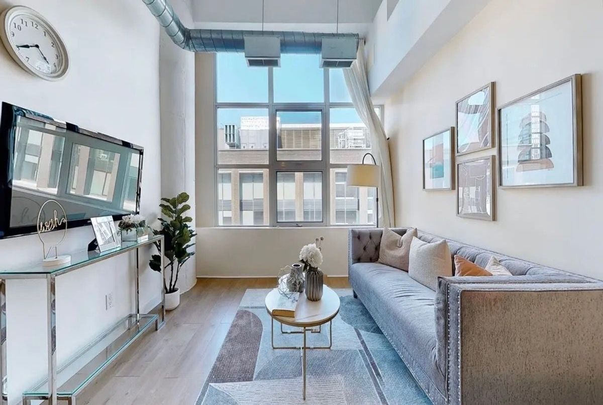 Authentic Urban Living at the Iconic Merchandise Lofts. Step into unit 926 and experience the perfect scale of industrial history and modern refinement. This oversized 1-bedroom suite (approx. 700 sq ft) commands attention with soaring 12-foot fluted concrete ceilings, exposed ductwork, and laminate floors that define true loft character. The expansive open-concept layout is anchored by a sleek, kitchen and ample cabinetry-perfect for the home chef or frequent entertainer. Located in the heart of downtown, you are steps from TMU, the Financial District, and subway access. Residents enjoy "gold standard" amenities: a 24-hour concierge, indoor pool, full gym, basketball court, and a massive rooftop terrace with BBQs and a dedicated dog walk. Includes one parking space. Your chance to own a piece of Toronto's history. Unit is not currently staged as shown in photos. Pictures reflect previous staging for illustrative purposes."