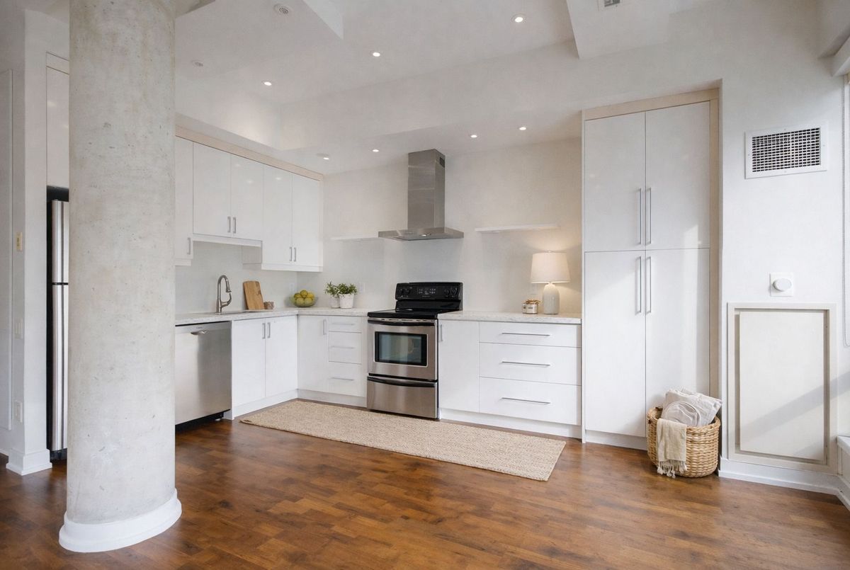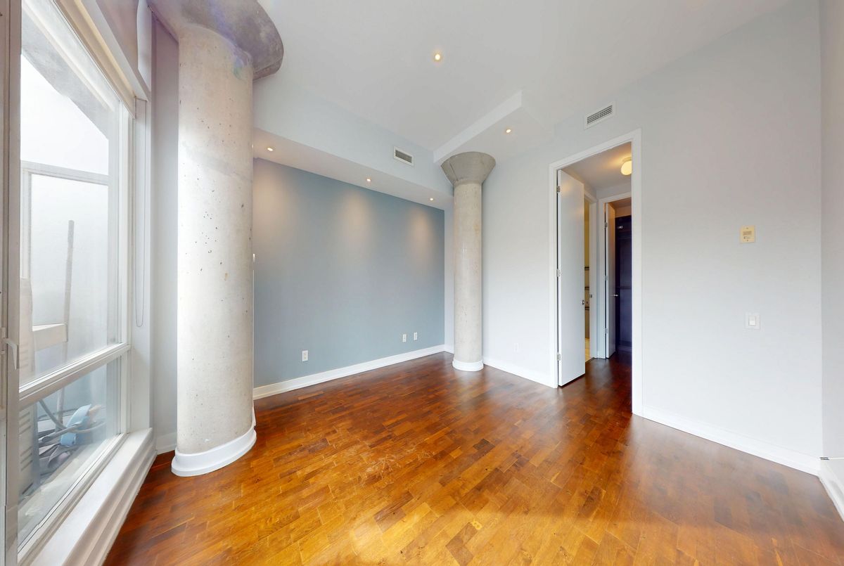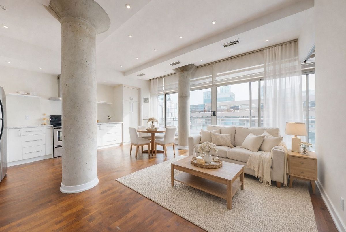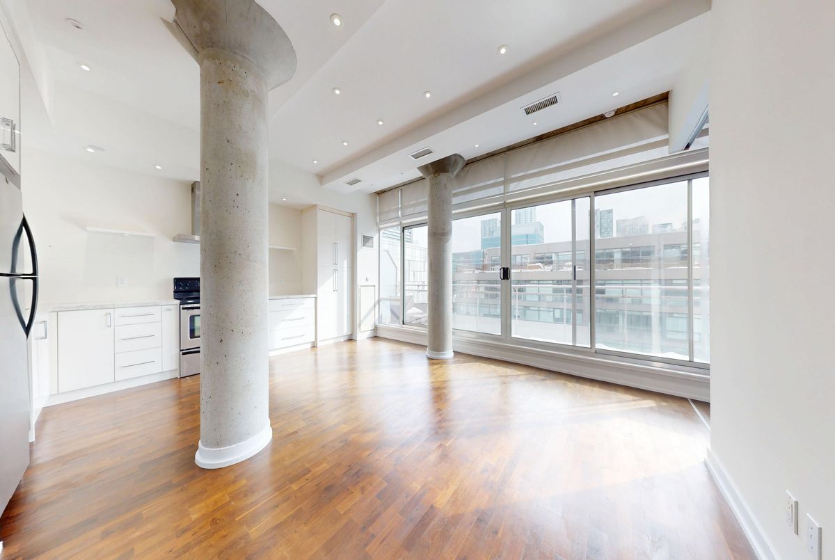 Welcome to this charming boutique loft in the heart of King West, a space designed for effortless city living with timeless character. Freshly painted and filled with warmth, this inviting suite features soaring ceilings, oversized windows, custom built-in closet inserts, and thoughtful details throughout. A locker is included, adding extra convenience and storage. Step outside onto your huge private terrace with BBQ hookup, overlooking the energy of the city, perfect for morning coffee, golden sunsets, and entertaining with friends. Just beyond your door, you're surrounded by the city's best: boutique shopping, acclaimed restaurants, cozy cafés, vibrant nightlife, and the TTC just steps away. This is a neighbourhood made for romanticizing your life, vibrant, connected, and endlessly inspiring