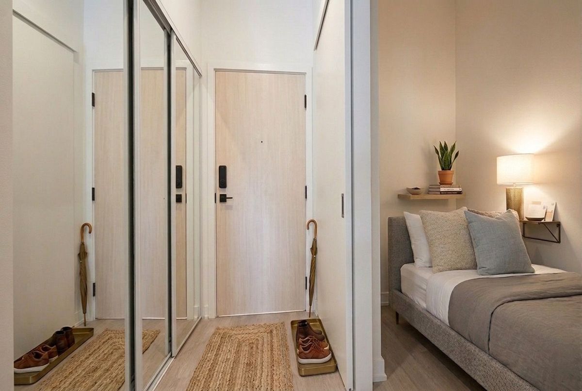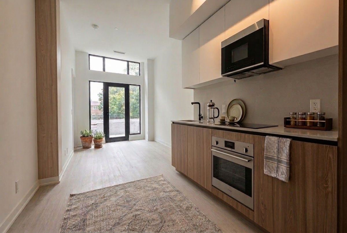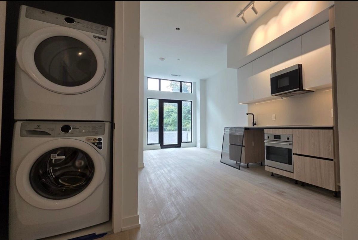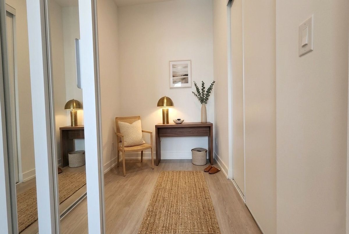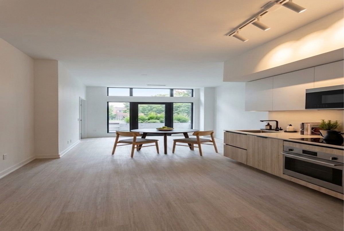 Boutique Luxury at Six99 - Available July 1st. This sophisticated suite offers a unique indoor-outdoor lifestyle with 745 sq ft of interior space and an incredible 1,428 sq ft private terrace. Features include 10' ceilings, a split-bedroom design, and a flexible den ideal for a study or guest room. Bonus: The fitness centre is located right across the unit for easy access! Includes 1 underground parking space. Dual gated entries provide the convenience of a street-level home with the security of a luxury condo. Meticulously maintained and just steps from Bessarion Station (Line 4), IKEA, and Bayview Village. Building features a 24hr concierge, co-working space, and rooftop dining.