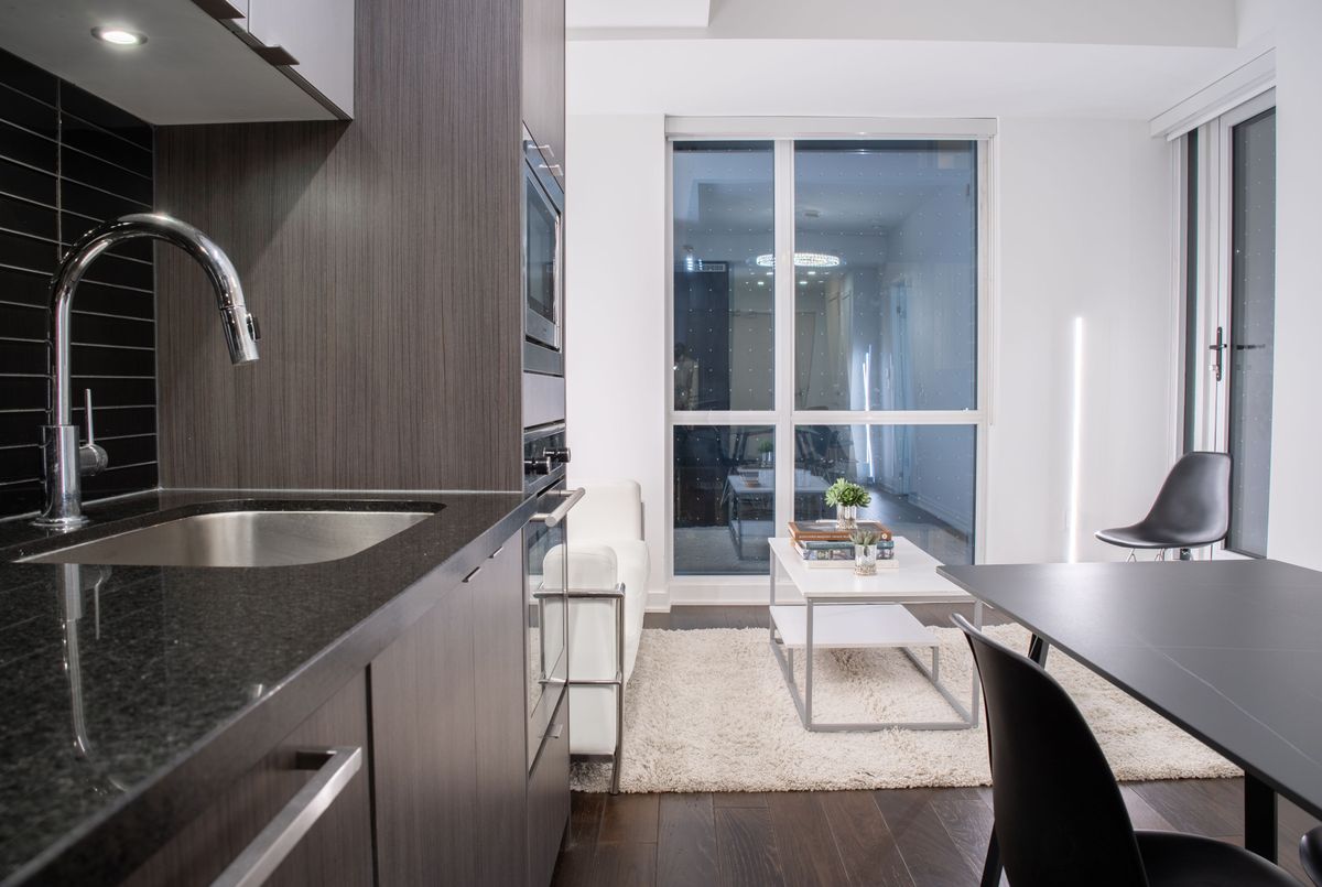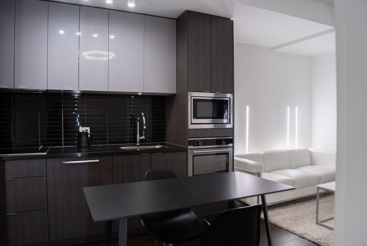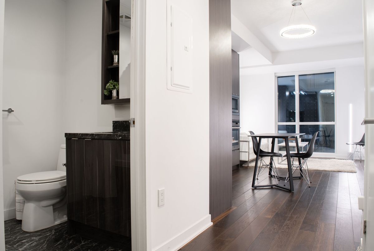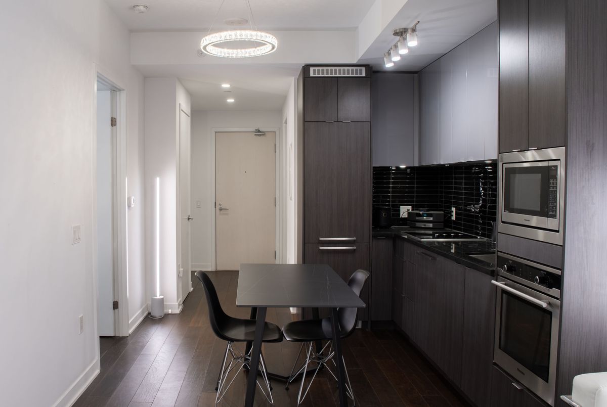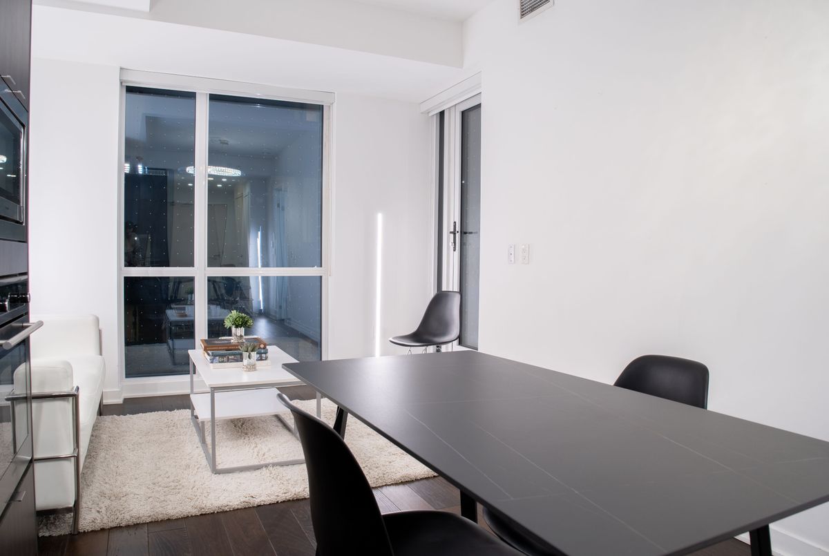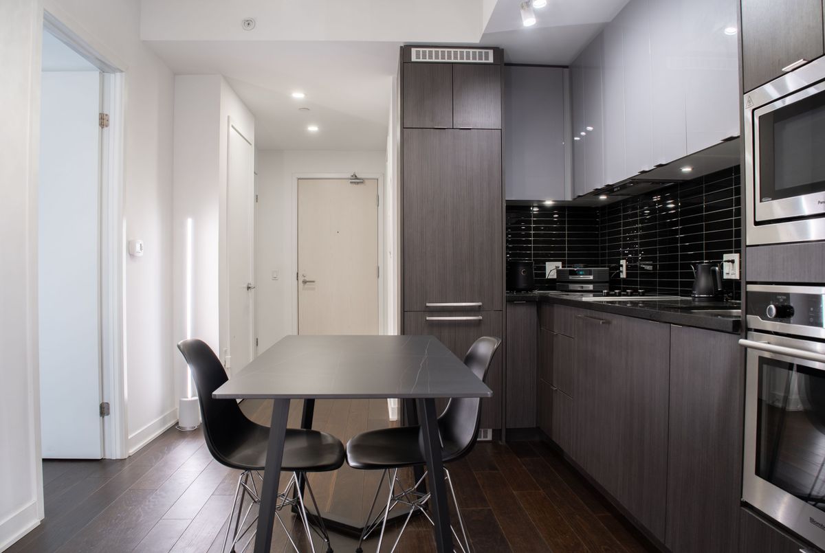 Experience upscale urban living at King Blue Condos, located in the vibrant heart of Toronto's Entertainment District. This luxury 1-bedroom suite comes fully furnished and offers 522 sq. ft. of thoughtfully designed living space with 9-ft smooth ceilings and a bright, open-concept layout that feels both stylish and comfortable. The modern kitchen features integrated appliances, sleek cabinetry and a clean contemporary design that flows seamlessly into the living area, perfect for relaxing or entertaining. The spacious bedroom includes double closets with custom roller shades for privacy, while the upgraded marble bathroom adds a touch of hotel-style elegance. Available fully furnished, this suite is move-in ready, offering comfort and convenience from day one. Enjoy premium amenities including a 24-hour concierge, fitness club with indoor pool, rooftop terrace with BBQ area, party room, guest suites and more. Located steps to TIFF Bell Lightbox, CN Tower, PATH, restaurants, theatres, Waterfront and the Financial District, with the TTC at your doorstep, this location truly connects you to the best of city living.