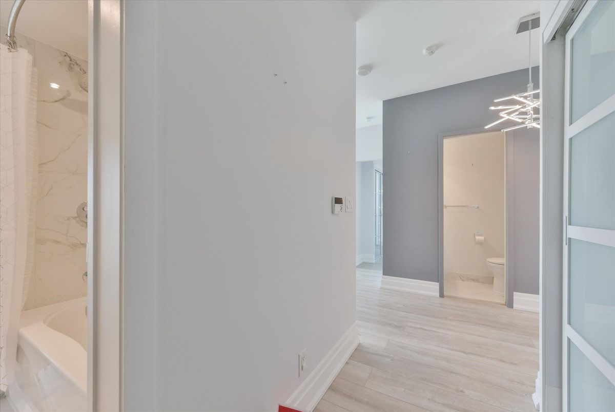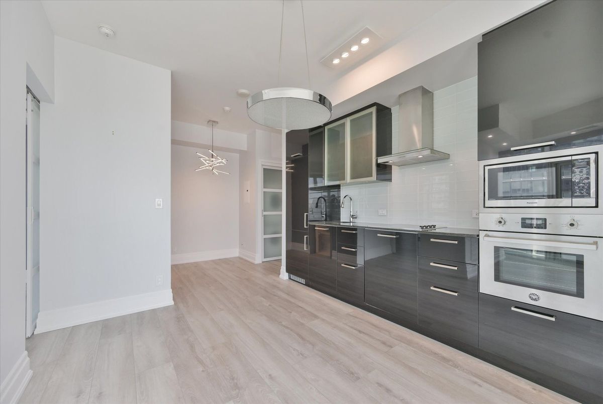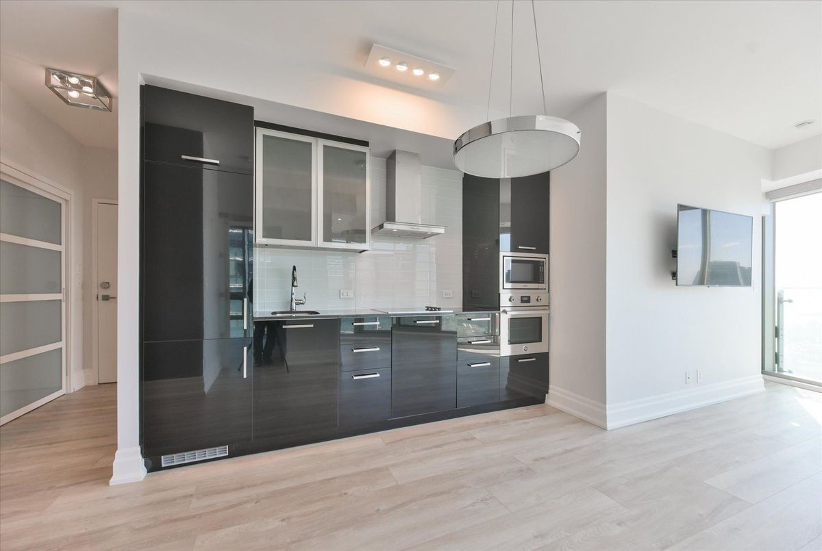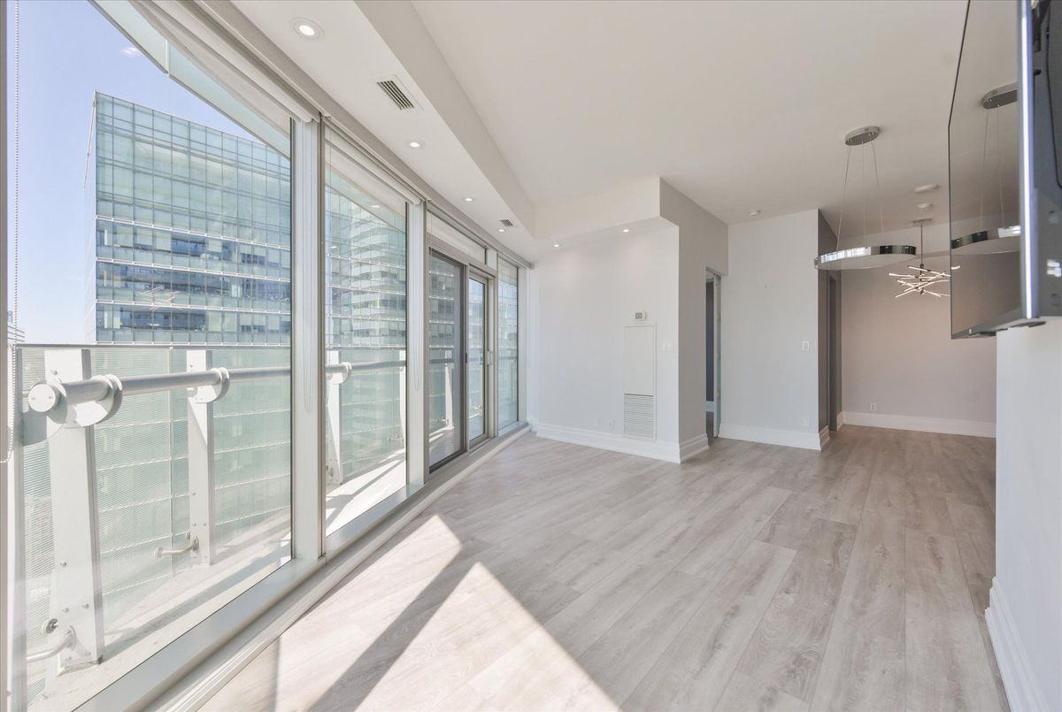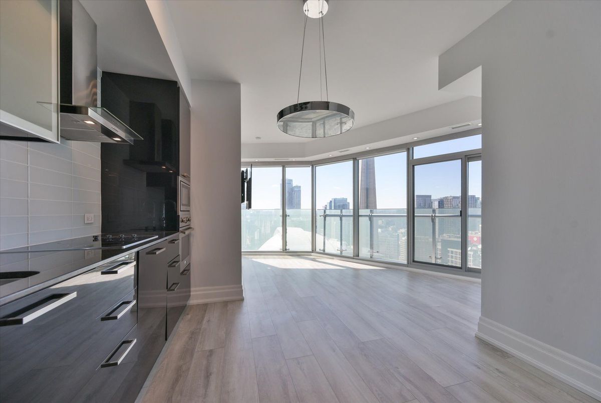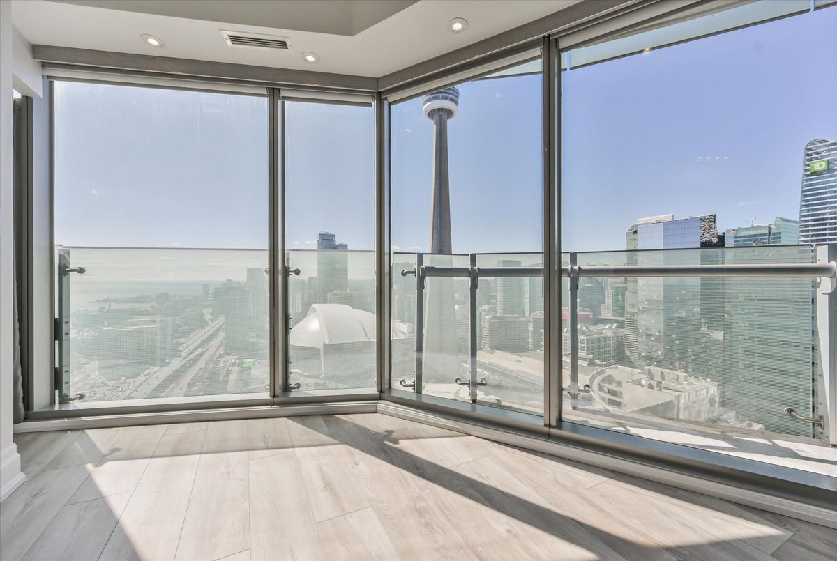 Welcome to the iconic ICE Condos in the heart of Downtown Toronto! This spectacular, renovated 715 sq. ft. suite offers the ultimate luxury urban rental experience. Perched high on the 40th floor, the unit boasts breathtaking, unobstructed panoramic views of the CN Tower, city skyline, and Lake Ontario through expansive, wrap-around floor-to-ceiling windows. This pristine suite features beautiful recent upgrades, including gorgeous light wood-tone flooring throughout that maximizes the abundant natural light. The modern, open-concept kitchen features sleek dark gloss cabinetry, frosted glass uppers, and integrated stainless steel appliances. The spacious bedroom boasts a chic accent wall, double closets with frosted sliding doors, and its own direct walk-out access to the balcony. Relax in the spa-inspired bathroom, complete with elegant marble-veined tiling and premium fixtures. Convenient in-suite, full-sized Blomberg laundry is also included. Enjoy an unbeatable location with a direct connection to the underground PATH network-walk indoors to Union Station, Scotiabank Arena, Maple Leaf Square, and Longo's supermarket! Just steps to the Harbourfront, Rogers Centre, Financial District, and world-class dining. Residents enjoy premium five-star building amenities including a state-of-the-art fitness center, indoor pool, hot tub, party room, lounge, and 24-hour concierge. Don't miss this rare opportunity to live in a highly sought-after unit with Toronto's most famous views right at your window!