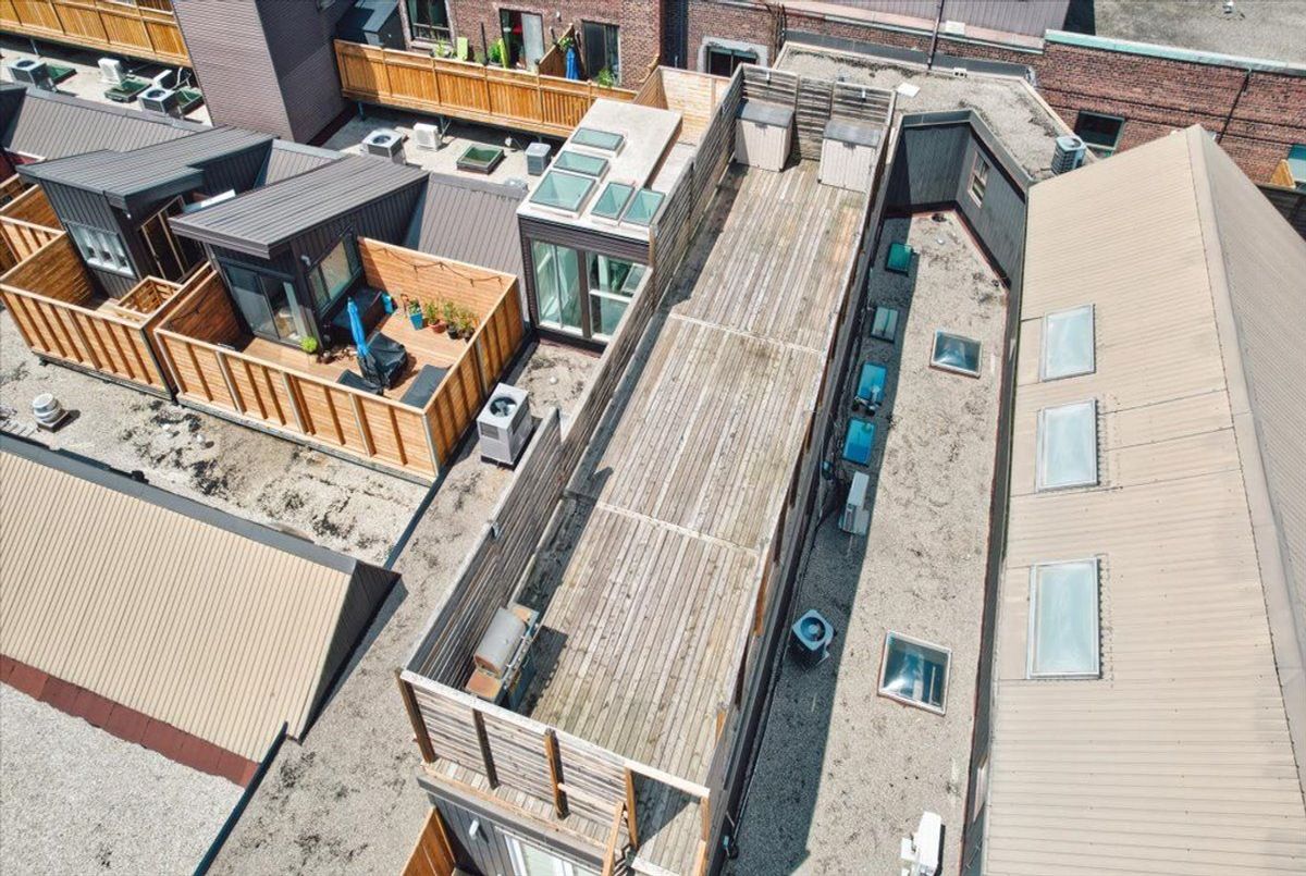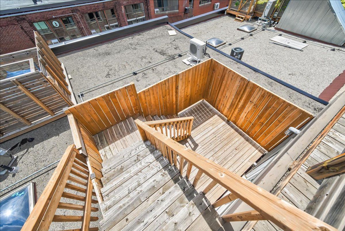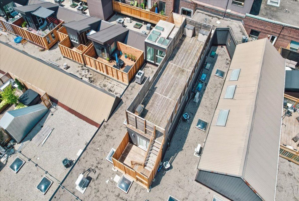 Designed for the doers, dreamers, and disruptors - this iconic Leslieville loft delivers bold design and unbeatable outdoor space in one of Toronto's most sought-after live/work buildings. Perched atop the famed i-Zone development, this rare loft redefines urban living with over 1,100sf of sun-drenched, open-concept interior space and designer upgrades throughout. But the true showstopper? A massive private rooftop terrace with sweeping skyline views. Your personal retreat in the heart of the city. Whether you're hosting unforgettable rooftop dinners, working under the open sky, or relaxing with a book at sunset, this space sets a new standard for indoor-outdoor living. Plus, a second terrace off the primary bedroom offers even more private outdoor space. Inside, every detail has been elevated: 4-piece stainless steel appliance package with industrial-grade fridge and temperature-controlled wine storage, granite countertops with centre island, high-end grey wood laminate flooring, pot lights, Edson bulb fixtures, 3 individually controlled AC units, and a sleek built-in speaker system, custom iron radiant heat boxes, French doors, large closets, new custom doors, and California shutters round out the experience. Set in the vibrant heart of Leslieville, steps from Queen East and public transit and minutes to Lake Ontario, Gardiner Expressway and the DVP, this unit is fully connected to the city and offers the perfect blend of energy and escape. A dream for creatives, entrepreneurs, and anyone craving something truly original. This isn't just a condo, it's a statement. A rare opportunity to own one of Toronto's most distinctive lofts, complete with a skyline view you'll never get tired of. Includes 1 Underground Parking.