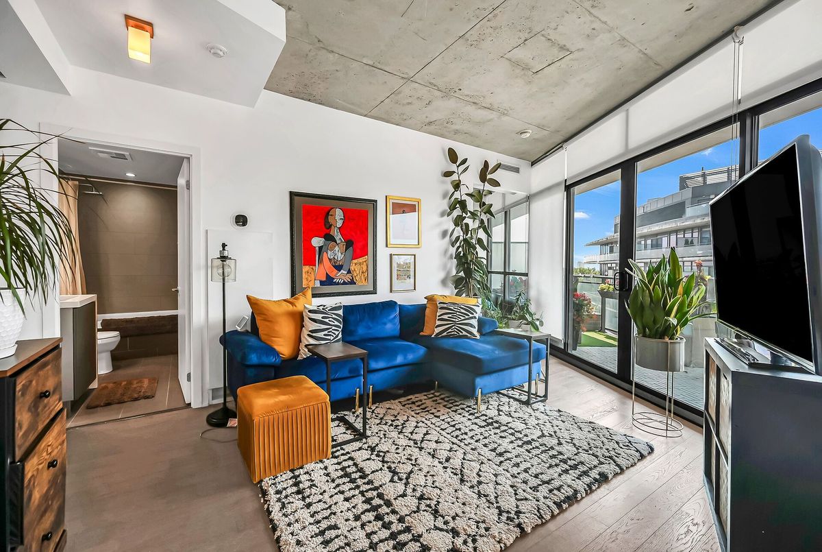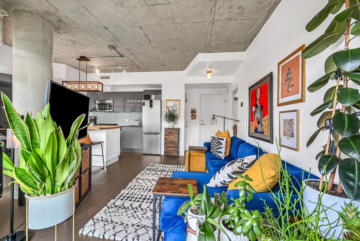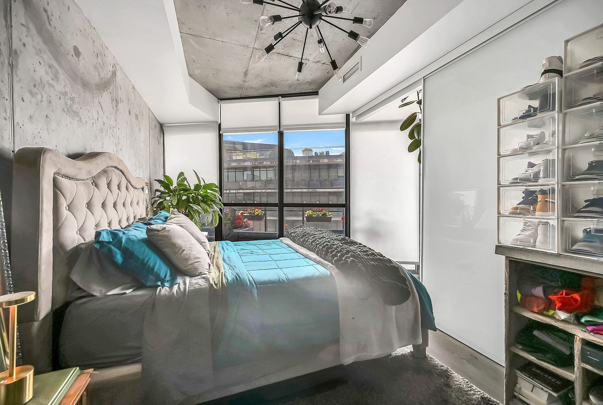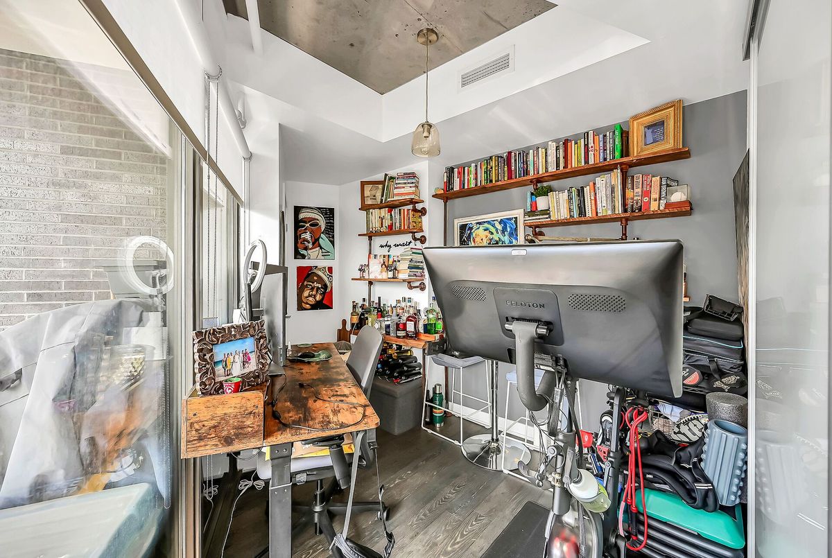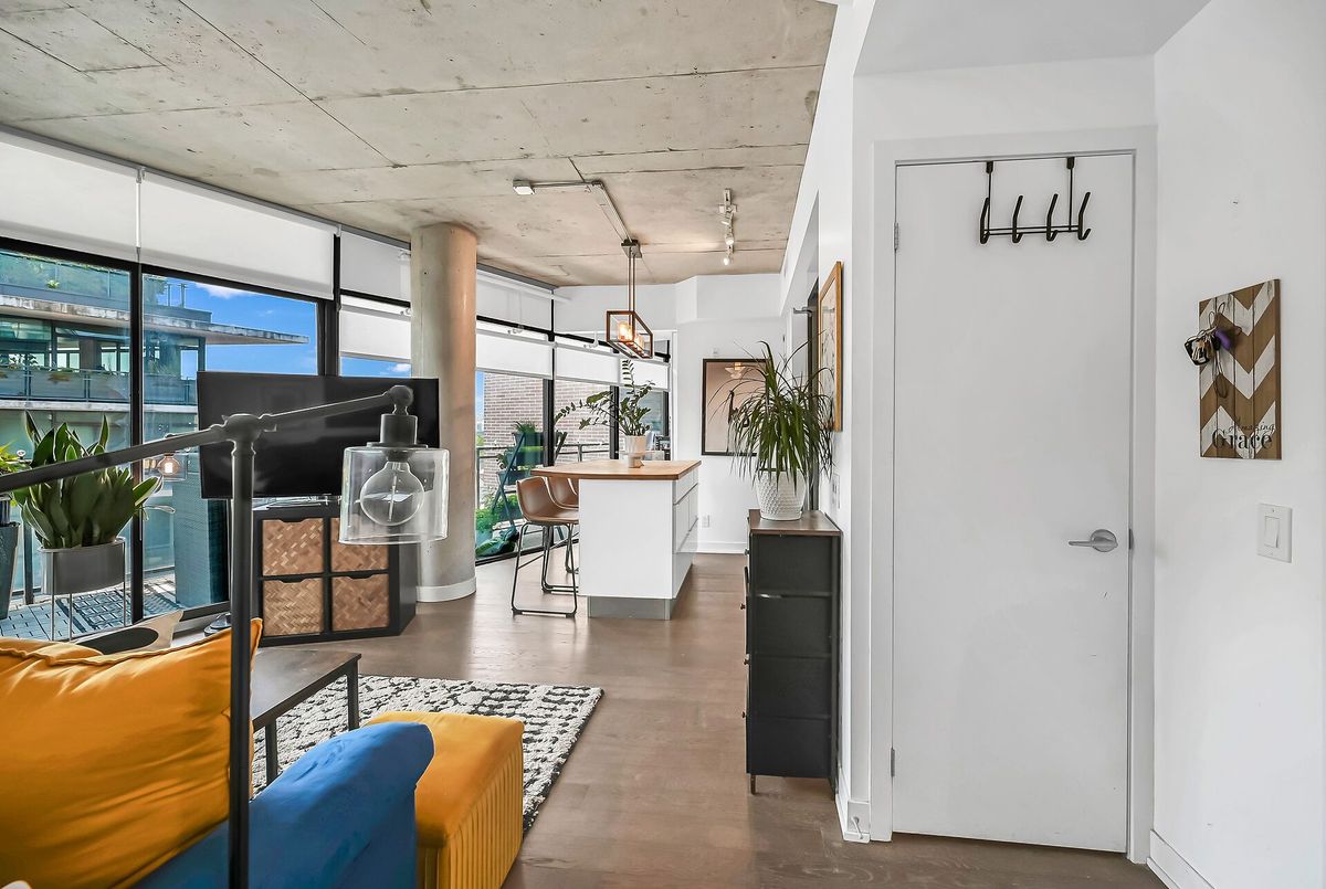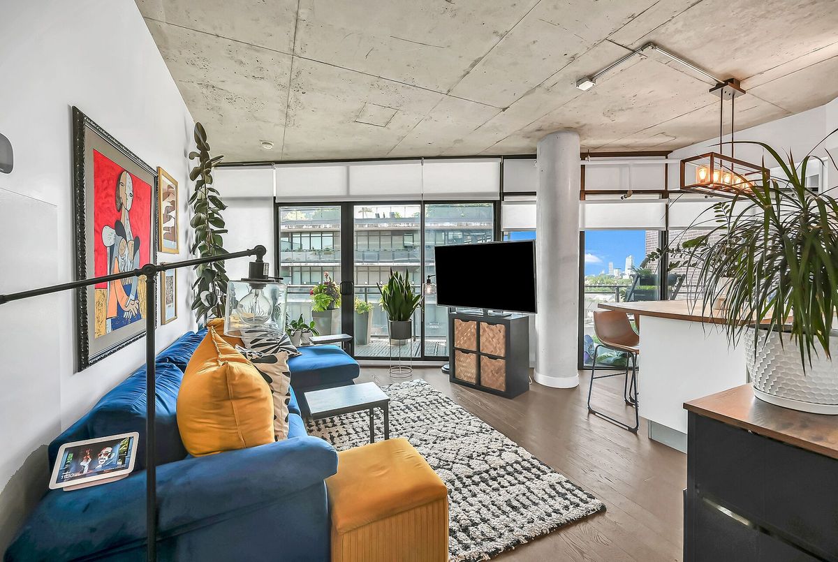 Welcome to Suite 902 at the Flat Iron Lofts! Where modern design meets the charm of Leslieville living.This bright and spacious 1 bedroom plus den, 1-bath corner unit offers a thoughtfully designed living space, perfect forprofessionals, couples, or anyone seeking an inspired urban lifestyle. With floor-to-ceiling windows lining thesouth-facing wall, natural light pours in throughout the day, creating a warm and inviting atmosphere.The open-concept layout features exposed concrete ceilings, wide-plank hardwood flooring, and clean modern finishesthat blend industrial character with contemporary style. The sleek kitchen comes equipped with full-sized stainless steelappliances, stone countertops, and plenty of storage, ideal for entertaining or everyday living.One of the true highlights of this suite is the expansive private balcony, which acts as a true extension of your livingspace. With a built-in gas BBQ hookup, its the perfect place to unwind with a glass of wine, host summer dinners, orsimply enjoy the stunning city views and spectacular sunsets over downtown Toronto.As a resident, you'll also have access to an incredible rooftop terrace with panoramic skyline views.Located in the heart of Leslieville, you're just steps from parks, transit, and some of the best cafes, restaurants, andshops in the city along Queen East and Gerrard. Whether its weekend brunch, boutique shopping, or an early morningespresso, everything you love about the neighbourhood is right outside your door.Suite 902 is more than just a condo, it's a lifestyle.