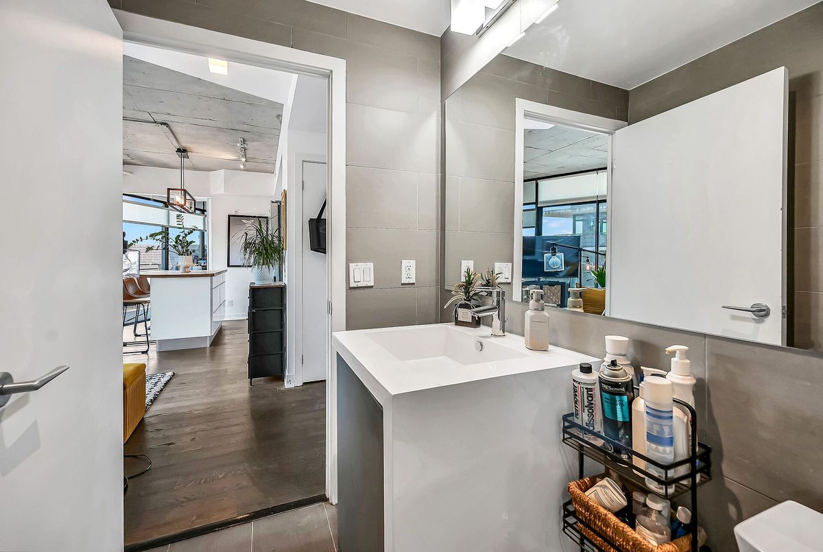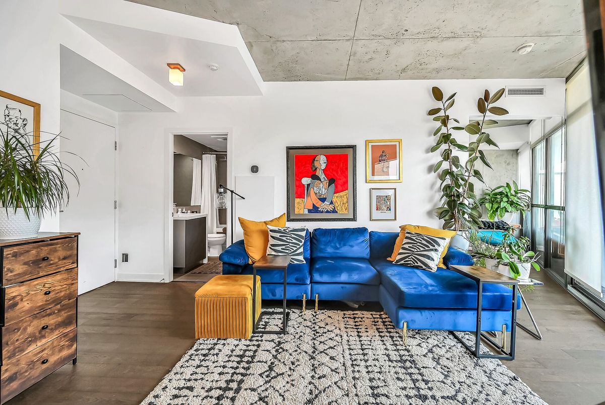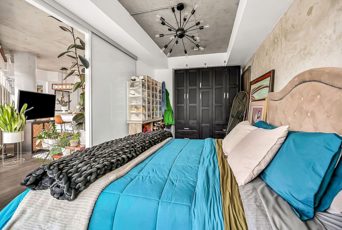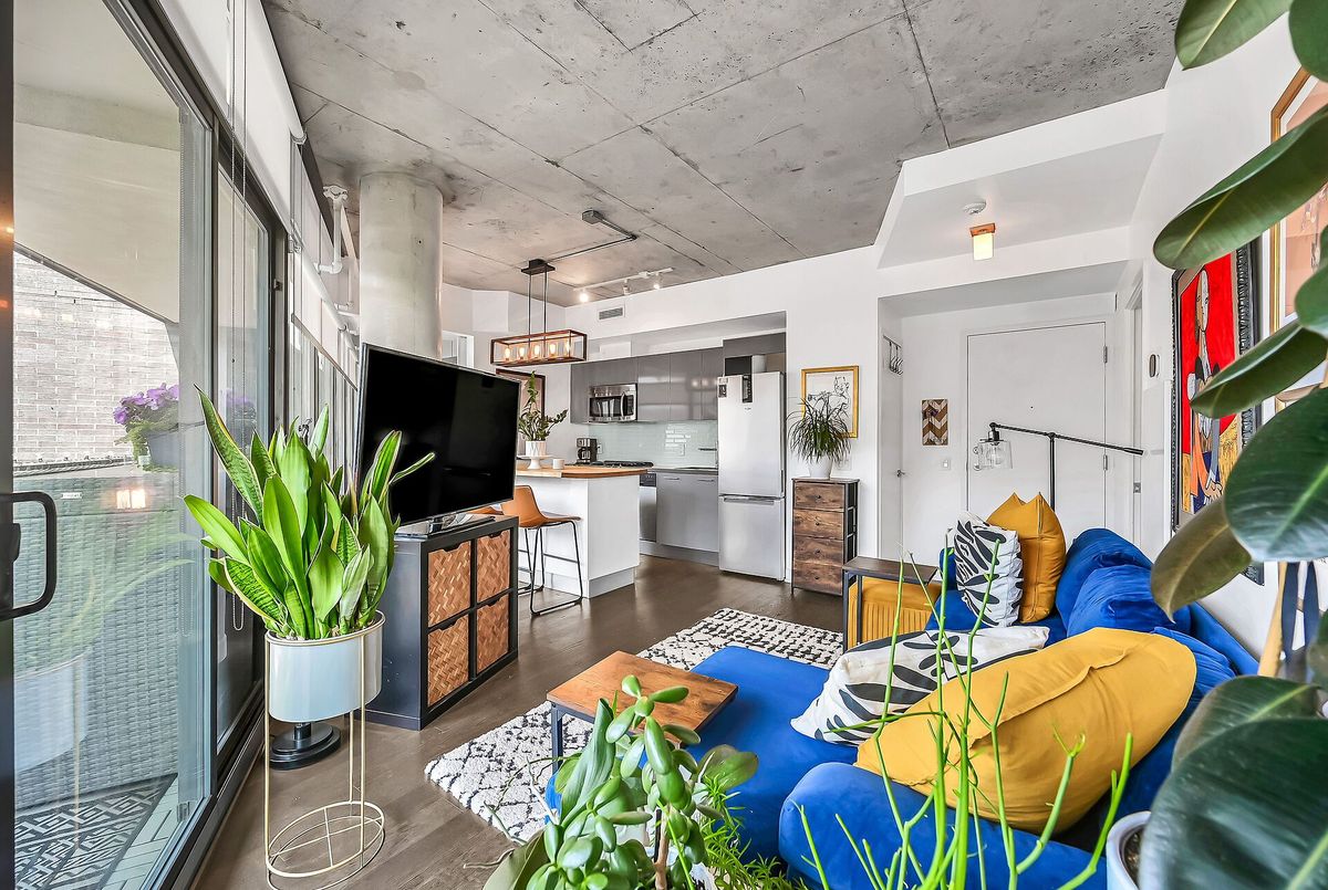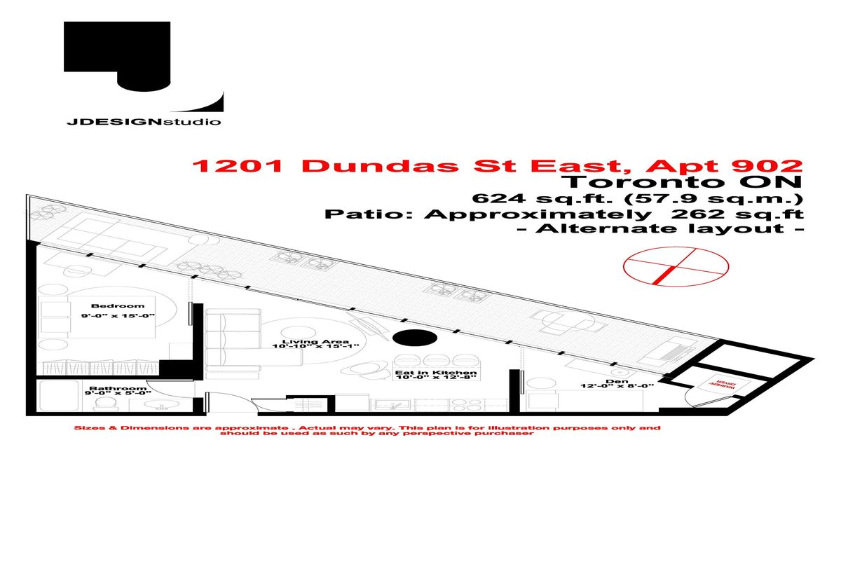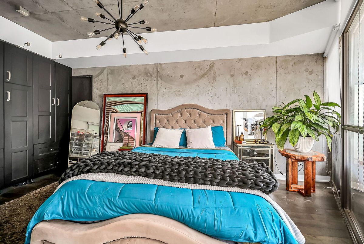 Welcome to Suite 902 at the Flat Iron Lofts! Where modern design meets the charm of Leslieville living.This bright and spacious 1 bedroom plus den, 1-bath corner unit offers a thoughtfully designed living space, perfect forprofessionals, couples, or anyone seeking an inspired urban lifestyle. With floor-to-ceiling windows lining thesouth-facing wall, natural light pours in throughout the day, creating a warm and inviting atmosphere.The open-concept layout features exposed concrete ceilings, wide-plank hardwood flooring, and clean modern finishesthat blend industrial character with contemporary style. The sleek kitchen comes equipped with full-sized stainless steelappliances, stone countertops, and plenty of storage, ideal for entertaining or everyday living.One of the true highlights of this suite is the expansive private balcony, which acts as a true extension of your livingspace. With a built-in gas BBQ hookup, its the perfect place to unwind with a glass of wine, host summer dinners, orsimply enjoy the stunning city views and spectacular sunsets over downtown Toronto.As a resident, you'll also have access to an incredible rooftop terrace with panoramic skyline views.Located in the heart of Leslieville, you're just steps from parks, transit, and some of the best cafes, restaurants, andshops in the city along Queen East and Gerrard. Whether its weekend brunch, boutique shopping, or an early morningespresso, everything you love about the neighbourhood is right outside your door.Suite 902 is more than just a condo, it's a lifestyle.