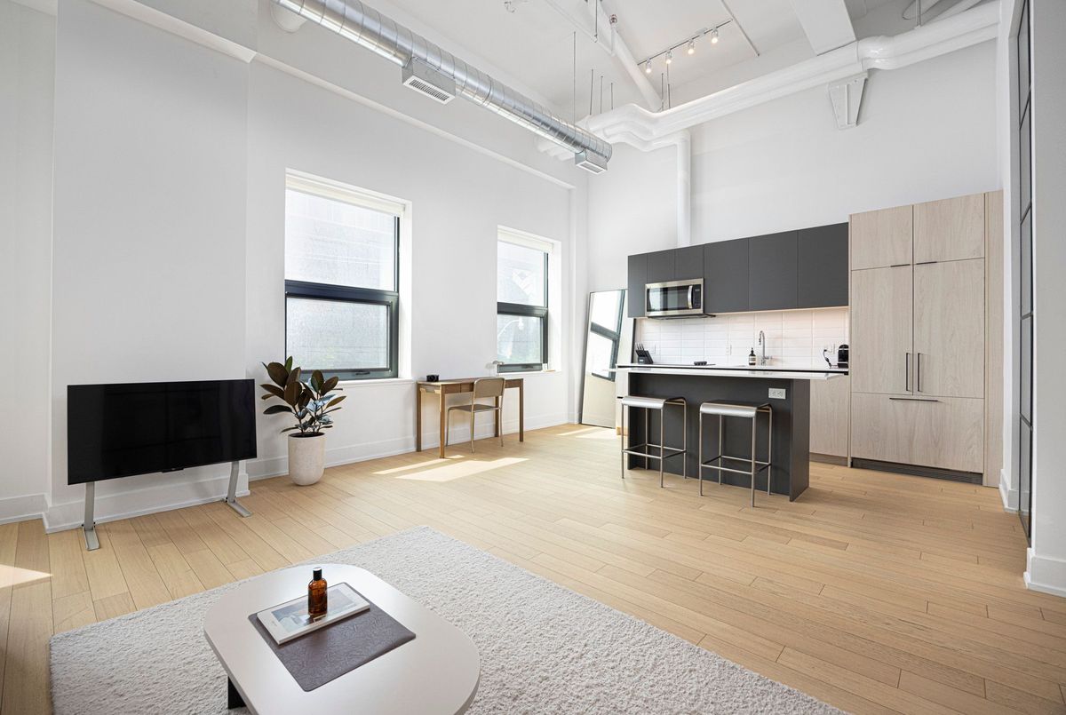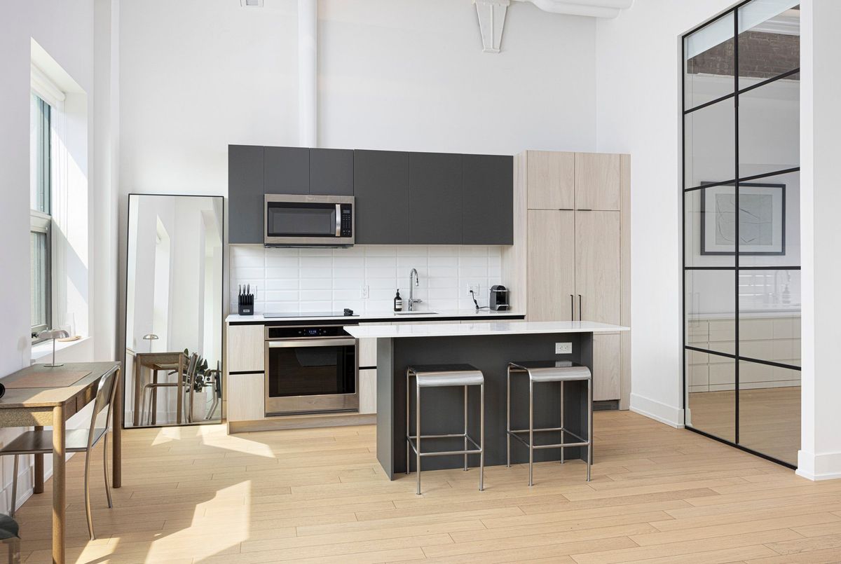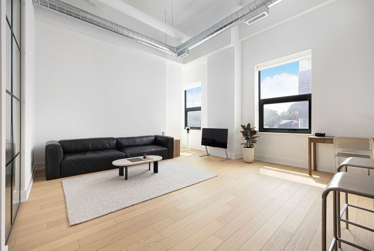 When they tell you to aim high, aim 15-foot ceiling high!! Welcome to unit 201 at the legendary Wonder Lofts. Located in the original historical portion of the former Wonder bread factory, this 1,248 sq ft features impressive soaring 15-foot ceilings adorned with industrial loft-style beams, spiral ductwork, and exposed brick. Across the unit you'll find contemporary, upgraded finishes, including modern soft-hued engineered hardwood plank floors and a contemporary designer kitchen. One look at both full bathrooms, including the primary bedroom ensuite, and you'll fall in love. The spacious open concept kitchen features full-sized appliances, a rare find in today's newer condos, and an upgraded centre island, sure to be the focal point of your next house party or family dinner. The spacious primary bedroom with large double walk-through closets leads to a 5-piece ensuite with a double vanity. The generous 2nd bedroom features a large closet and exposed brick beams. The separate den is the perfect space for your home office or gym and rounds off this wonderful loft! Owned parking and a large storage locker mean you'll have everything you need to really set down some roots. The Wonder Condos is perfectly located in the heart of Leslieville, just steps away from all the city's top-rated restaurants, beautiful parks and convenient transit options, with the Queen streetcar just steps away. Welcome home!
