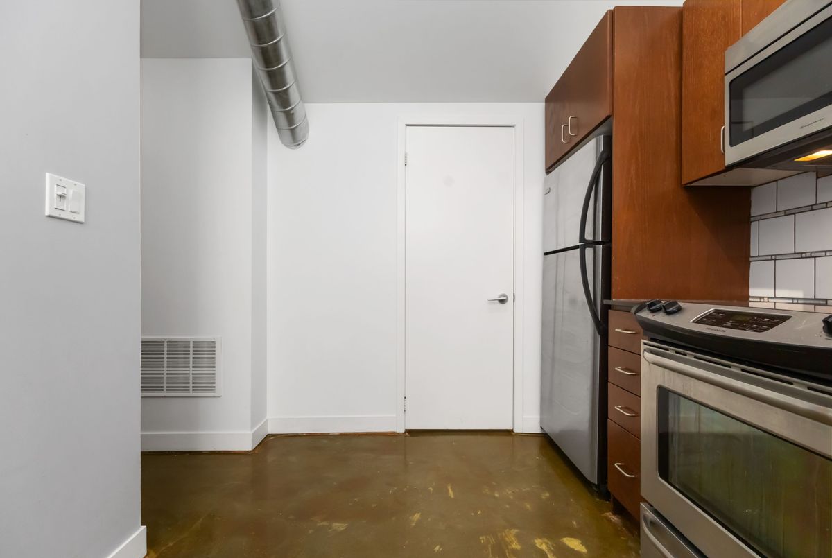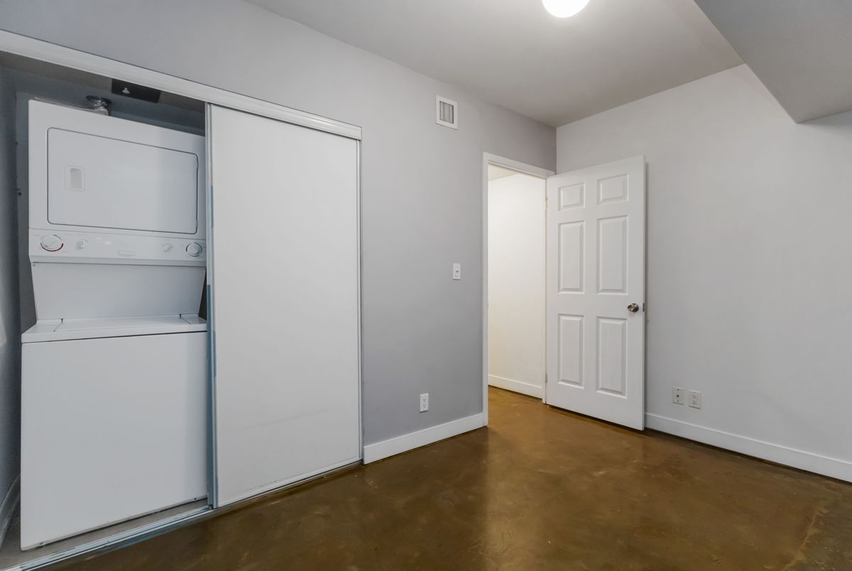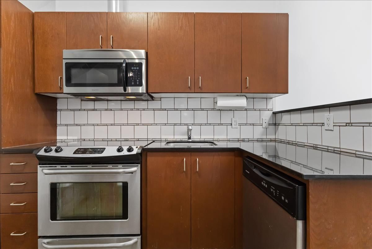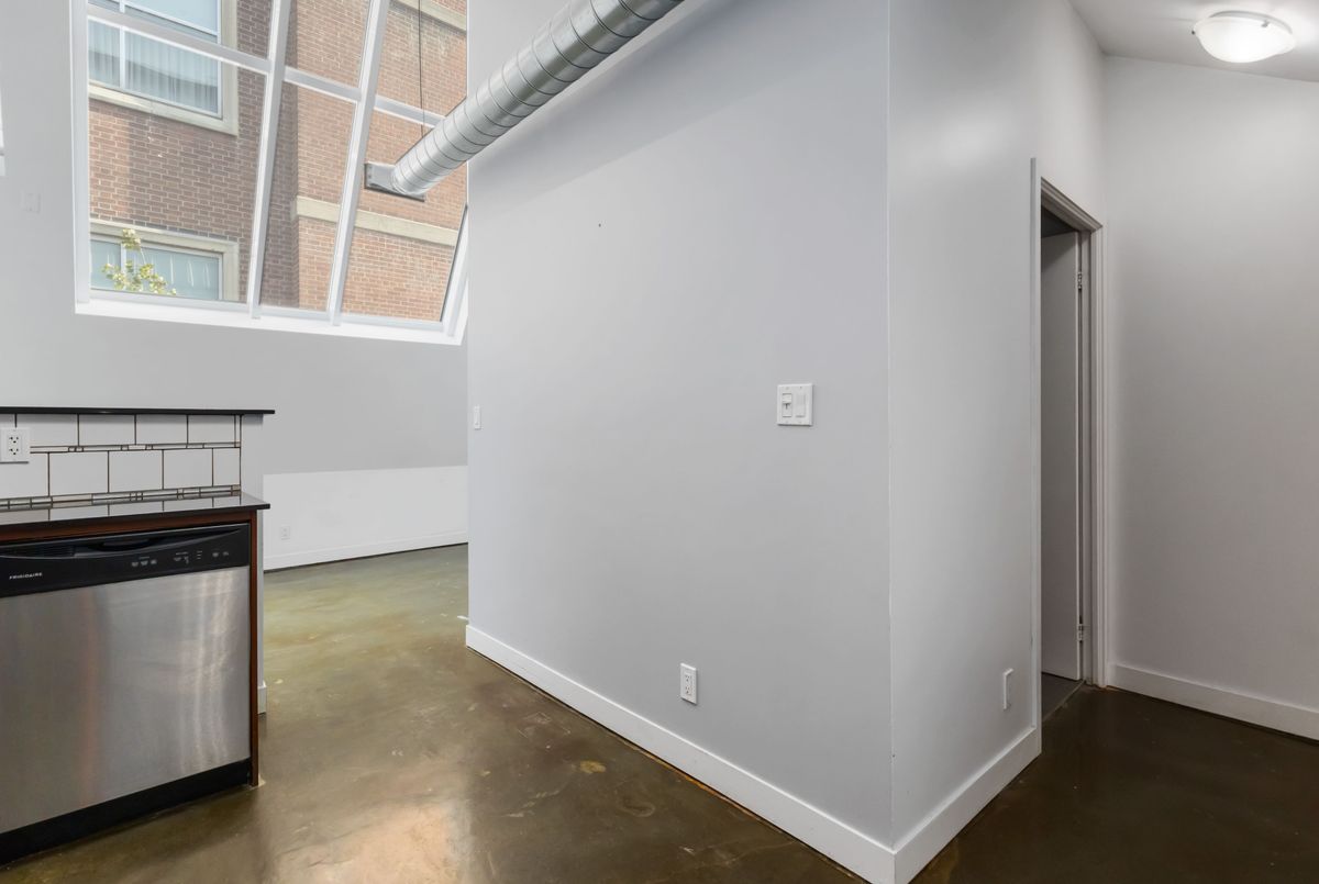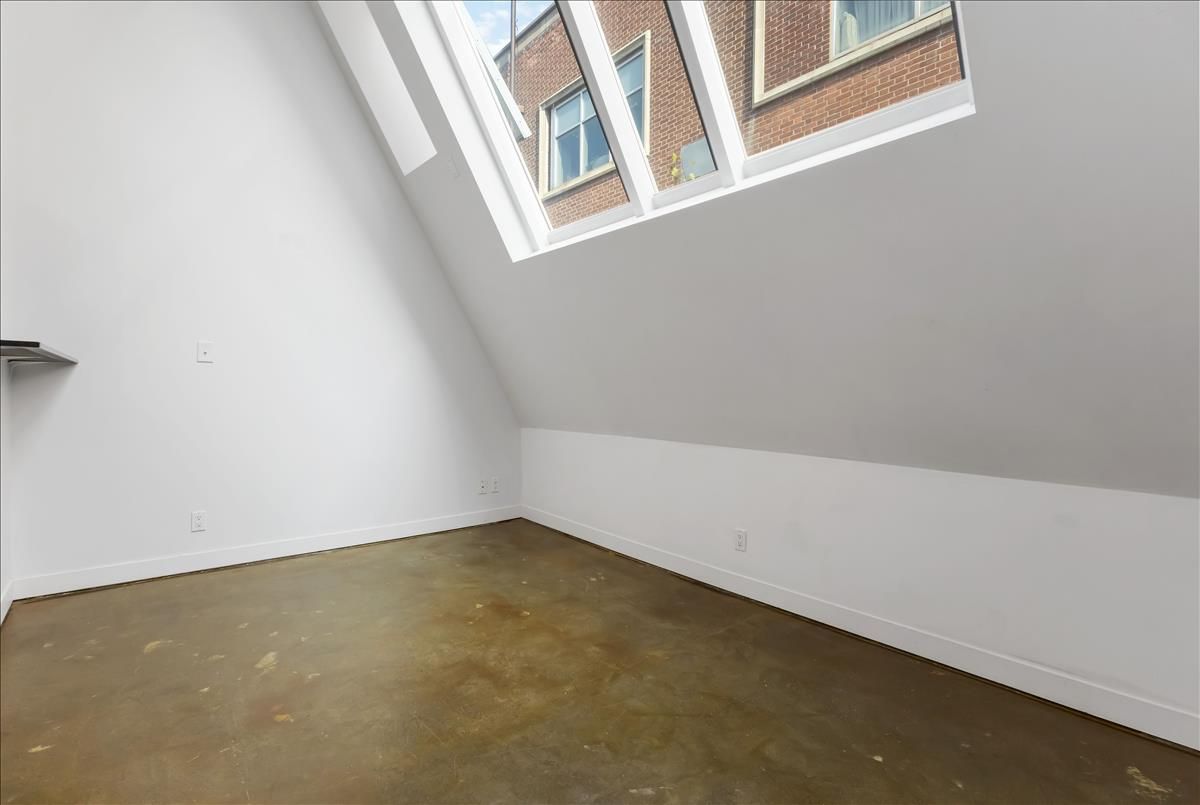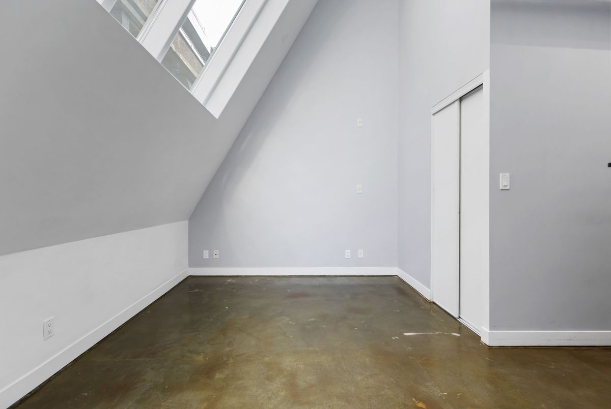 Discover the rare combination of character and functionality in Toronto's historic printing district! This converted 1 Bed + Den loft boasts 690 sq ft featuring soaring 22-foot vaulted ceilings and original concrete floors that showcase the building's historical past! The open-concept living area receives ample light through tall factory-style windows, while the separate den provides a versatile spot for a cozy home office or extra storage. The kitchen features stainless steel appliances great for entertaining! The loft retains its authentic charm through its exposed ductwork while leaving room for the next owner to place their own touches on the property. The generous bathroom includes a stand up shower, and the bedroom comes equipped with the laundry machines in the closet. Situated in a vibrant community just steps from Queen St, you will have a plethora of cafes, shops, and restaurants to choose from.