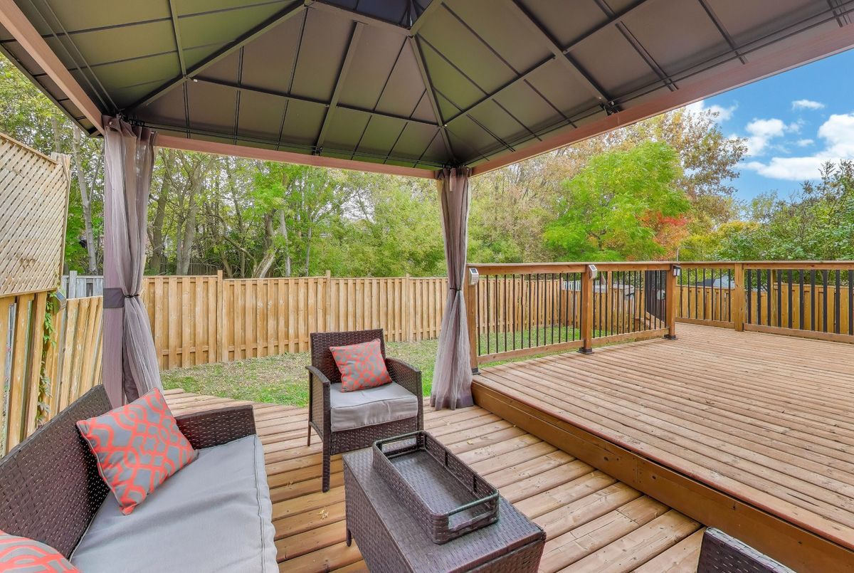 Beautifully Maintained All-Brick Home in a Prime Bowmanville Location! This 3+1 bedroom, 3-bathroom home with a 1.5 car insulated garage is ideally located on a quiet, low-traffic street with a park at the end of it, offering a court-like feel and added privacy. Backing onto a ravine, this home provides peaceful surroundings while being close to schools, shopping, and highway access. Features include hardwood flooring, California shutters, a spacious renovated kitchen with center island and marble counter tops and a walkout to a large backyard deck, plus a convenient main floor laundry room. Upstairs offers 3 generous bedrooms, 2 full baths including a newly renovated primary bedroom ensuite, and a large west-facing family room that could convert into a large 4th bedroom. The finished basement adds even more multi-purpose living space and an additional bedroom. Freshly painted throughout in 2025, you can move in and enjoy!