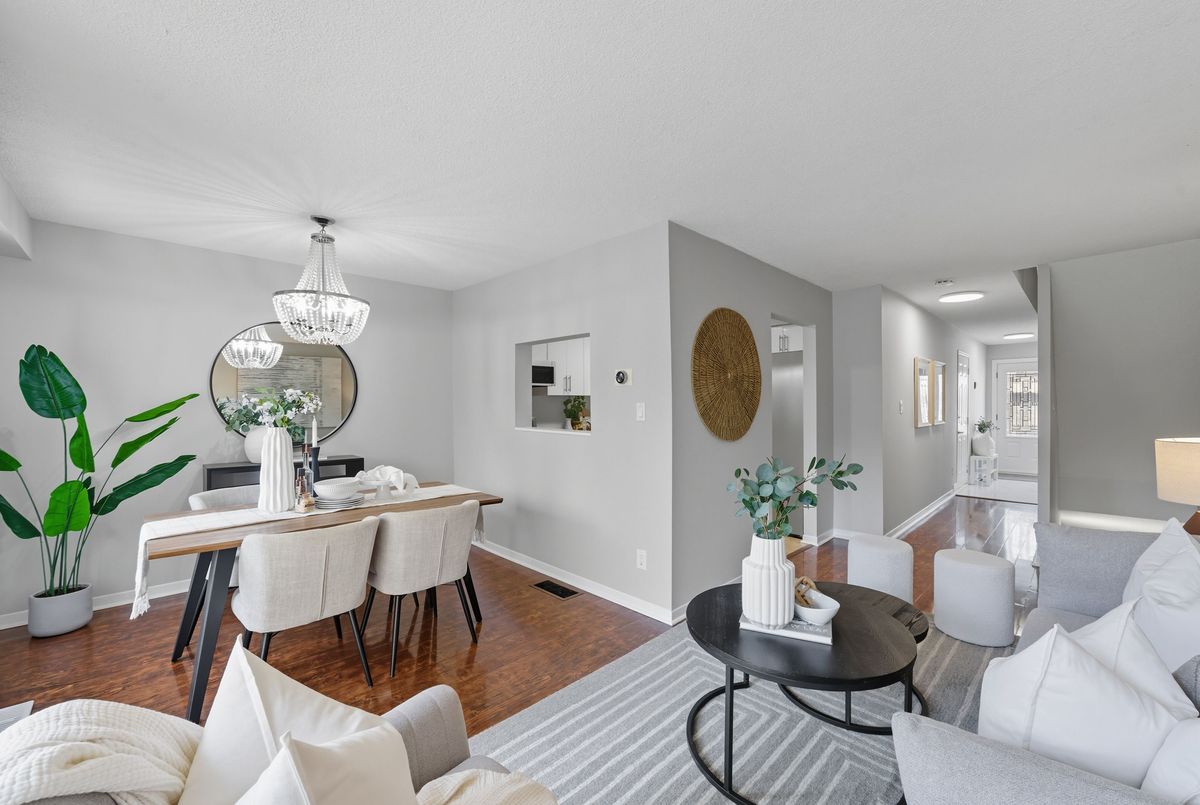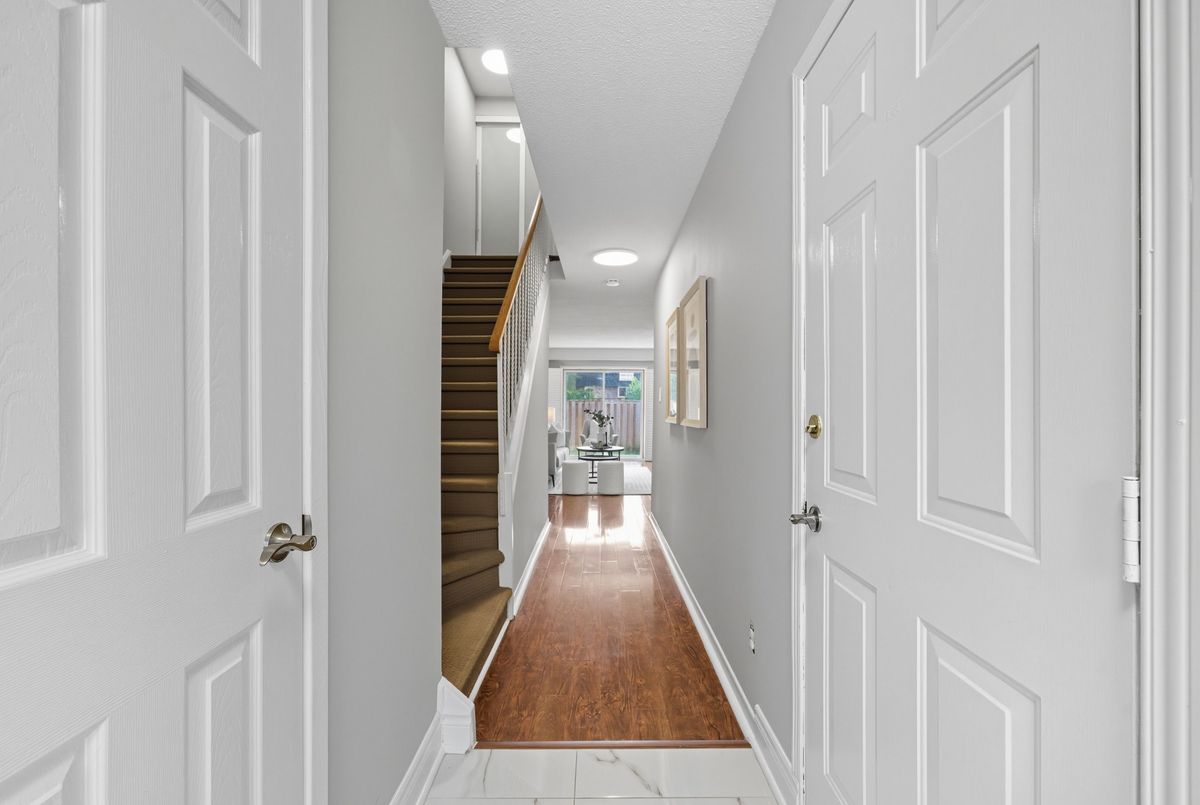 Welcome to this beautifully updated, light-filled townhome. Located in a quiet, well maintained complex , this move-in-ready home is perfect for families, first-time buyers, or investors seeking value and convenience. The open, inviting layout has been thoughtfully modernized with updates throughout. Major improvements include a new roof and repaved driveway (2023), a new front door and upgraded electrical panel (2024), and a full kitchen, foyer, powder room, and basement renovation (2025) with new flooring, trim, and fresh paint across the entire home. The main washroom was completely redone in 2023, while stylish new lighting fixtures were installed in 2022-2023. Situated close to shopping, top-rated schools, parks, transit, and major highways, this home offers both comfort and lifestyle. With its extensive upgrades , this property is ready to welcome its next owners!