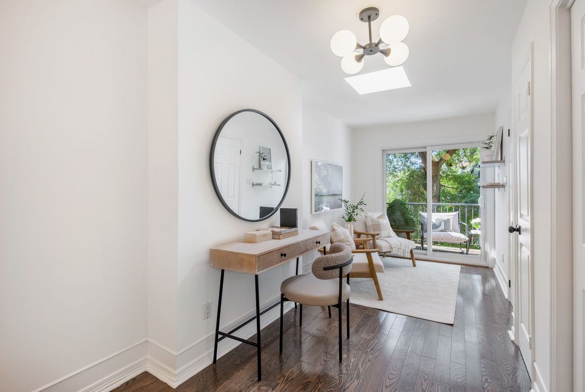 Bright Urban Townhome in a Hidden Enclave of The Pocket! Welcome to #2-66 Boultbee Avenue a stylish three-storey freehold townhome nestled within a secluded enclave in one of Toronto's most cherished neighbourhoods, The Pocket. Offering exceptional space, natural light, and a strong sense of community, this home blends easy modern living with neighbourhood warmth. The open-concept main floor features an elegant kitchen with stainless steel appliances, quartz counters, and a separate dining area that flows effortlessly into a welcoming living room. From here, step out to a beautiful low-maintenance backyard perfect for relaxing or entertaining without the weekend upkeep. Upstairs, two generous bedrooms provide flexibility for family, guests, or a home office. The third-floor primary retreat is a true highlight, complete with an ensuite bath, ample storage, a private deck and tranquil treetop views that make it the perfect escape. The fully finished lower level offers great ceiling height and versatile living space ideal for a media room, gym, or extended family use. With parking right at your door, this home checks every box for urban convenience and comfort. Set in a vibrant yet tucked-away location, residents of The Pocket enjoy a friendly, tight-knit community surrounded by parks, tree-lined streets, and walkable access to everything. Walk to Phin Park, local cafes, shops, and restaurants along Danforth and Gerrard, or reach Pape and Downland's subway stations in about 15 minutes for an easy downtown commute. An inviting home in a rare enclave that perfectly captures the spirit of The Pocket welcoming, walkable, and wonderfully connected.