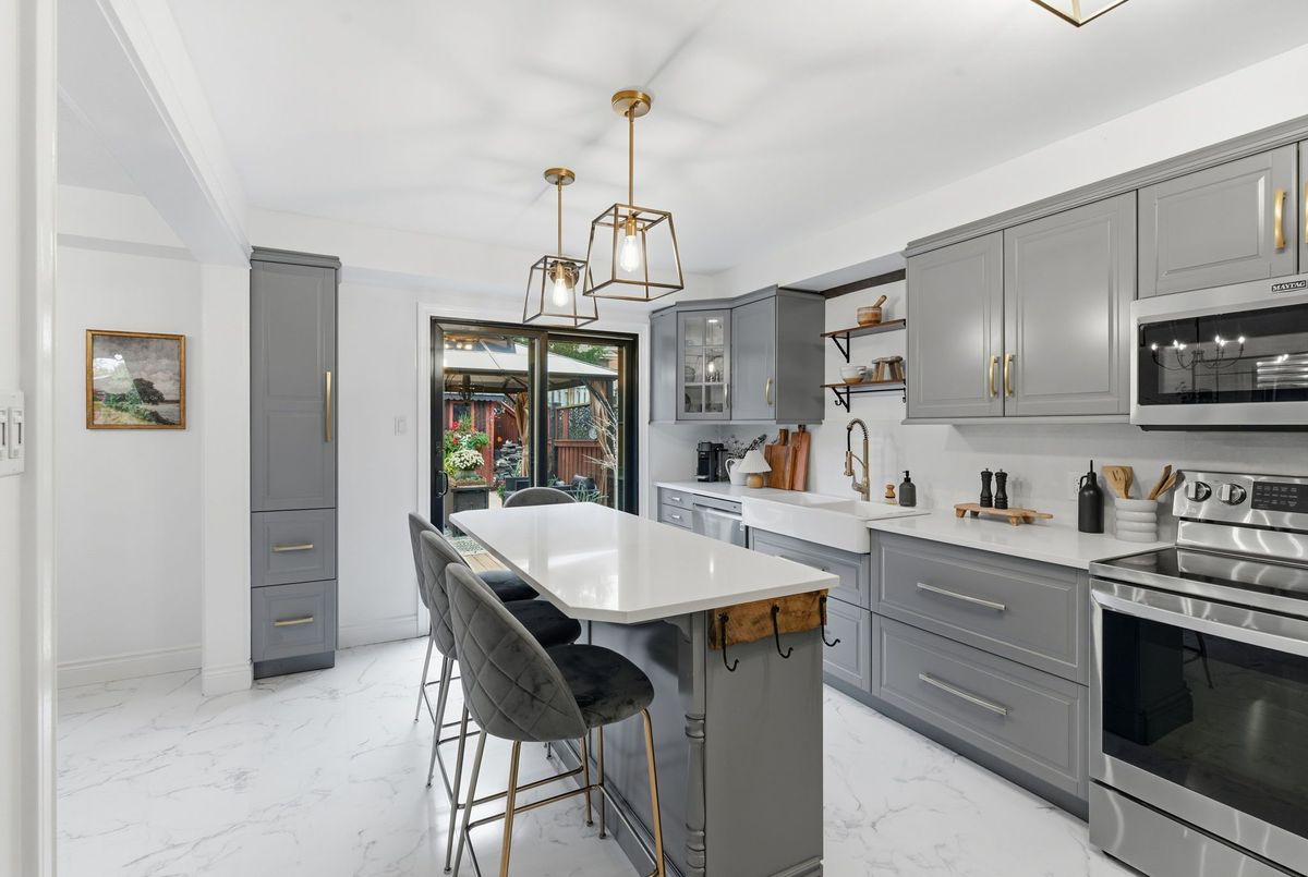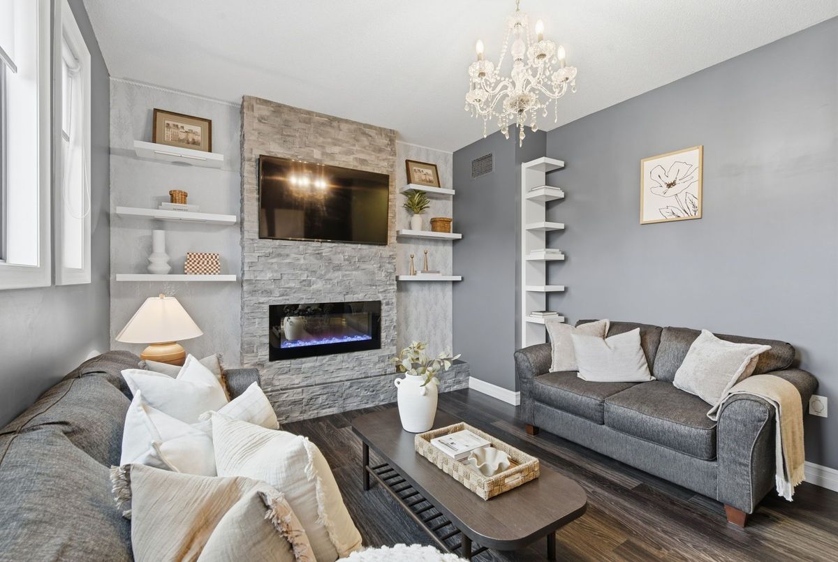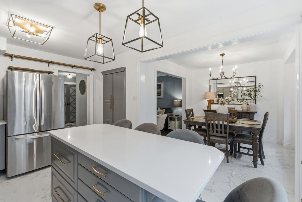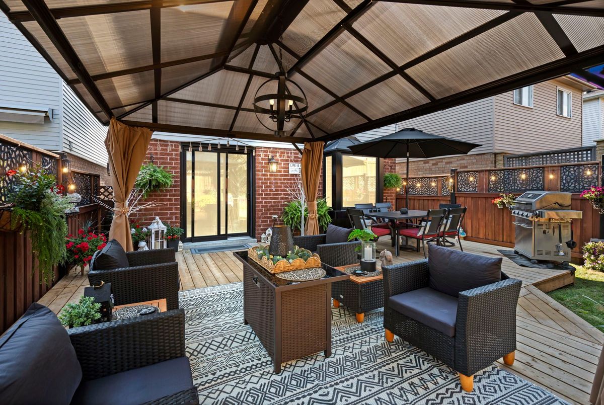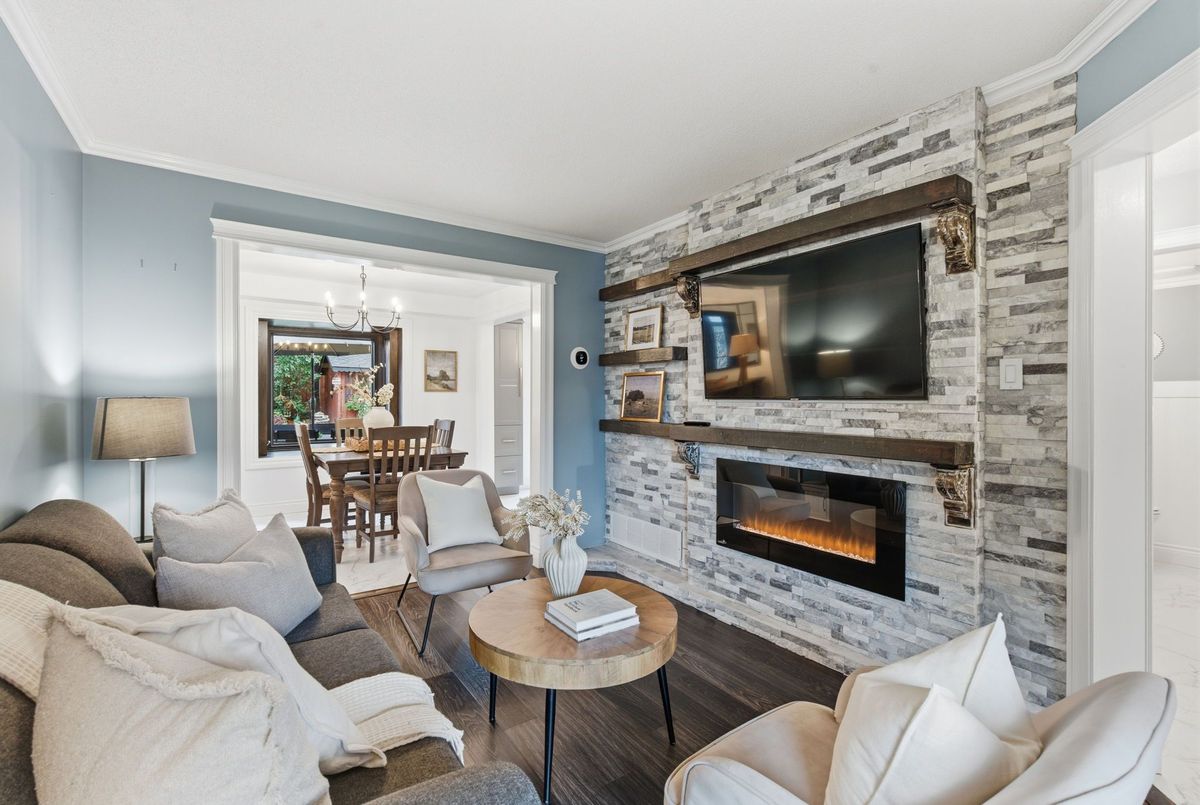 Welcome to this beautifully maintained 3+1 bedroom, 3-bathroom home in one of Bowmanville's most sought-after neighbourhoods. From its fantastic curb appeal to its thoughtfully designed interior, this home truly impresses inside and out. Step inside to find a bright living room filled with natural light, flowing seamlessly into a spacious dining area - perfect for family meals and entertaining guests. The dream kitchen features updated cabinetry, stylish flooring, and gleaming quartz countertops and a stunning island, offering both beauty and functionality. A sliding glass door leads to your backyard oasis, complete with a large deck and inviting gazebo - a perfect space for outdoor dining or quiet relaxation. The in-between level family room is a true showstopper, boasting a custom stone accent wall and cozy fireplace, creating the ideal spot for gatherings or movie nights. Upstairs, you'll find three tastefully upgraded bedrooms, including a stunning primary suite with a walk-in closet and 3-piece ensuite. The finished basement adds even more versatility, featuring a comfortable rec room, additional bedroom, and ample storage space - perfect for guests, a home office, or an in-law setup. This home combines style, comfort, and practicality, all in a prime Bowmanville location close to schools, parks, shopping, transit and the future GO Train Station. Extras: Storage under stairs in basement, Removable decking for easy access, Windows (2018), Roof (2019), Doors (2024).