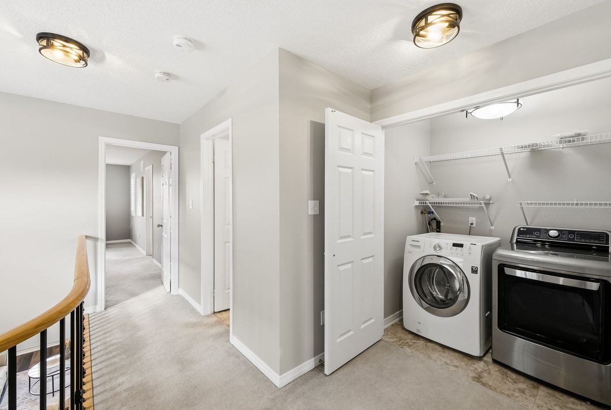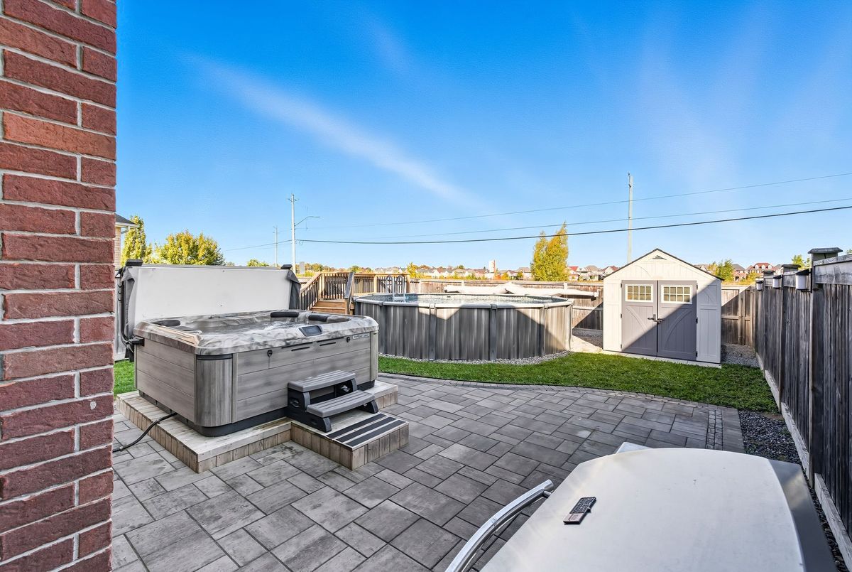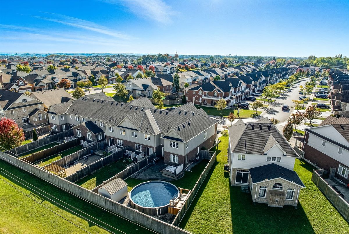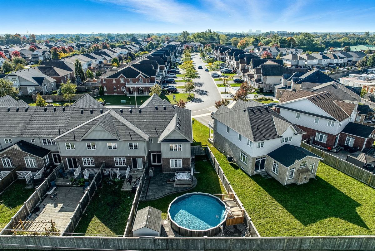 Step inside this bright end-unit townhome, which has only been owned by one owner and you're greeted by a sun-filled foyer leading into an open-concept main floor designed for everyday living and effortless entertaining. The kitchen features an island with seating, stainless steel appliances, including a new 2023 dishwasher and plenty of cabinetry, while the adjoining dining and living areas are framed by elegant California shutters throughout for light control and privacy. Bonus end-unit windows flood the space with natural light, and a convenient main-floor powder room keeps guests comfortable. It's a warm, functional layout that flows beautifully from the front door to the backyard. Upstairs, relaxation takes centre stage with a spacious primary retreat featuring a bright sitting area, a generous walk-in closet, and a private 3-piece en suite. Two additional bedrooms, both airy and inviting, that share a well-appointed second bathroom with 4 pieces, perfect for kids or guests. Everyday life is made easier with the convenient second-floor laundry tucked off the hall. It's a thoughtful layout that blends comfort, privacy, and practicality for the whole family. Rounding out the home is a bright, finished basement with ample storage and space, ideal for a media lounge, playroom, or home office. Step outside to a beautiful backyard oasis featuring a landscaped patio, a raised deck, a refreshing pool, a soothing hot tub and smart drainage stone for low-maintenance living. Curb appeal shines with a landscaped front walkway, while the backyard patio is perfect for summer dinners and weekend get-togethers. The location is just as appealing with parks and schools close by, welcoming streets, and friendly neighbours that make this end-unit townhome feel like home from day one.