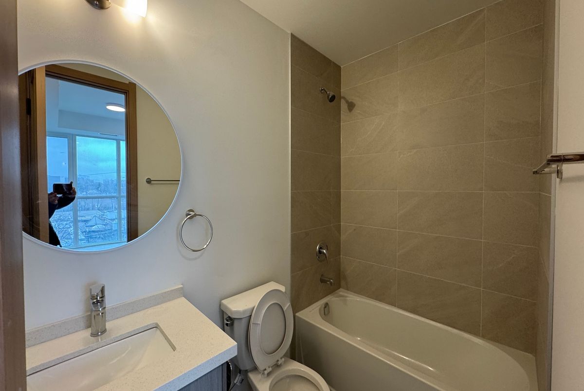 Newly built Sheppard Garden Condos. This unit 668 sqft 1-bedroom + den, 2-bathroom. Den with sliding door can be used as a 2nd bedroom. Offering spacious layout, modern finishes, and natural light. The kitchen features modern appliances, and two elegant bathrooms ensure comfort and privacy. Parking and a storage locker included! Building amenities include a fitness center, library, party room, game room, yoga room, meeting space, private dining room, and business center. Conveniently located close to shopping, dining, and other amenities, with TTC at your doorstep and easy access to Highway 401, DVP/404.