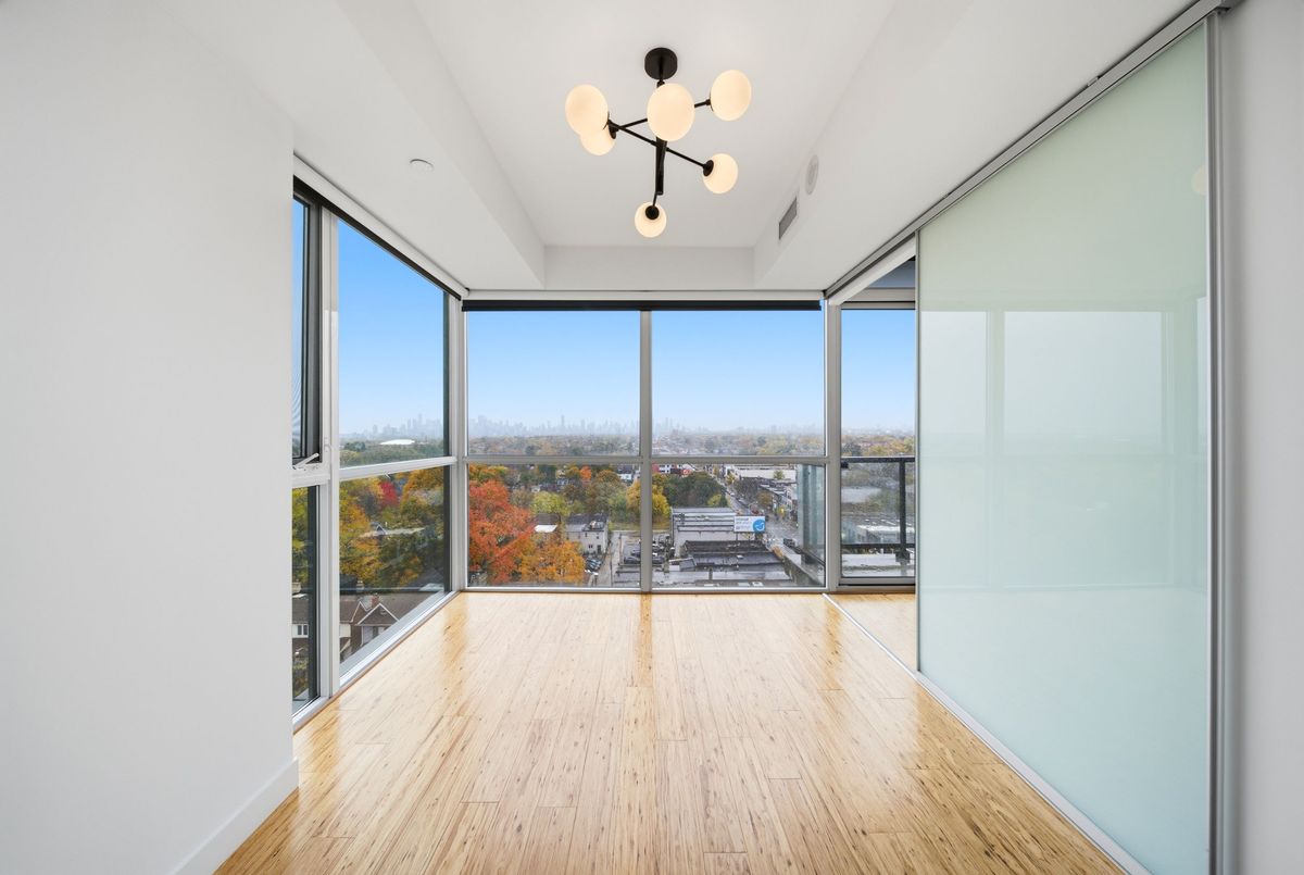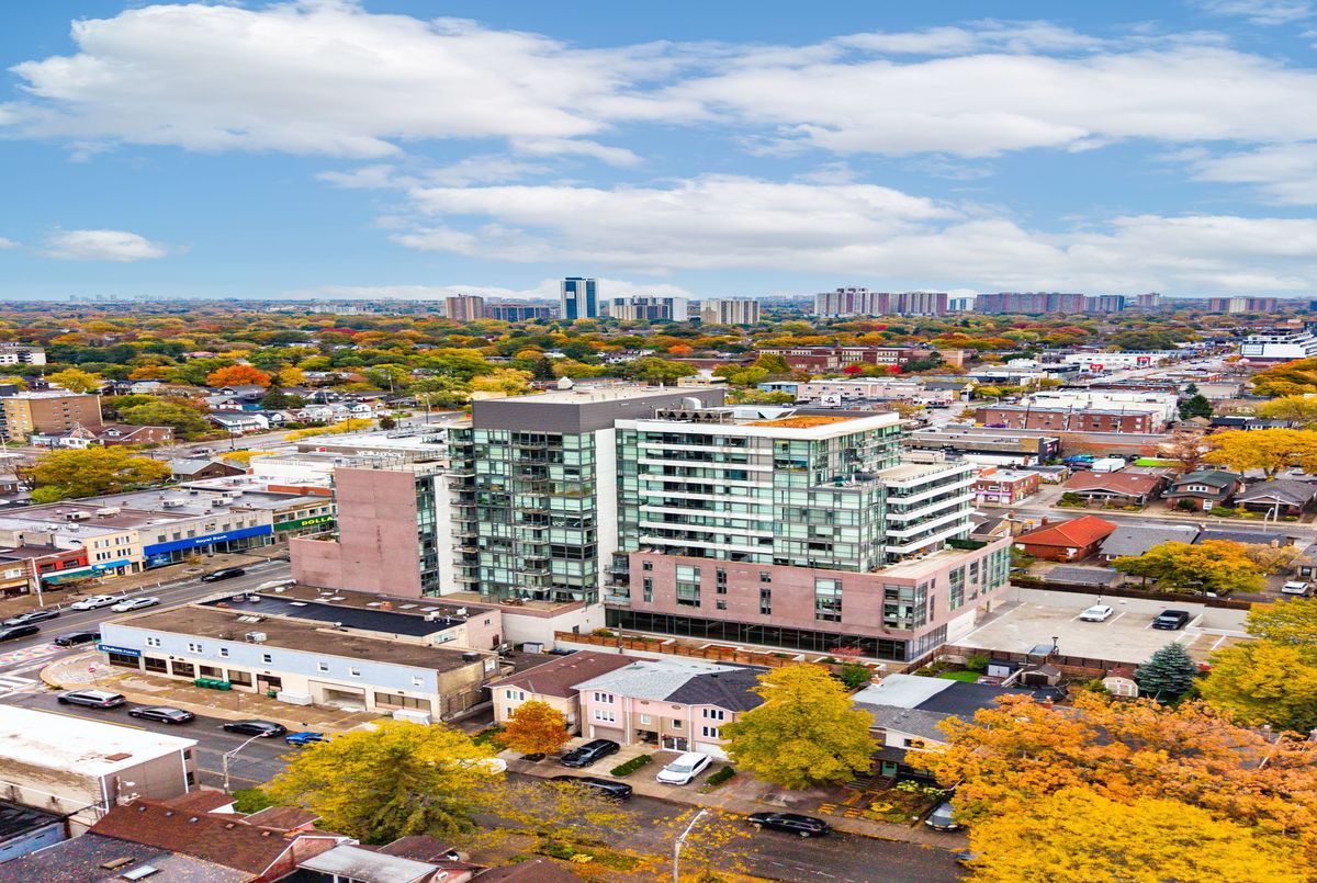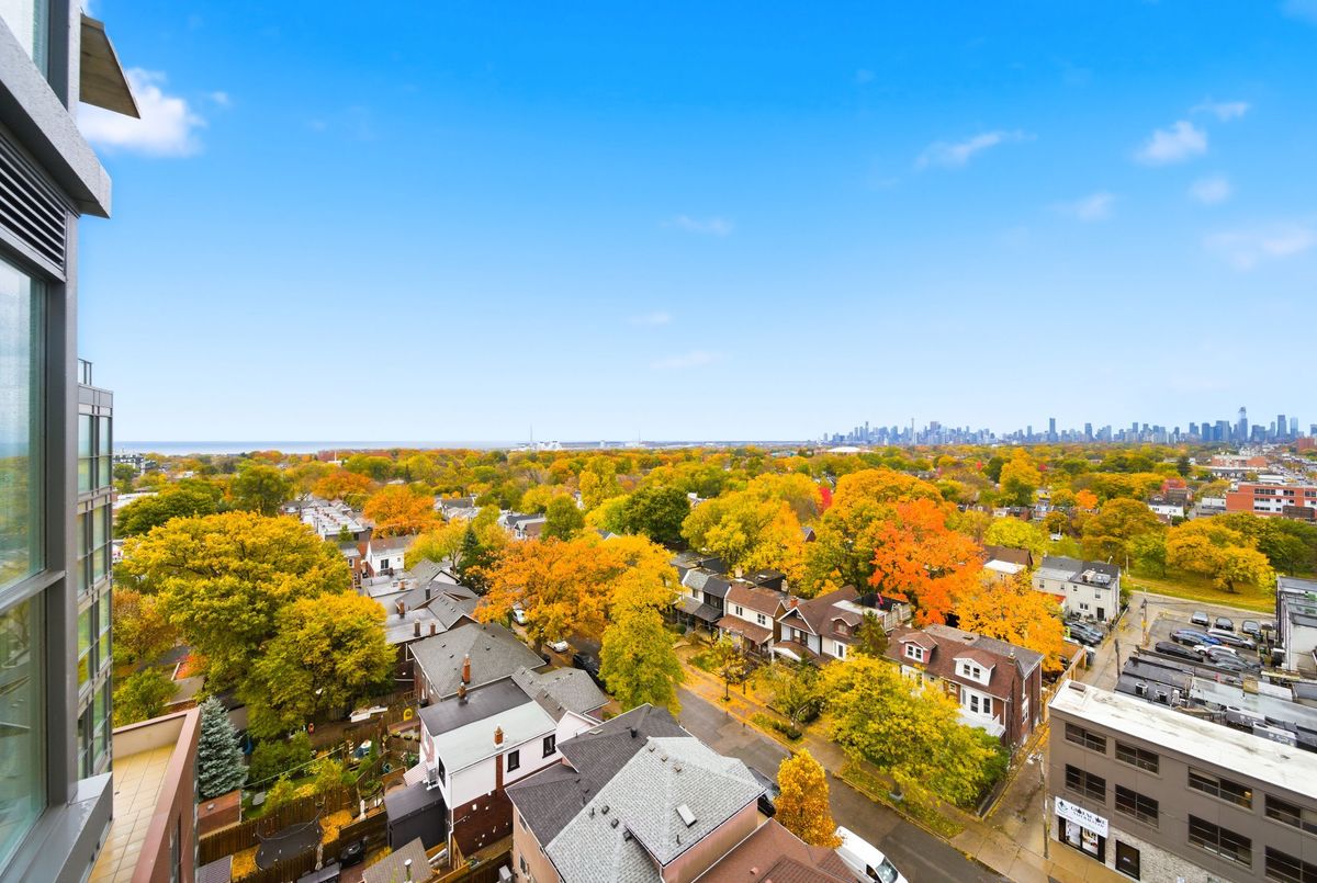 A curated, custom-designed residence that is truly one of a kind. This elevated two-bedroom, two-bathroom corner suite showcases captivating unobstructed views of the lake, the Toronto skyline, and becomes a stunning panorama that shimmers with cascading lights after dark. Located in a boutique, condominium on the highest floor along the Danforth, it offers upscale living with ambiance in one of the city's trendiest neighbourhoods. Thousands have been invested in premium upgrades and refined craftsmanship. Features include an abundance of natural light with floor to ceiling windows, custom closet organizing systems, a built-in entertainment unit with shelving, and an integrated fireplace, 9-foot ceilings, a striking drop ceiling with recessed lighting, a kitchen island and large balcony with sweeping views you'll never tire of. The designer kitchen is finished with brand-new stainless-steel appliances and quartz countertops. The primary suite includes a luxurious four-piece ensuite. Both bedrooms showcase double mirrored closets, tailored window treatments, and sophisticated custom lighting. A rare offering that blends exceptional finishes, breathtaking 360 views, and an upscale lifestyle. Steps to Woodbine Subway Station & TTC access. Enjoy being surrounded by quaint cafes, shops, restaurants and Greek Town. Walking distance to various grocery stores, neighbourhood amenities, Lynn Park, The Beaches, and so much more.