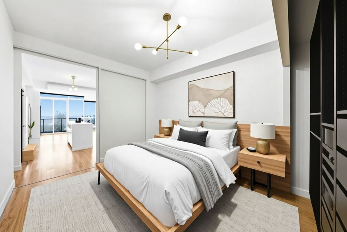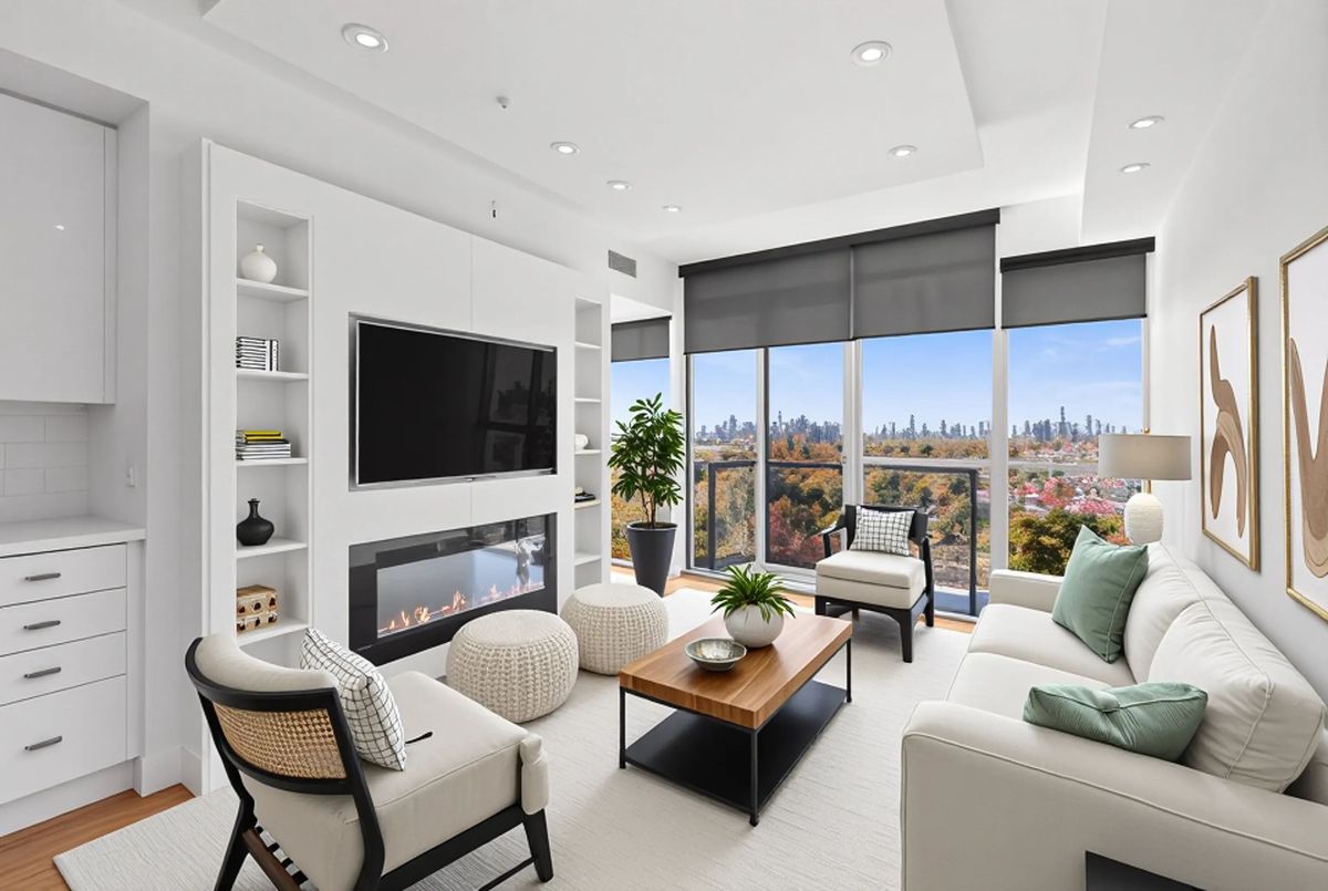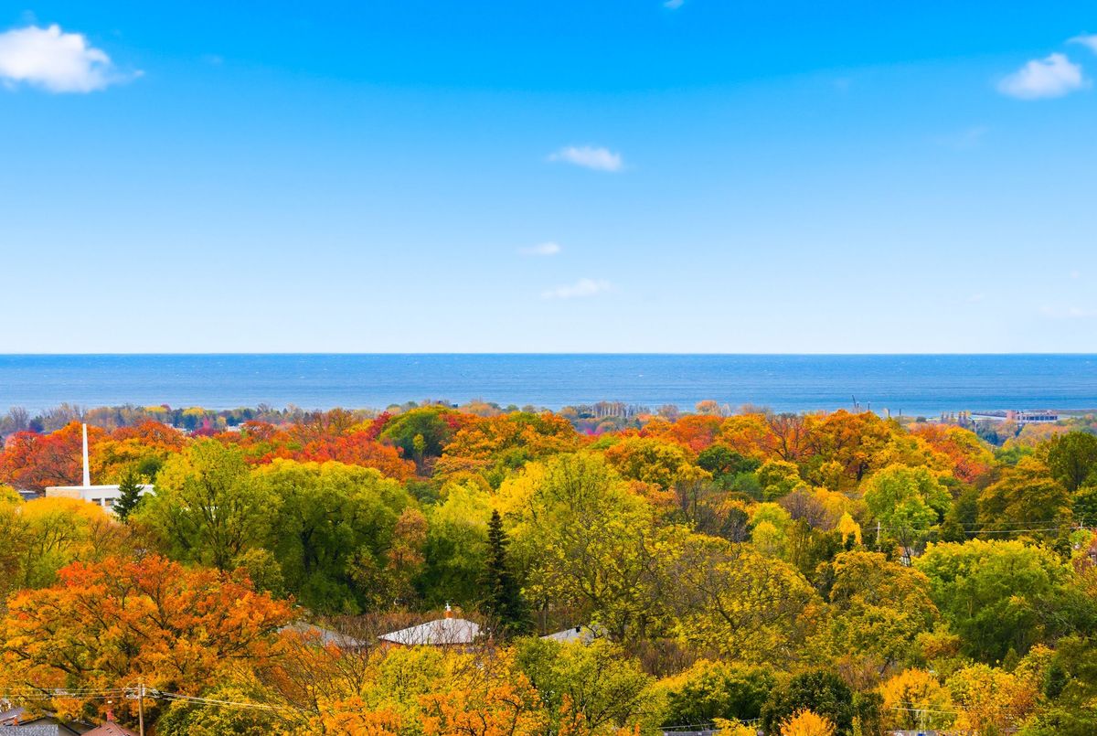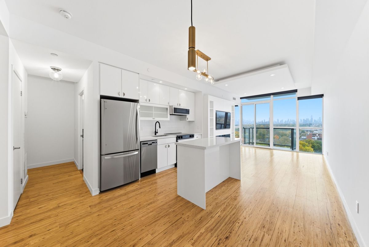 A curated, custom-designed residence that is truly one of a kind. This elevated two-bedroom, two-bathroom corner suite showcases captivating unobstructed views of the lake, the Toronto skyline, and becomes a stunning panorama that shimmers with cascading lights after dark. Located in a boutique, condominium on the highest floor along the Danforth, it offers upscale living with ambiance in one of the city's trendiest neighbourhoods. Thousands have been invested in premium upgrades and refined craftsmanship. Features include an abundance of natural light with floor to ceiling windows, custom closet organizing systems, a built-in entertainment unit with shelving, and an integrated fireplace, 9-foot ceilings, a striking drop ceiling with recessed lighting, a kitchen island and large balcony with sweeping views you'll never tire of. The designer kitchen is finished with brand-new stainless-steel appliances and quartz countertops. The primary suite includes a luxurious four-piece ensuite. Both bedrooms showcase double mirrored closets, tailored window treatments, and sophisticated custom lighting. A rare offering that blends exceptional finishes, breathtaking 360 views, and an upscale lifestyle. Steps to Woodbine Subway Station & TTC access. Enjoy being surrounded by quaint cafes, shops, restaurants and Greek Town. Walking distance to various grocery stores, neighbourhood amenities, Lynn Park, The Beaches, and so much more.