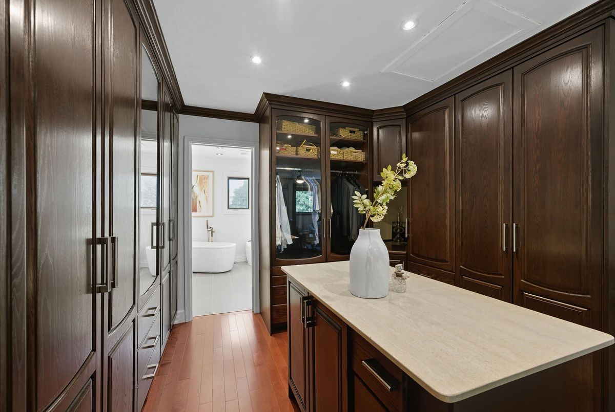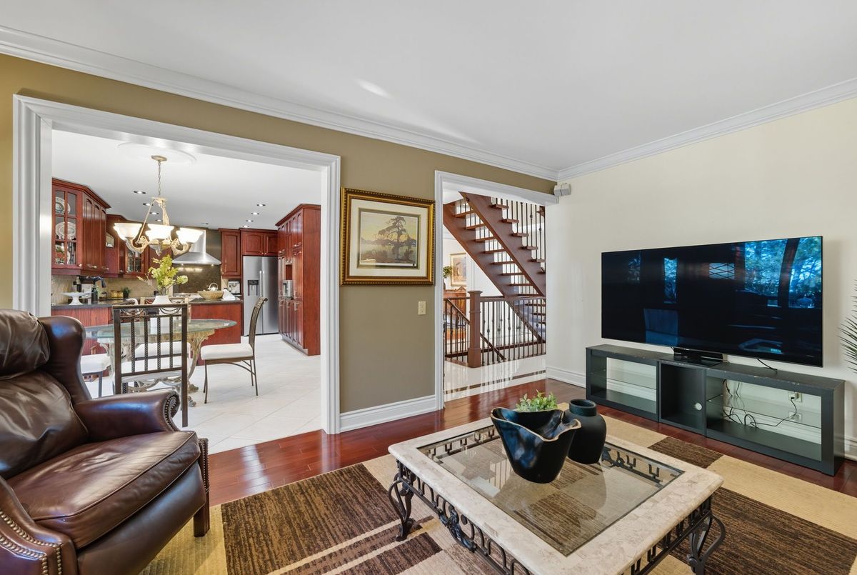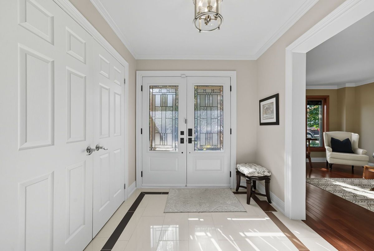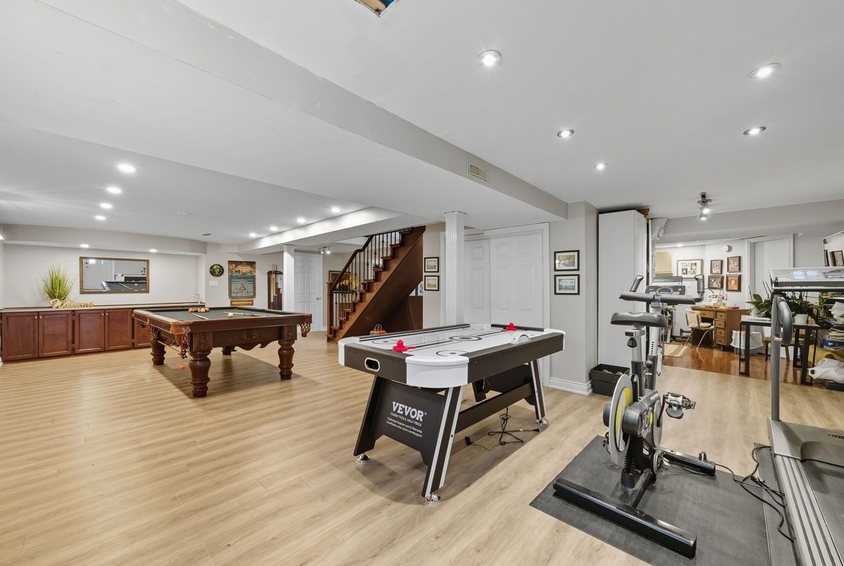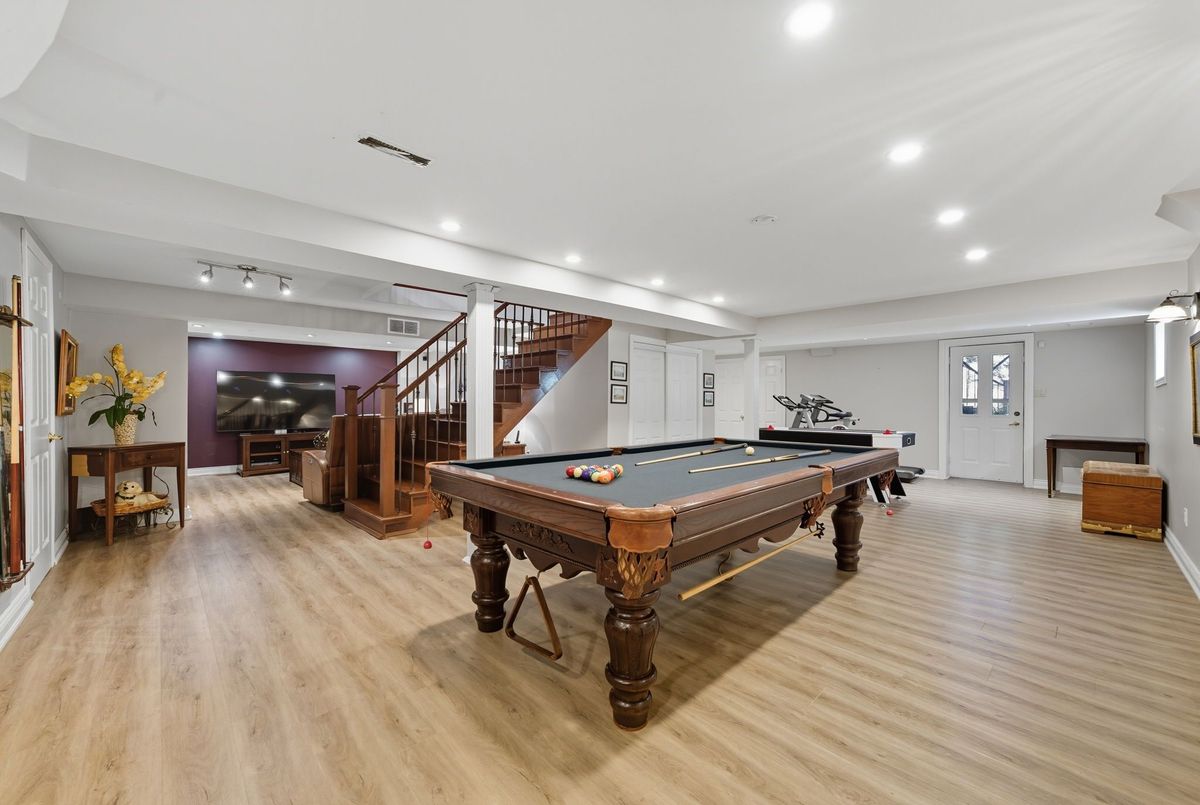 Welcome to this stunning 4 bedroom, 4 bath, all-brick family home exuding timeless elegance and modern comfort in a sought-after Ajax neighbourhood. Set on a premium lot with no neighbours behind, this property offers a private backyard oasis featuring an inground saltwater pool, perennial gardens, interlocking patio, vegetable beds, sprinkler system, gazebo, garden shed, and a two-tier composite deck with glass rails, retractable awning, and built-in surround sound overlooking the treed backdrop. Inside, the grand foyer leads to a traditional yet refined layout highlighted by a hardwood staircase with wrought iron spindles, crown moulding, smooth ceilings, pot lights, and gleaming hardwood floors. Entertain in the elegant living and dining rooms or relax in the cozy family room.The gourmet kitchen features granite counters, centre island, backsplash, stainless steel appliances including a gas stove, and a large pantry. The breakfast area offers walk-out to deck and pool, while the main floor laundry offers access to a fully insulated garage with tiled floors, gas furnace, car lift, and door to side yard. Upstairs, four generous bedrooms each have custom closet organizers. The primary retreat showcases French doors, a gas fireplace, an open-concept walk-in closet with quartz island, and a spa-like 5pc ensuite with freestanding tub, double quartz vanity, and glass rain shower. The finished basement adds a rec room, games area with wet bar, 2pc bath, and walk-out to the patio and pool. Close to top schools, parks, shopping, transit, and highways - this home defines luxury living and pride of ownership!